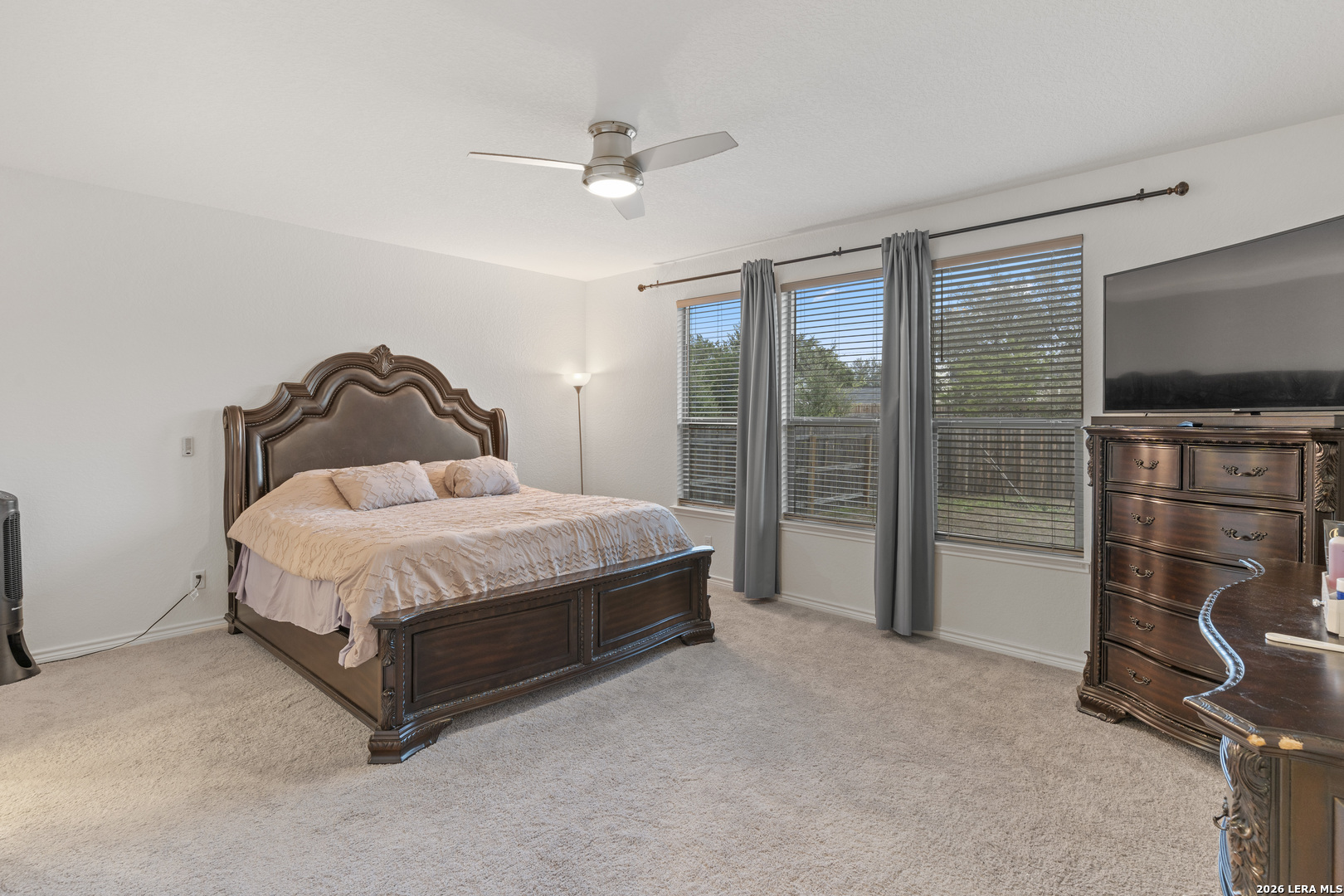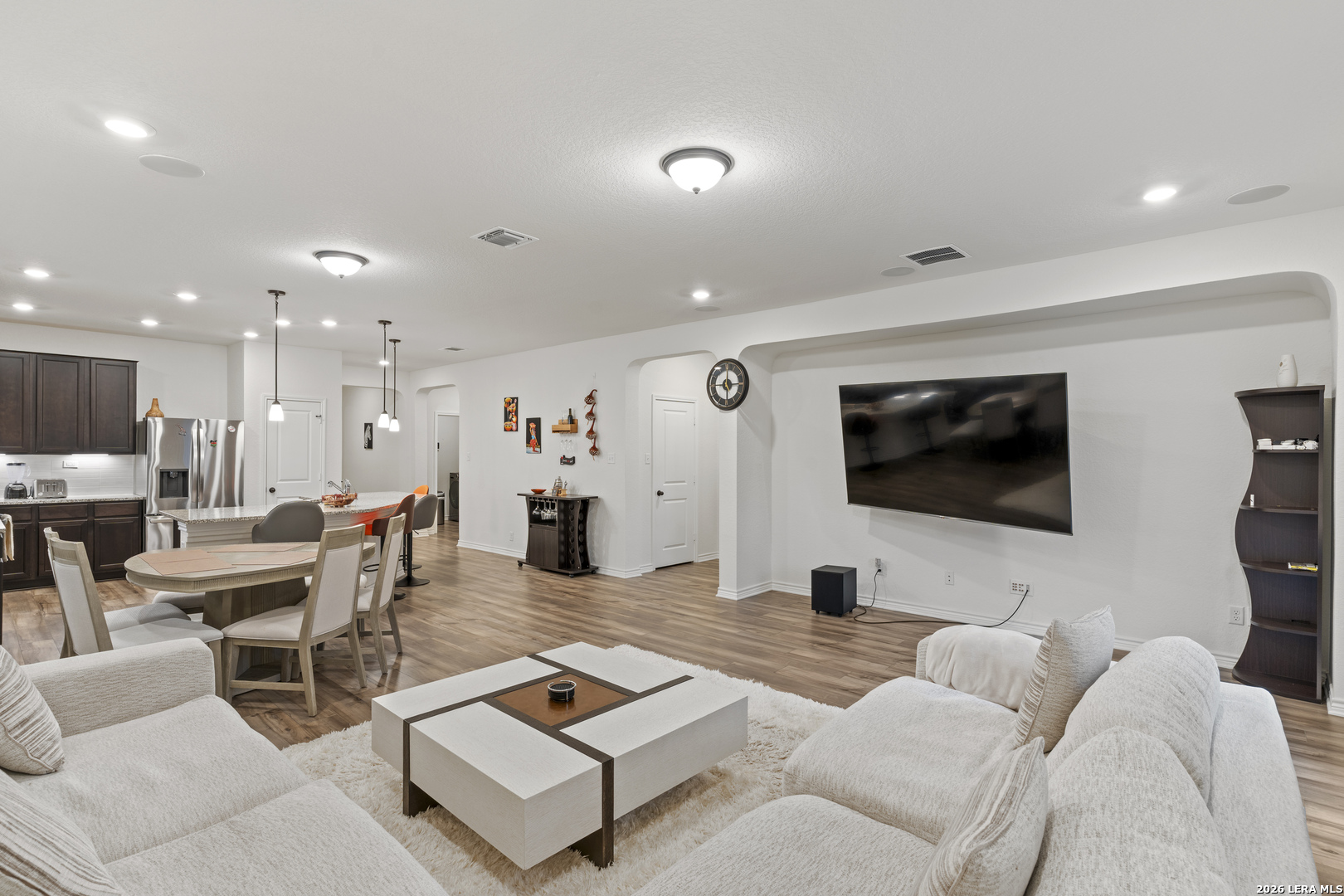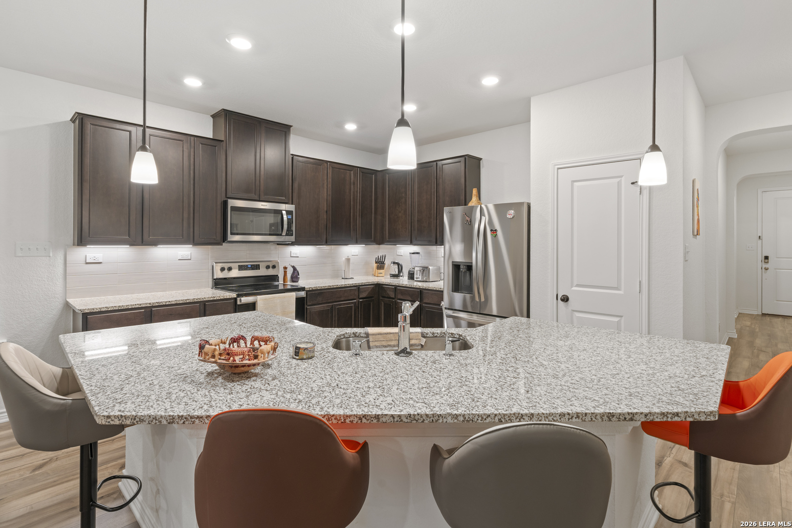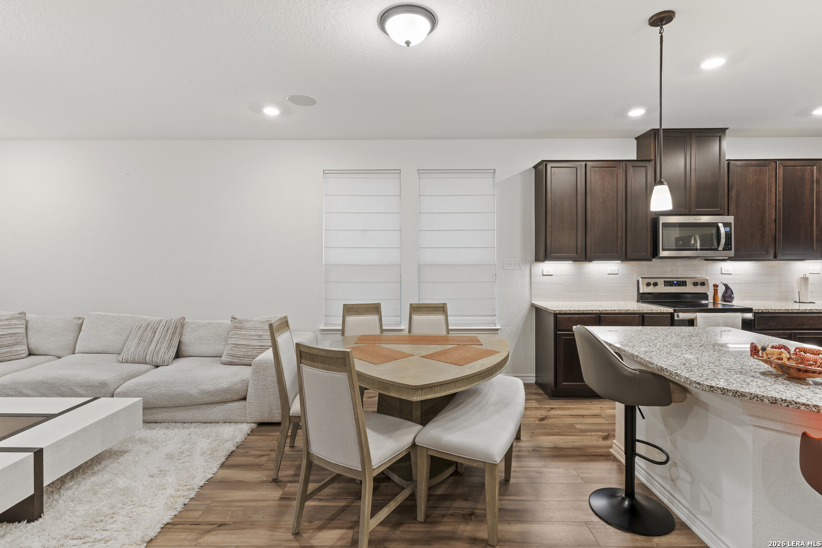 HALF OFF FOR FIRST MONTHS RENT! Beautiful 4 bedroom, 3 bath with 2,100 Square feet, Home backing to a peaceful greenbelt. A bright foyer opens to a spacious living room with wood flooring and large windows. The kitchen includes quartz counters, stainless steel appliances, island seating, and a refrigerator. The flex room was thoughtfully converted into a full bedroom with an added closet, and two bathrooms were upgraded to full baths, creating a comfortable and functional layout. The primary suite features enhanced insulation for noise reduction, a built in surround sound system, high ceilings, a walk in closet, and a stand up shower and tub. Enjoy the patio with greenbelt views. Community pool, playground, pavilion, and walking trails with quick access to Loop 1604 and Highway 281. Don't miss this opportunity. Schedule your showing today.