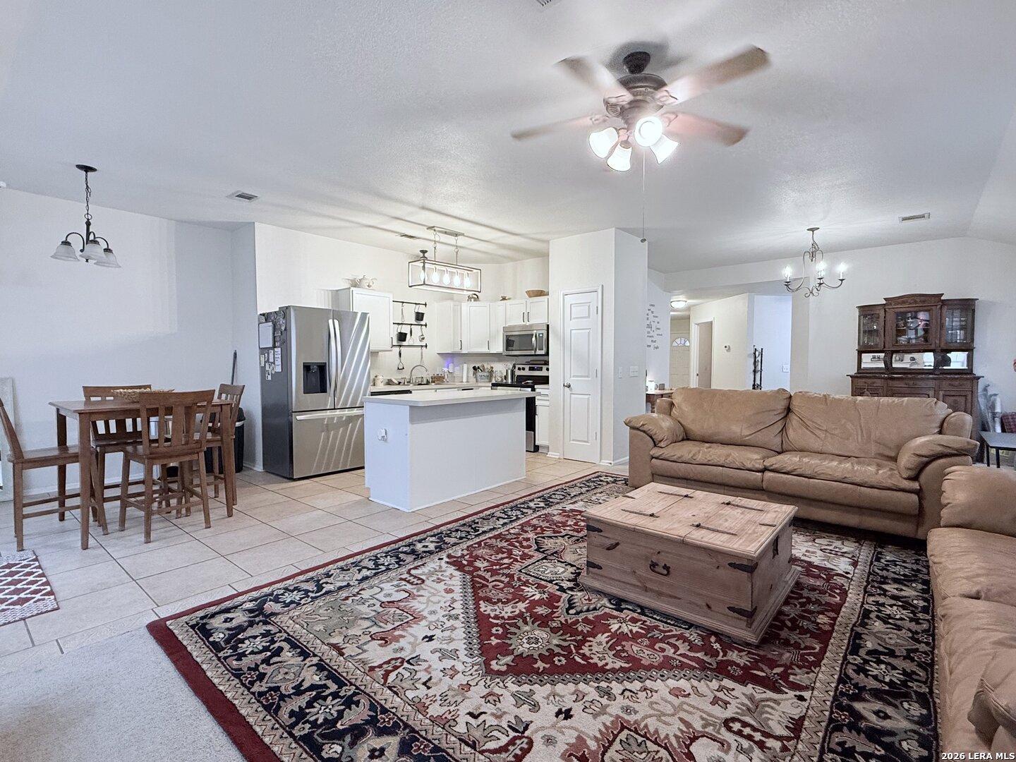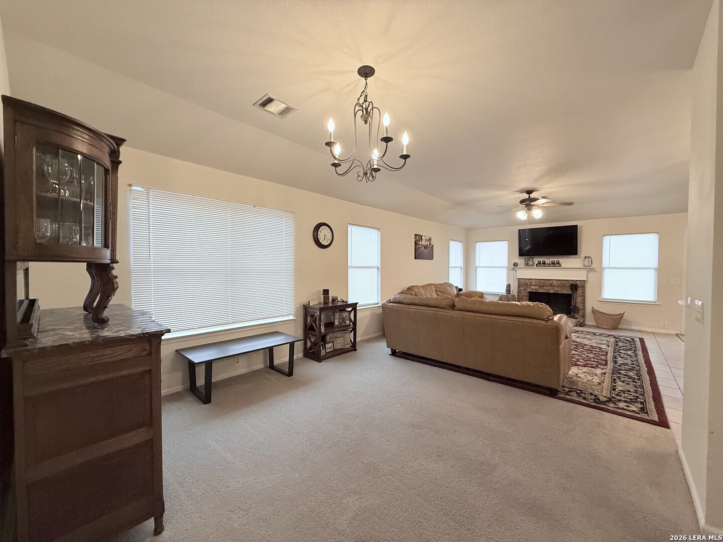 WELCOME HOME. Comfort, space, and functionality come together in this well-maintained home located in an established San Antonio community. Featuring a spacious and inviting layout, this residence offers the perfect balance of everyday living and effortless entertaining. Step inside to a welcoming entryway with tile flooring that flows into the main living areas, creating a clean and durable foundation for high-traffic spaces. The open-concept living room is filled with natural light from multiple windows and centers around a cozy fireplace, making it an ideal space to relax or gather with guests. The kitchen seamlessly connects to the living and dining areas, offering ample counter space, cabinetry, and a functional layout perfect for both daily use and hosting. The adjacent dining area provides a comfortable setting for family meals and entertaining. The home features generously sized bedrooms with soft natural light and flexible space for a variety of needs, whether for family, guests, or a home office. The primary suite offers a peaceful retreat with an en-suite bathroom, while additional bedrooms provide comfort and versatility. Throughout the home, you'll find a blend of tile and carpet flooring, neutral tones, and well-kept finishes that create a move-in ready feel with room to make it your own. The spacious living areas extend seamlessly to the outdoors, where you'll find a private backyard perfect for relaxing, entertaining, or enjoying quiet evenings at home. Conveniently located near major highways, shopping, dining, and everyday amenities, this home offers both comfort and accessibility in a well-established neighborhood. 5715 Grandwood Dr is ready to welcome you home.