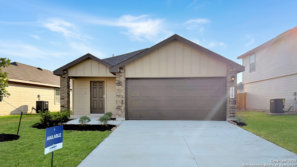 The Caprock is a charming one-story home featured at Stonehill in San Antonio, TX. Featuring 2 classic front exteriors, this 3 bedroom, 2 bathroom home also offers 1435 square feet of living space and a 2-car garage. A front porch (per plan) welcomes you into the home and opens to the gourmet kitchen which includes quartz counter tops, quality cabinets, stainless steel appliances and an open concept floorplan with the kitchen flowing seamlessly into the dining room and living room. The main bedroom has an attractive ensuite bathroom that features a quartz vanity countertop and quality cabinetry. Enjoy additional storage with a spacious walk-in closet located off of the primary bathroom. Your secondary bedrooms all feature quality carpet flooring and a closet, and can be used as bedrooms, offices, work out spaces or other bonus rooms. The possibilities are endless with The Caprock floor plan. Additional features include sheet vinyl flooring in entry, living room, and all wet areas, quartz counter tops in all bathrooms and HOME IS CONNECTED base package. Using one central hub that talks to all the devices in your home, you can control the lights, thermostat and locks, all from your cellular device.
