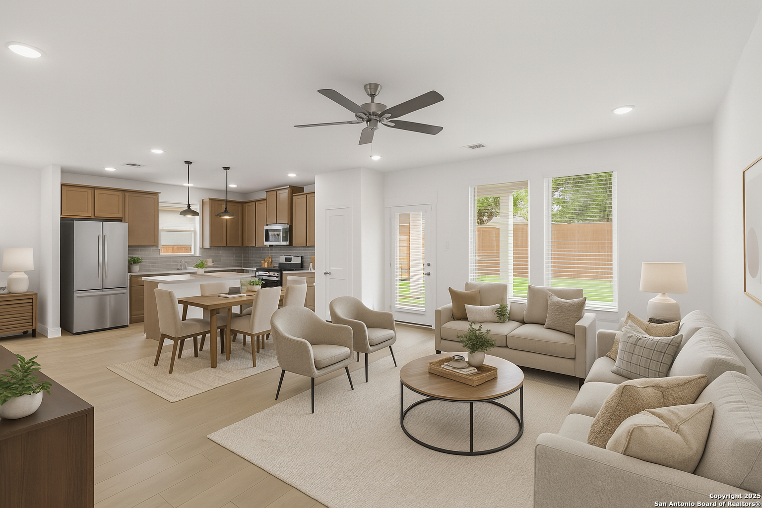 MLS# 1912947 - Built by HistoryMaker Homes - Dec 2025 completion! ~ Discover this exceptional single-family detached home, a perfect blend of modern design and functionality, located in the desirable Fairway Crossing subdivision. With an estimated completion date of December 31, 2025, this brand-new construction offers a spacious layout featuring 4 primary bedrooms and 3 full bathrooms. Spanning 2,440 square feet, the home boasts a thoughtfully designed floor plan that maximizes both comfort and style. The living areas are enhanced by double-pane windows, allowing natural light to flood the space while ensuring energy efficiency. The interior showcases a mix of carpeting, ceramic tile, and vinyl flooring, offering both durability and aesthetic appeal. The central heating and cooling systems ensure year-round comfort, making this home a perfect retreat in any season. The foundation is built on a sturdy slab, and the roof features composition materials, providing peace of mind for years to come. Outside, the property is enclosed by a privacy fence, creating a serene outdoor space for relaxation or entertaining. While the home does not feature a pool, the expansive yard offers plenty of opportunities for landscaping or outdoor activities. Located within the Judson School District, this home is in proximity to Woodlake Elementary, Metzger Middle School, and Wagner High School. This property is a rare opportunity to own a new construction home in a sought-after neighborhood. With its modern amenities and strategic location, it promises to be a wonderful place to.
