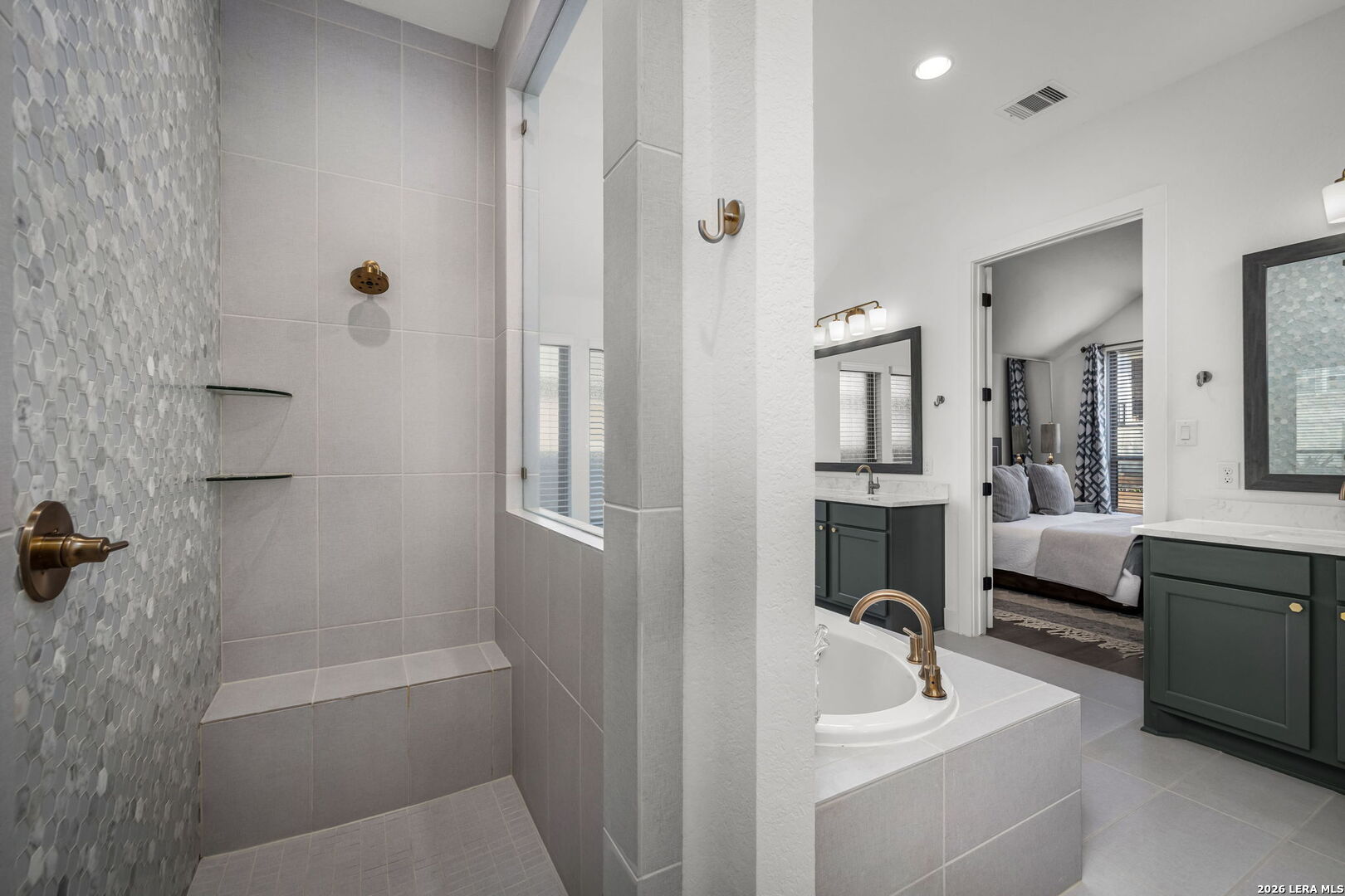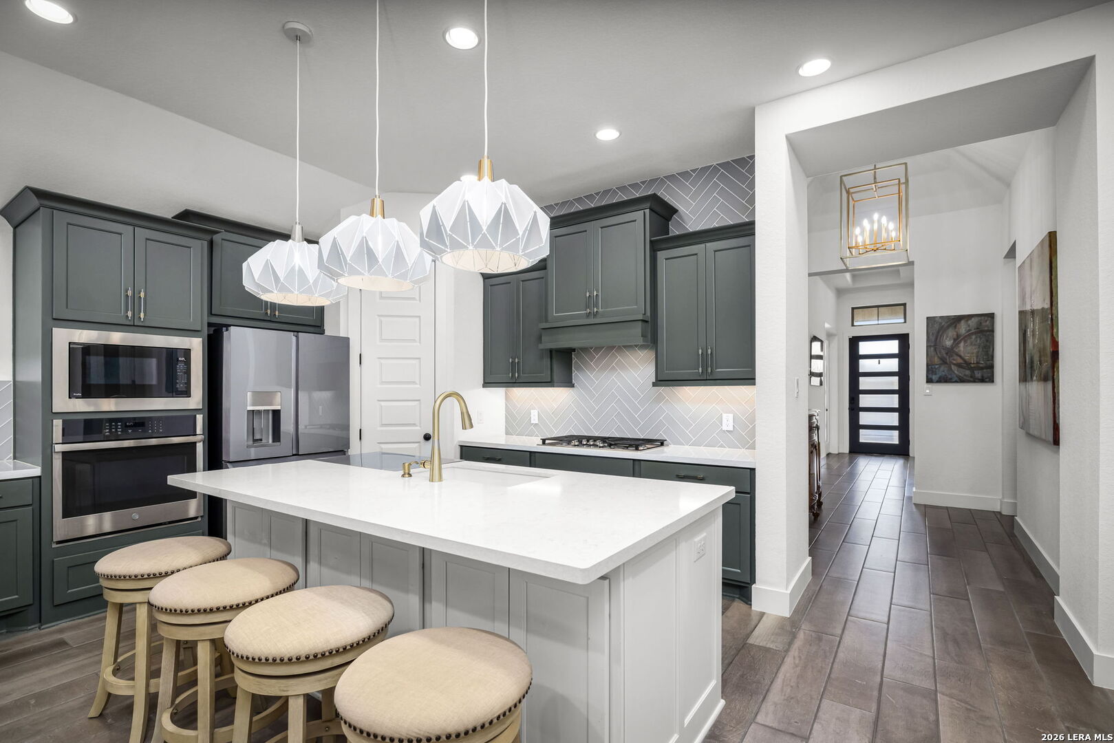Welcome home to effortless Hill Country living in the heart of the coveted Vintage Oaks community. This beautifully curated home blends timeless design with everyday comfort, creating the perfect backdrop for both relaxed living and memorable gatherings. From the moment you step inside, warm wood-look tile floors, statement designer lighting, and a cozy fireplace set the tone for a home that feels polished yet inviting. The open-concept living spaces flow seamlessly into a chef-inspired kitchen showcasing quartz countertops, premium cabinetry, and generous prep space-ideal for hosting friends, family dinners, or casual weekends at home. Escape to the oversized primary suite, a private retreat designed for rest and renewal, complete with a spa-like en-suite bath that invites you to unwind at the end of the day. The secondary bedrooms are generously sized, easily accommodating a king-size bed! Step outside and enjoy true indoor-outdoor living on the expansive extended patio, perfect for morning coffee, evening wine, or entertaining under the Texas sky. Vintage Oaks residents enjoy resort-style amenities, scenic trails, multiple pools, and a vibrant community atmosphere-all just minutes from shopping, dining, and the charm of New Braunfels. This is more than a home-it's a lifestyle.