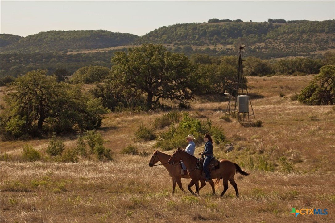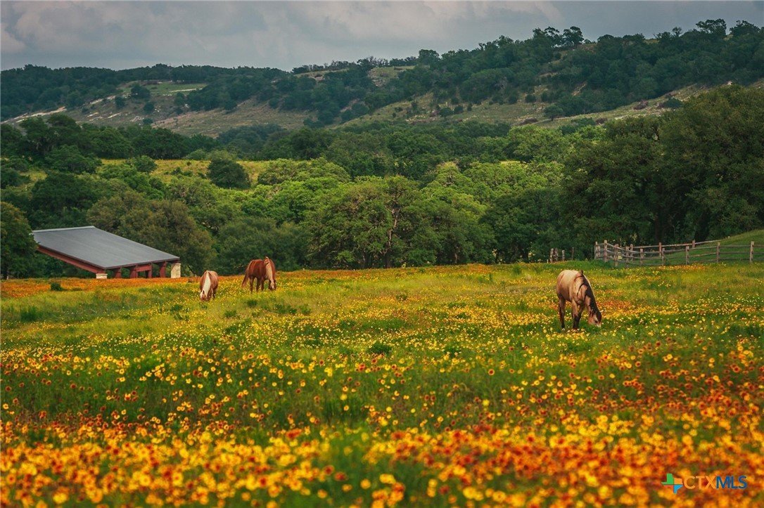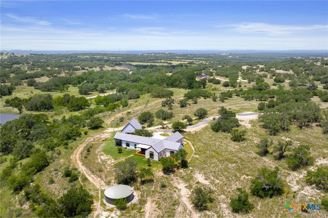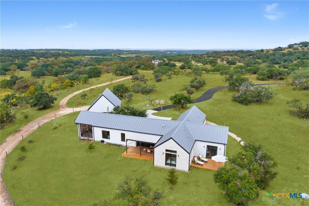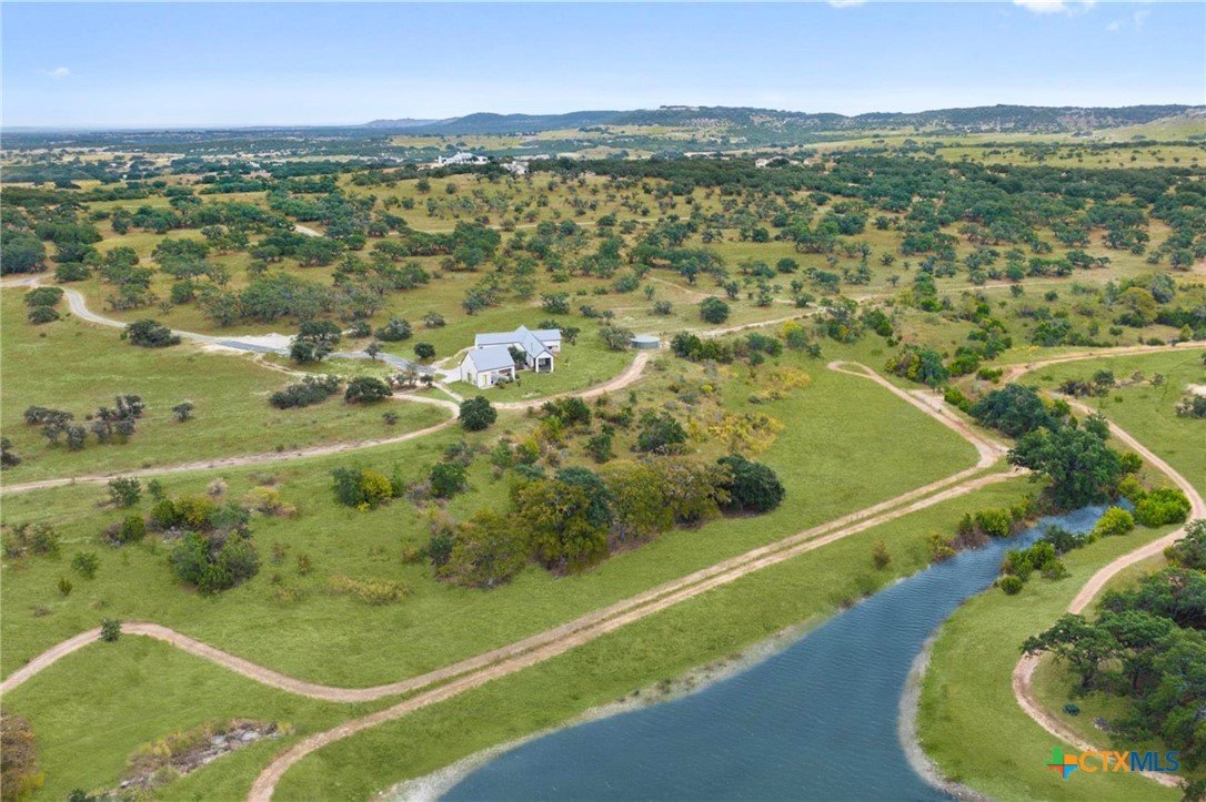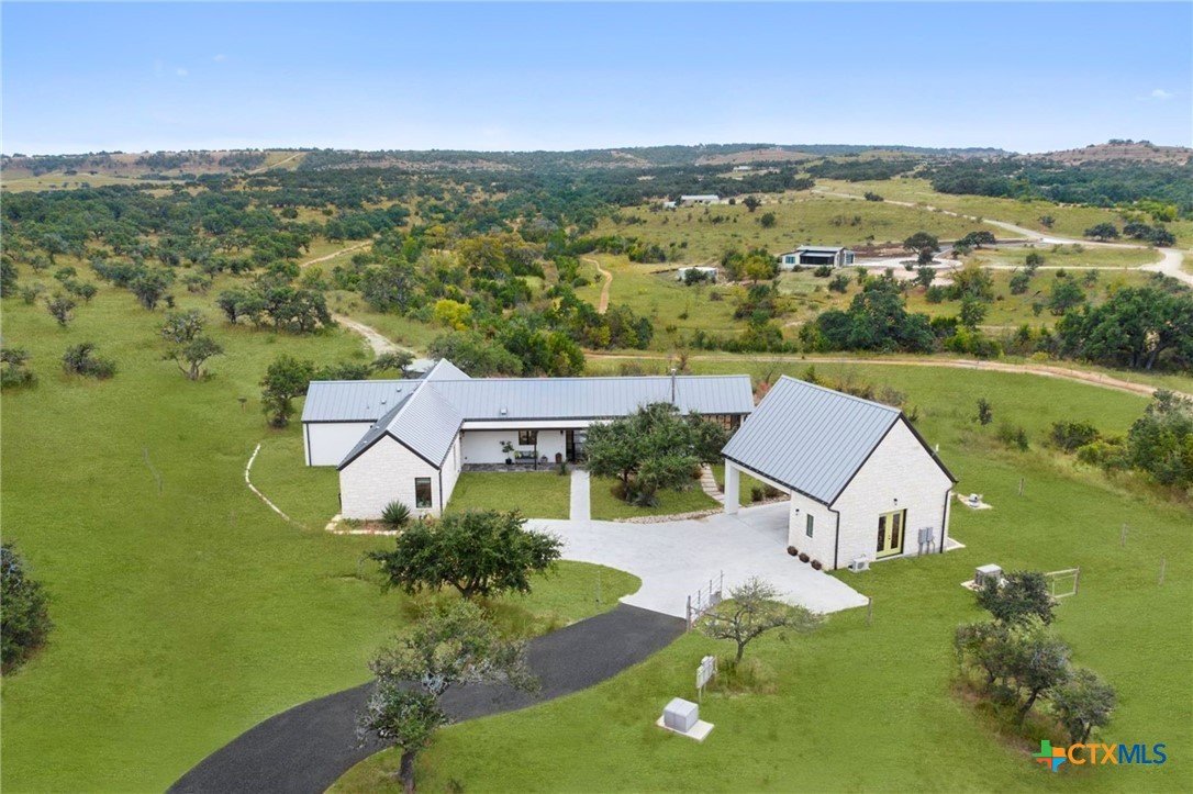 Experience luxury living at the exclusive ag-exempt ranch community, the Preserve at Walnut Springs. This development spans 2,000 acres with 66 lots, 1,500 of those acres are protected open space. Set in the Texas Hill Country, enjoy the good life with 22 miles of private trails for hiking, biking, and horseback riding. Perched on a scenic hilltop overlooking a tranquil pond and Towhead Creek, this beautifully crafted 4/bed, 4/bath, contemporary home sits on 6.82 private acres. Designed by renowned architect Tim Brown and built in 2022, the 2,722-square-foot home blends elegant design with natural materials, including French-country hardwood flooring and elegant lighting. 13’6” cathedral ceilings enclose the main living areas with Marvin doors/windows providing natural light. The wood-beamed ceilings, unique tilework, and a Bari wood-burning stove add warmth and character. The kitchen features Thermador appliances, including one electric oven and one propane oven/stovetop, custom cabinetry, and natural quartzite countertops. There are 3 covered outdoor living and entertaining areas all having stunning views of the Hill Country sunsets. Additionally, there is a detached, AC/heat workshop with an outdoor shower that can be used as a tool shop, office, or easily converted to guest quarters. Atop the carport building is a spacious 30’ x 30’ storage attic. Living at the Preserve at Walnut Springs offers access to top-tier amenities, including a clubhouse, two pools, tennis courts, stocked fishing ponds, a spring-fed swimming hole, hunting access, and an equestrian center with stalls and a covered arena. Residents also benefit from a full-time concierge service, making life here heavenly at a tremendous value. Located eight miles outside of Johnson City, close to Hye and Fredericksburg, and only an hour from both Austin and San Antonio, this property offers the perfect blend of luxury, privacy, and Texas Hill Country charm.