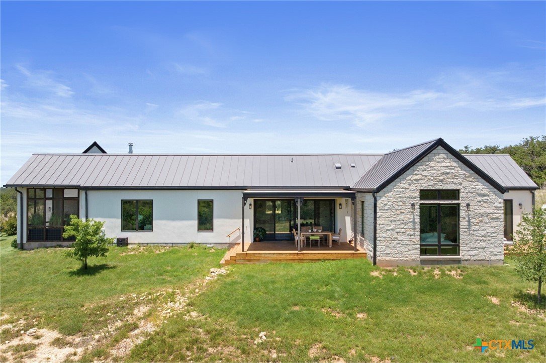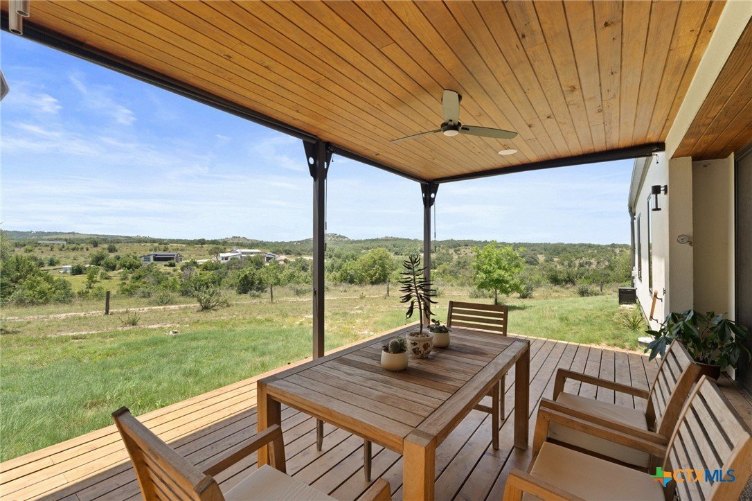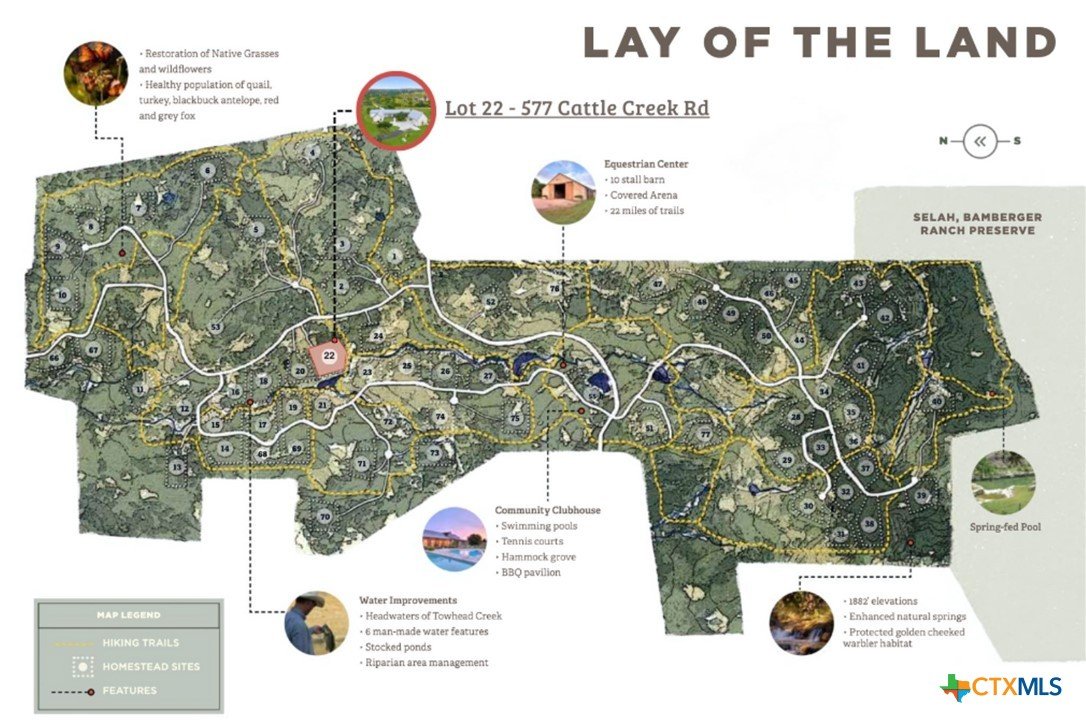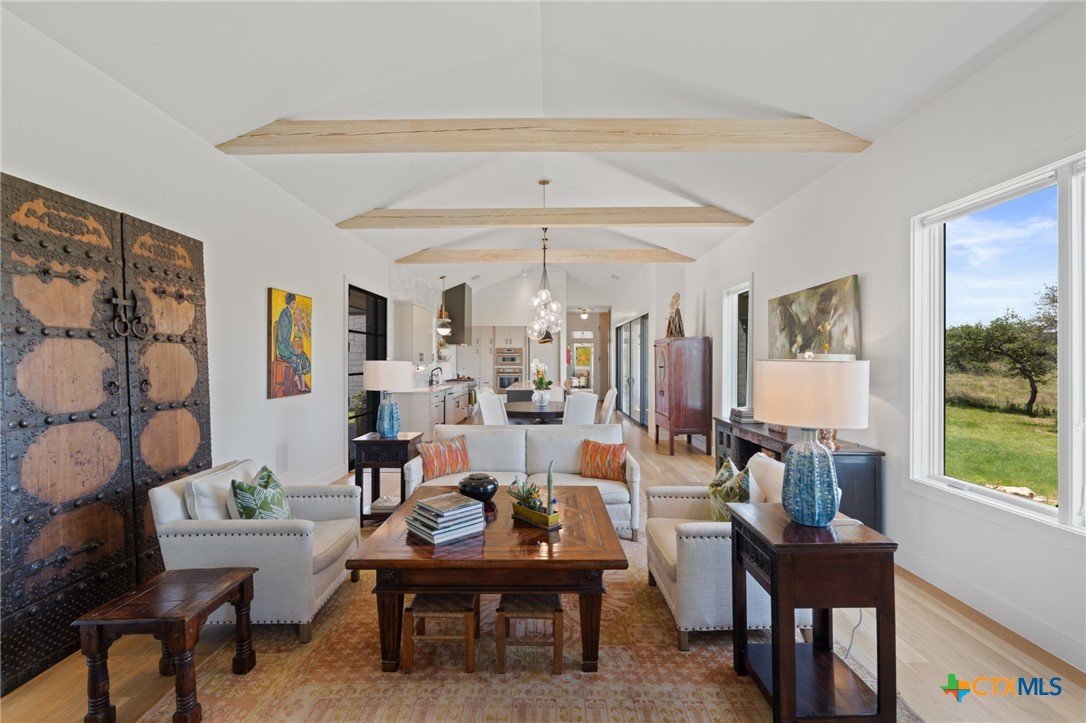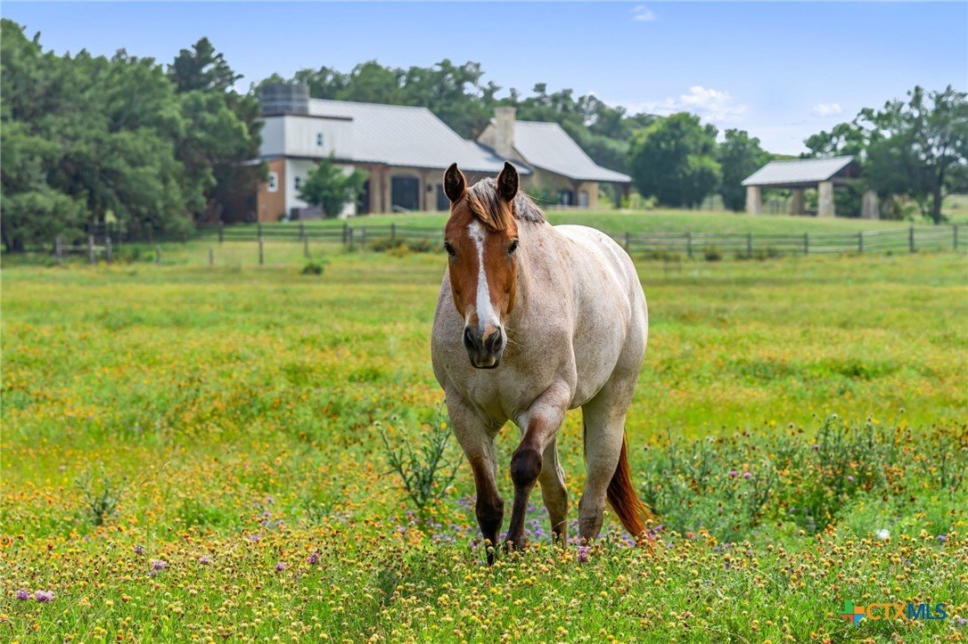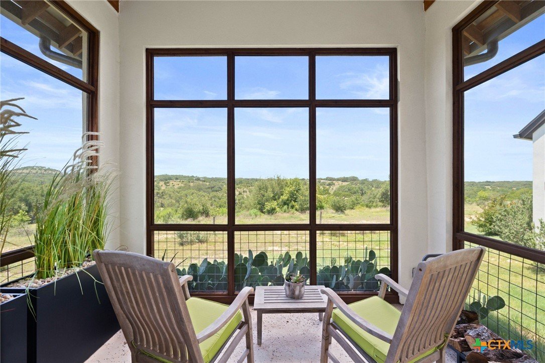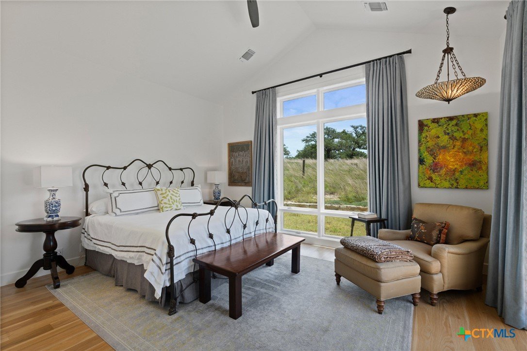 Experience luxury living at the exclusive ag-exempt ranch community, the Preserve at Walnut Springs. This development spans 2,000 acres with 66 lots, 1,500 of those acres are protected open space. Set in the Texas Hill Country, enjoy the good life with 22 miles of private trails for hiking, biking, and horseback riding. Perched on a scenic hilltop overlooking a tranquil pond and Towhead Creek, this beautifully crafted 4/bed, 4/bath, contemporary home sits on 6.82 private acres. Designed by renowned architect Tim Brown and built in 2022, the 2,722-square-foot home blends elegant design with natural materials, including French-country hardwood flooring and elegant lighting. 13’6” cathedral ceilings enclose the main living areas with Marvin doors/windows providing natural light. The wood-beamed ceilings, unique tilework, and a Bari wood-burning stove add warmth and character. The kitchen features Thermador appliances, including one electric oven and one propane oven/stovetop, custom cabinetry, and natural quartzite countertops. There are 3 covered outdoor living and entertaining areas all having stunning views of the Hill Country sunsets. Additionally, there is a detached, AC/heat workshop with an outdoor shower that can be used as a tool shop, office, or easily converted to guest quarters. Atop the carport building is a spacious 30’ x 30’ storage attic. Living at the Preserve at Walnut Springs offers access to top-tier amenities, including a clubhouse, two pools, tennis courts, stocked fishing ponds, a spring-fed swimming hole, hunting access, and an equestrian center with stalls and a covered arena. Residents also benefit from a full-time concierge service, making life here heavenly at a tremendous value. Located eight miles outside of Johnson City, close to Hye and Fredericksburg, and only an hour from both Austin and San Antonio, this property offers the perfect blend of luxury, privacy, and Texas Hill Country charm.