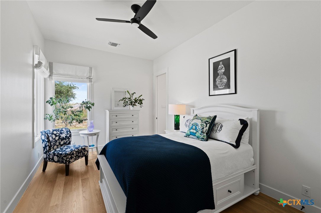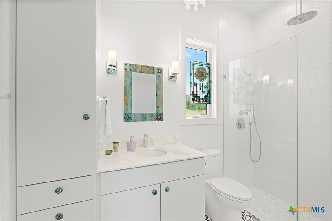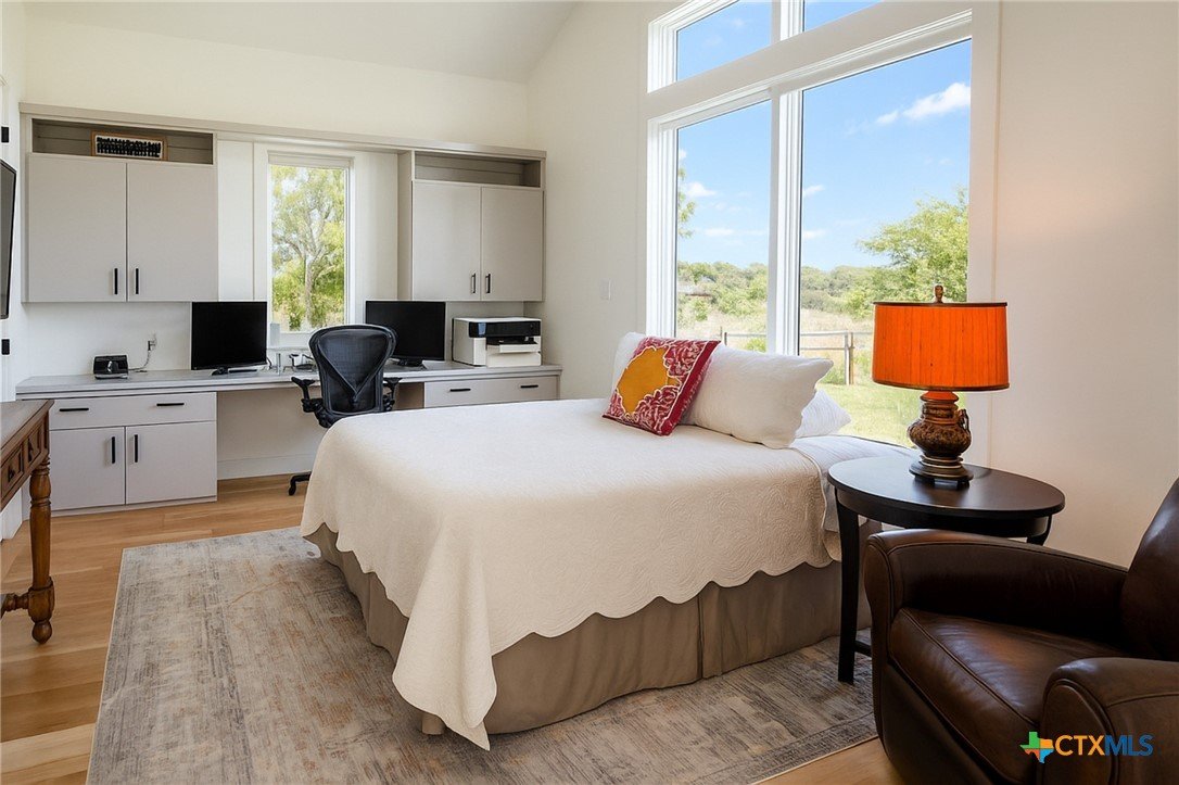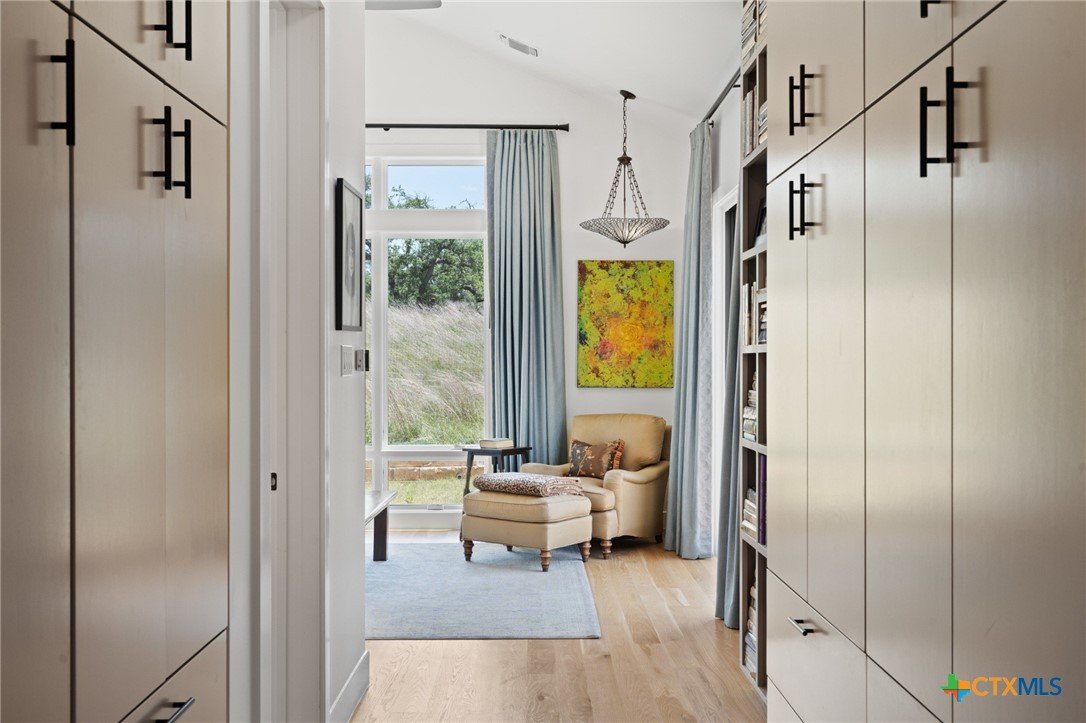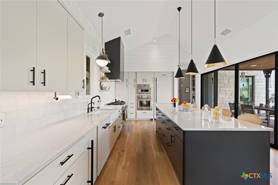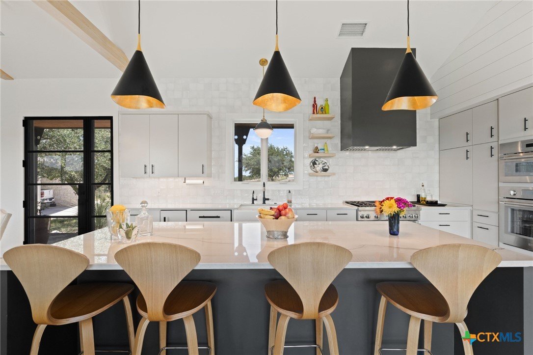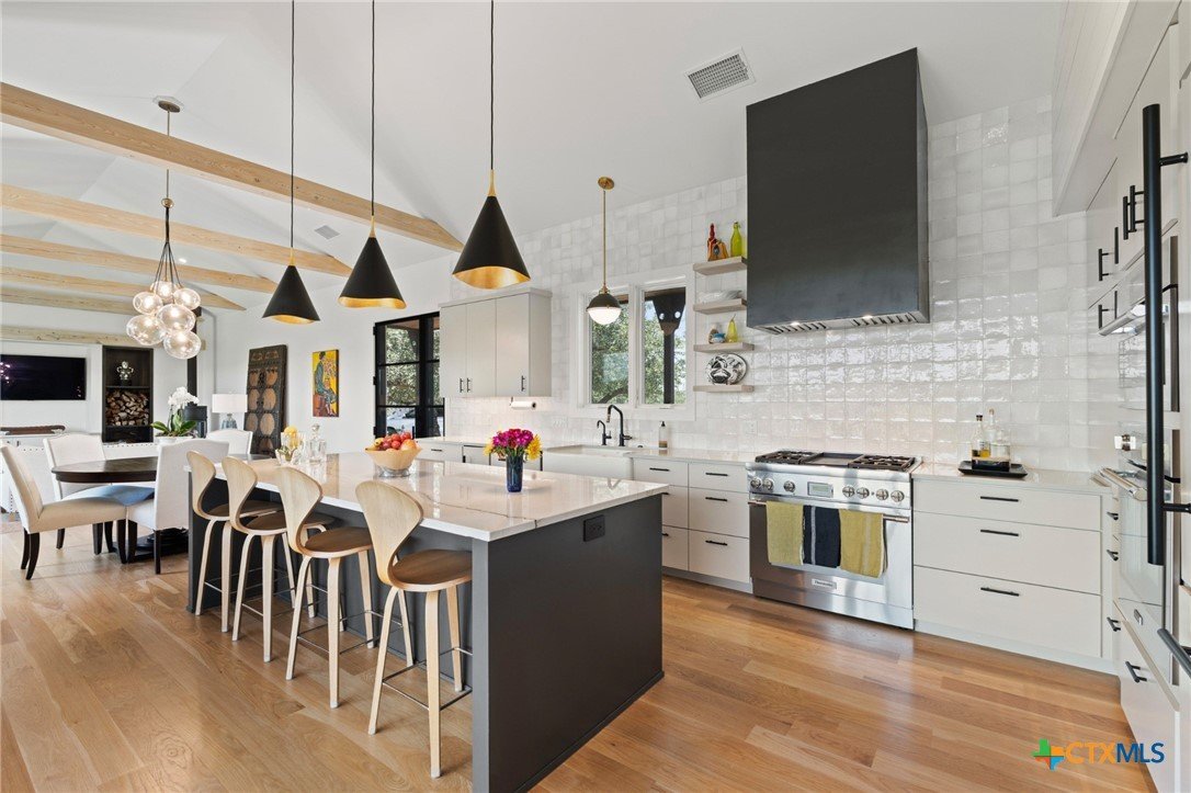 Experience luxury living at the exclusive ag-exempt ranch community, the Preserve at Walnut Springs. This development spans 2,000 acres with 66 lots, 1,500 of those acres are protected open space. Set in the Texas Hill Country, enjoy the good life with 22 miles of private trails for hiking, biking, and horseback riding. Perched on a scenic hilltop overlooking a tranquil pond and Towhead Creek, this beautifully crafted 4/bed, 4/bath, contemporary home sits on 6.82 private acres. Designed by renowned architect Tim Brown and built in 2022, the 2,722-square-foot home blends elegant design with natural materials, including French-country hardwood flooring and elegant lighting. 13’6” cathedral ceilings enclose the main living areas with Marvin doors/windows providing natural light. The wood-beamed ceilings, unique tilework, and a Bari wood-burning stove add warmth and character. The kitchen features Thermador appliances, including one electric oven and one propane oven/stovetop, custom cabinetry, and natural quartzite countertops. There are 3 covered outdoor living and entertaining areas all having stunning views of the Hill Country sunsets. Additionally, there is a detached, AC/heat workshop with an outdoor shower that can be used as a tool shop, office, or easily converted to guest quarters. Atop the carport building is a spacious 30’ x 30’ storage attic. Living at the Preserve at Walnut Springs offers access to top-tier amenities, including a clubhouse, two pools, tennis courts, stocked fishing ponds, a spring-fed swimming hole, hunting access, and an equestrian center with stalls and a covered arena. Residents also benefit from a full-time concierge service, making life here heavenly at a tremendous value. Located eight miles outside of Johnson City, close to Hye and Fredericksburg, and only an hour from both Austin and San Antonio, this property offers the perfect blend of luxury, privacy, and Texas Hill Country charm.