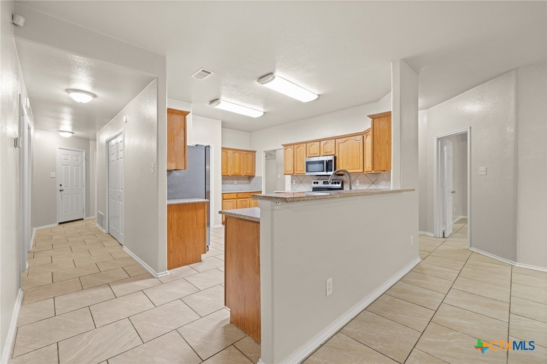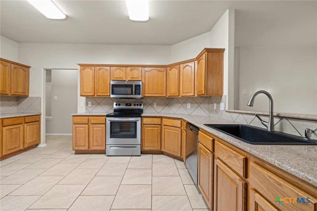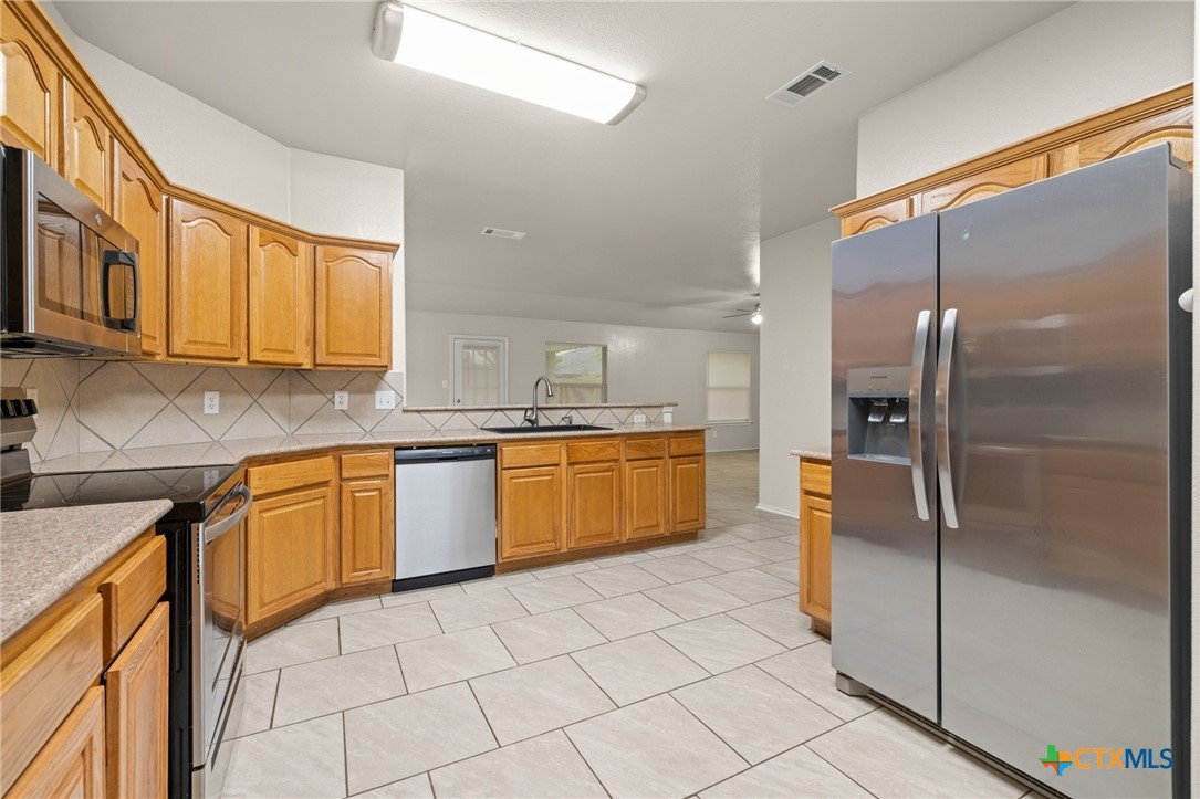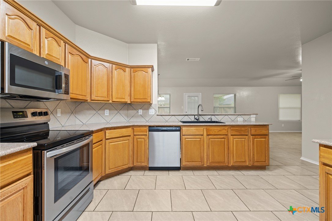 This one just hits all the right notes 4 bedrooms, 2 bathrooms. From the moment you walk in, you’ll notice the space and flow with multiple living and dining areas that make everyday living and entertaining feel effortless. Ceramic tile throughout adds a clean, modern look while keeping things low maintenance. The kitchen is truly the heart of the home, featuring granite countertops, stainless steel appliances, and plenty of cabinet and prep space—perfect for hosting or just enjoying a quiet night in. Fresh interior and exterior paint give the entire home a crisp, updated feel, and the big-ticket items are already done with a new HVAC system in 2024 and an impact-resistant architectural shingle roof. The primary suite is oversized and feels like its own private retreat, complete with a huge walk-in closet, dual vanities, a soaking tub, and a separate shower. Secondary bedrooms are all generously sized, giving everyone their own comfortable space. Step outside and you’ve got even more to love—a large backyard with a huge covered patio and covered porch that’s perfect for relaxing, entertaining, or enjoying evenings at home. This is one of those homes that just feels right—updated, spacious, and ready for its next owner.