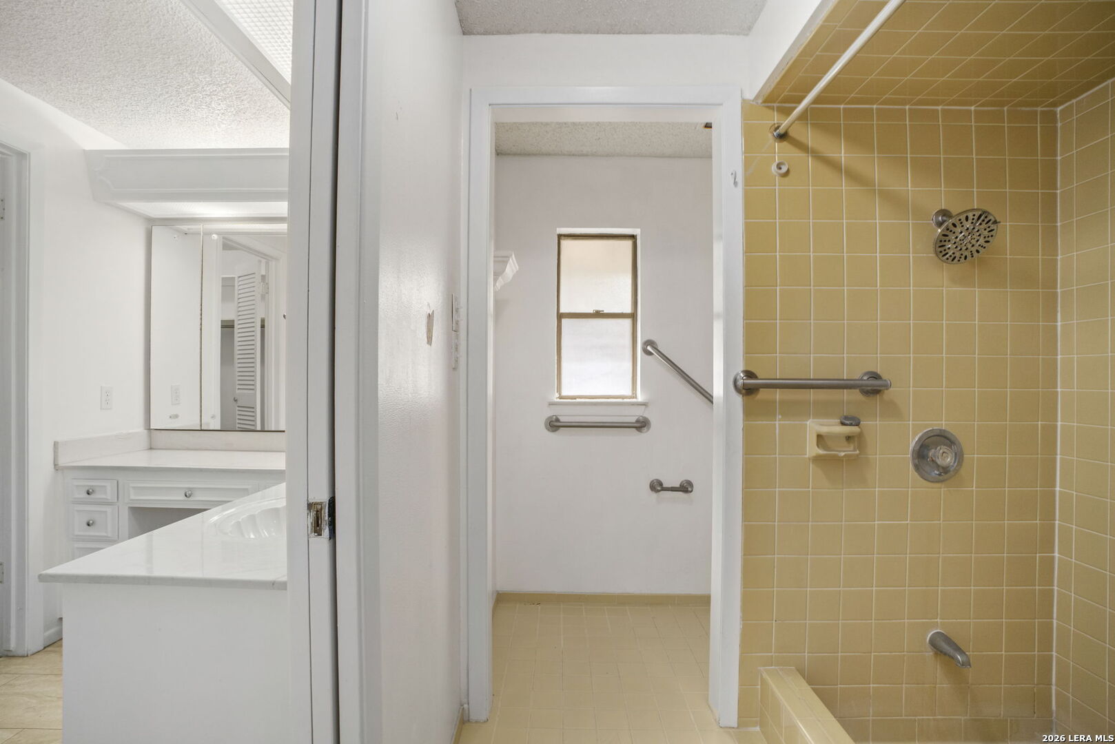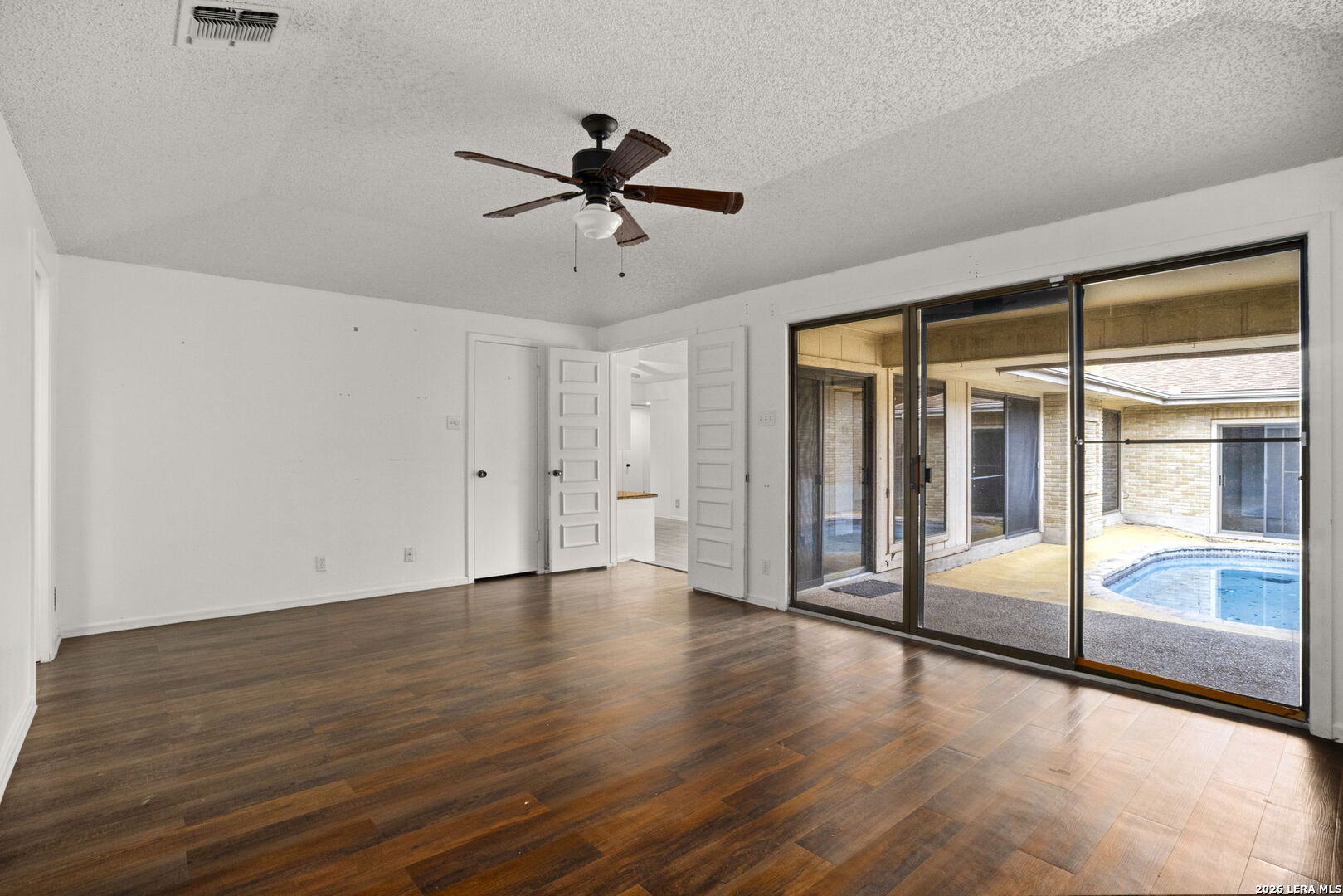 Built in 1976 this charming garden home located in the City of Windcrest is ready for your finishing touches. This property offers 2477 square foot of living space with a two car garage located in the back. Summer will be here before you know it. Step outside your master bedroom or living room and enjoy a dip in the pool. 3 bedroom, 3 bath home has a large open concept living space. With 2 bedrooms and bathrooms up front this floorplan offers a separate master situated in the back of the home. The living room and dining space offer room to imagine a variety of options on how to arrange furniture making it functional for the whole family. A beautiful built-in bookshelf, wood beams and fireplace adds custom features to enjoy. The kitchen is open with extra cabinets and storage space complete with a butlers panty. LVP and tile flooring. Ceiling fans. Utility room inside. Come see how to make this one your own.