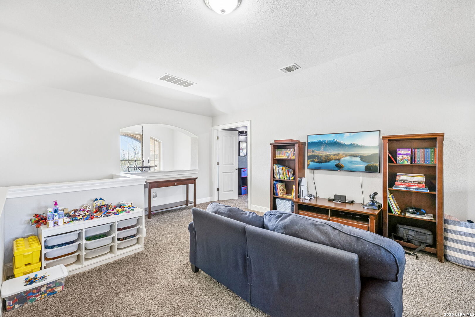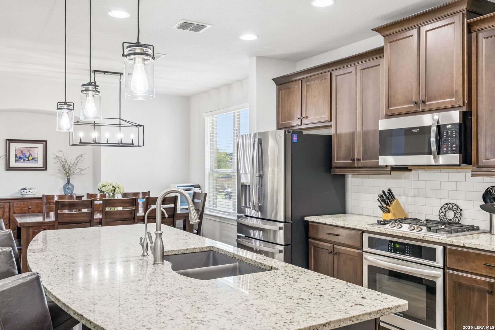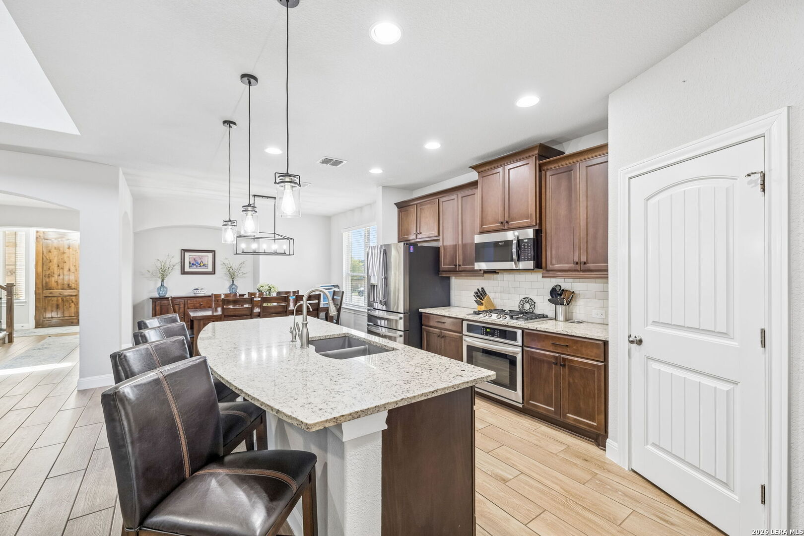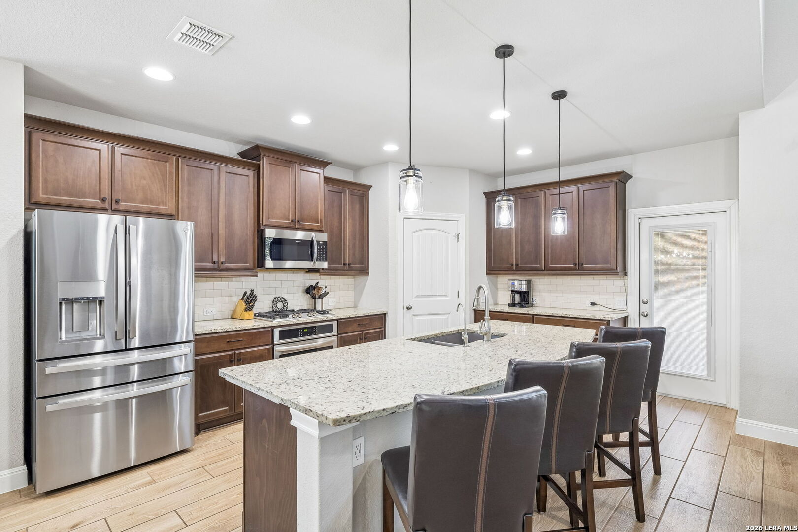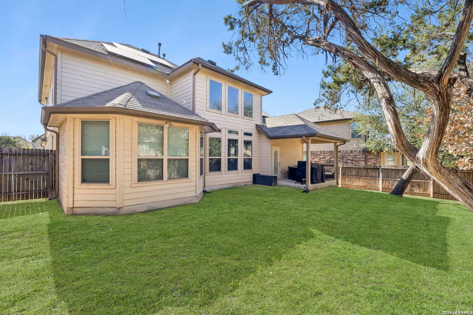 Set within an enclave of Alamo Ranch, 5807 Burro Stone presents a well-composed residence with a thoughtful layout and a sense of openness throughout. The exterior introduces a clean, contemporary profile with a covered entry and a private backyard framed by a covered patio, offering an easy extension of the living space. Inside, the floor plan unfolds across multiple living areas, including a main living room and an upstairs game room. The kitchen is positioned at the center of the home with granite counters, ample cabinetry, and a layout that connects naturally to the surrounding living and dining spaces. The primary suite is located on the main level, offering separation from the secondary bedrooms. Additional bedrooms are situated upstairs alongside a secondary living space, creating flexibility for guests, work, or daily use. Residents have access to neighborhood amenities including a pool and recreational areas, rounding out a setting that supports day-to-day ease within a newer community.