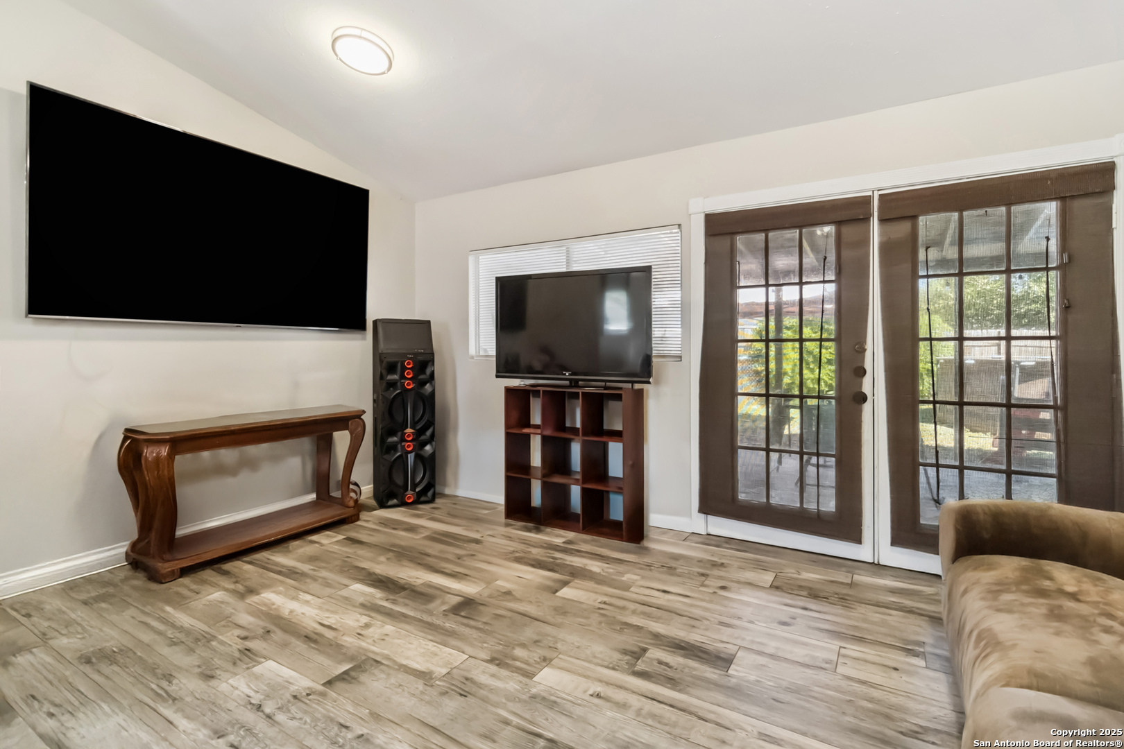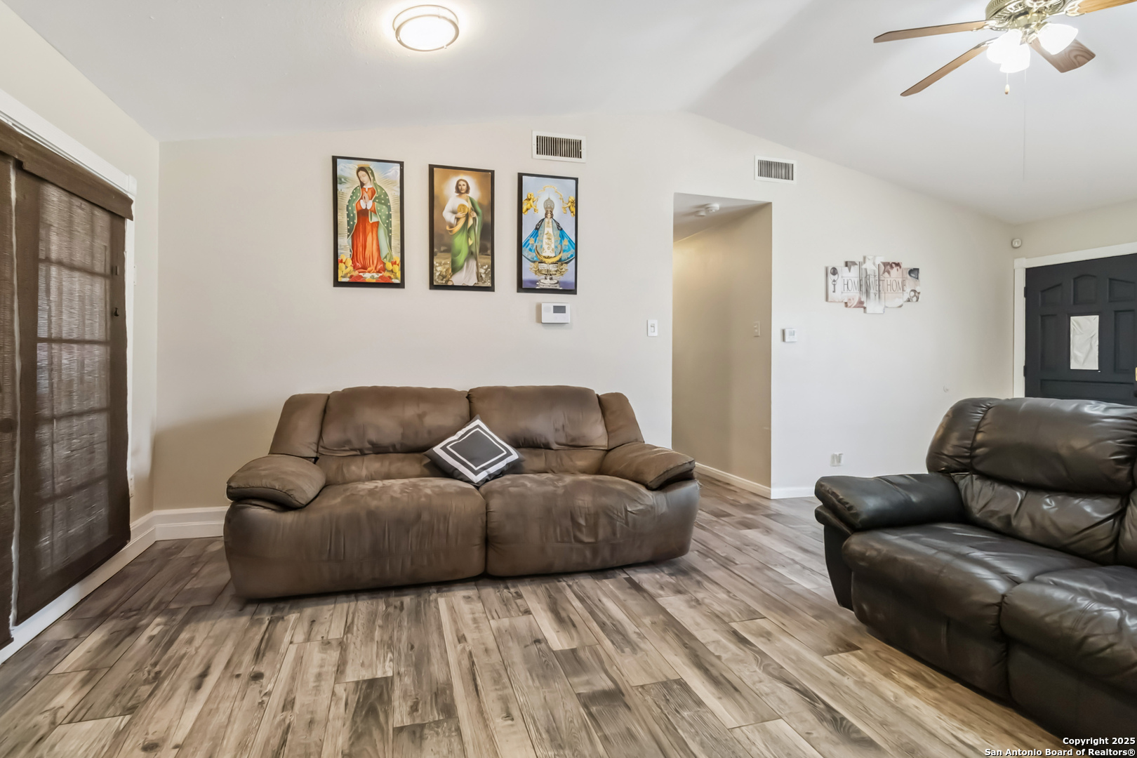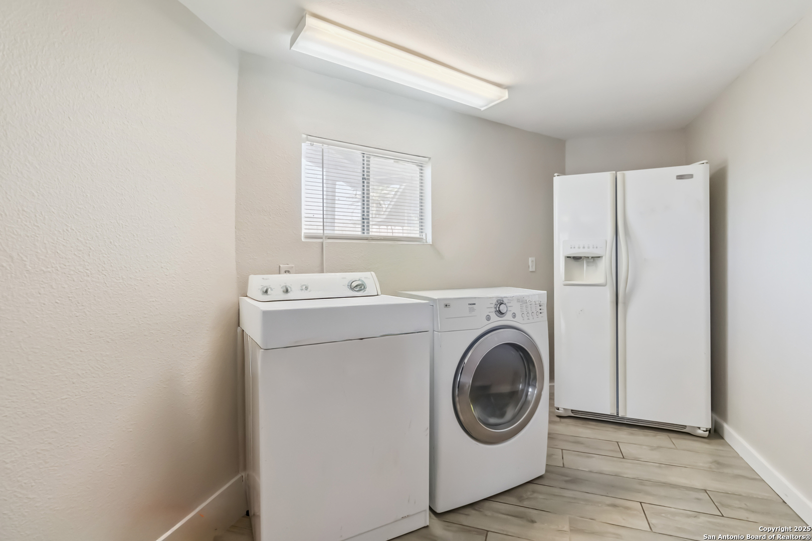This charming home boasts high ceilings and an open-concept layout that adds character and spaciousness throughout. The vinyl flooring beautifully complements the entire interior, enhancing its modern feel. The living area opens seamlessly into the kitchen and dining space, making it perfect for entertaining. French doors lead to a welcoming outdoor patio-ideal for relaxing or hosting gatherings. The large laundry room offers ample space to add a storage freezer or extra refrigerator, providing practical functionality for everyday living. Situated on a quiet cul-de-sac, the property offers privacy and security with fencing and plenty of room for outdoor activities. "Conveniently located just minutes from major highways, this area offers easy access to Pearsall Park and Millers Pond-two vibrant community parks with daily family-friendly activities. The neighborhood also boasts a variety of local eateries, perfect for dining and socializing." Home Warranty Included.