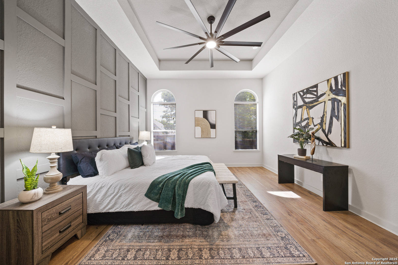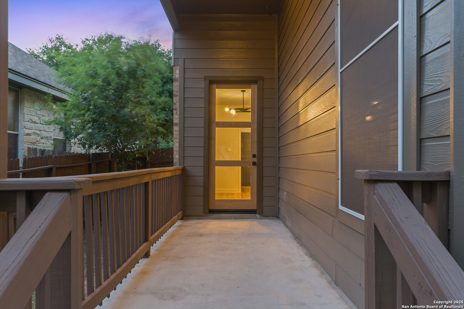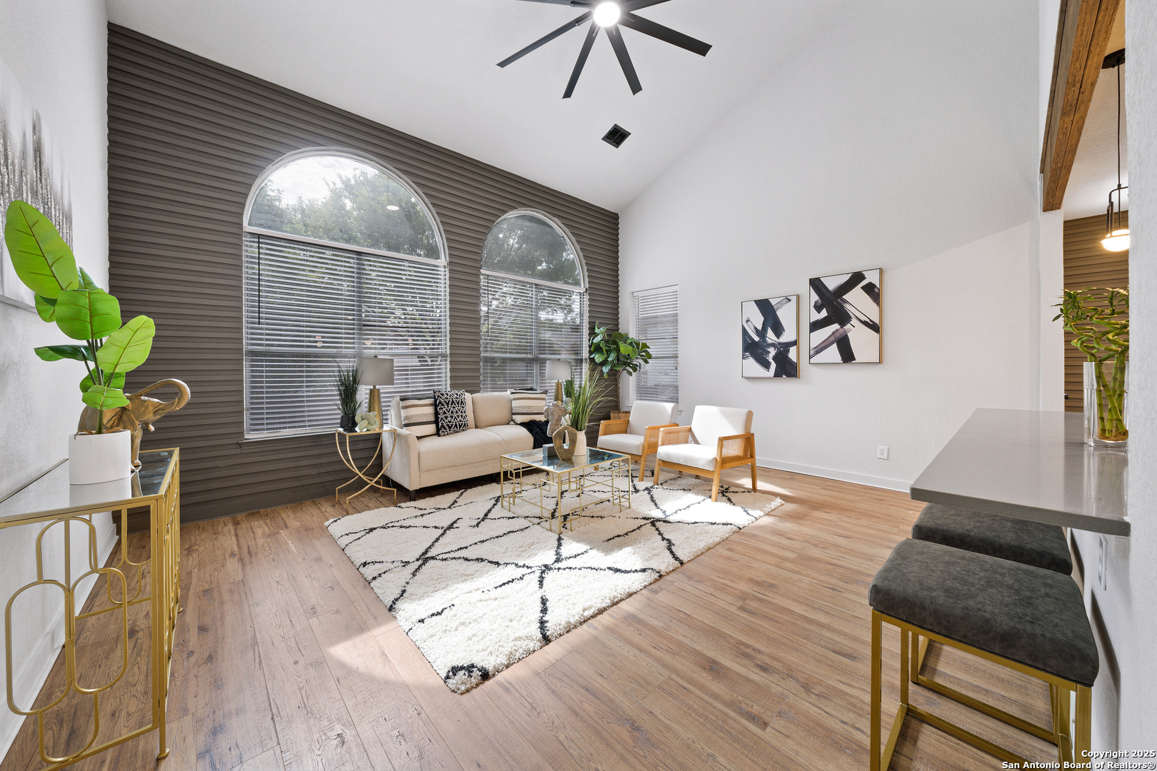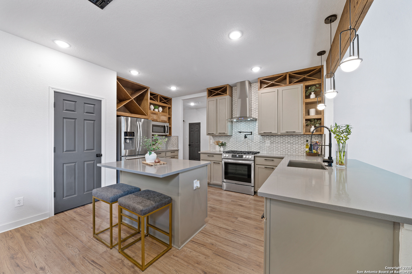 Spacious 4 bedroom, 2 and a half bath home in Alamo Ranch boasting human centered design. Expansive ceilings in entrance and living room with extra large windows & new energy saving solar screens. All new flooring, quartz countertops, custom cabinetry to ceiling with upgraded hardware, stainless steel vent hood with pot filler and tiled backsplash. Bathrooms feature frameless shower enclosures, shower tile to ceiling, custom mirrors, and decorative wall design elements at vanities. Half bath downstairs with decorative wainscot. Modern lighting and plumbing fixtures throughout, custom metal stair railing with decorative accent walls at Living Room, Game Room, Breakfast, Office & Bedrooms. 96" front and back doors, barn doors at Office and Master Bathroom. New Nest thermostat, garage door, and garage epoxy flooring. Brand new Owens Corning 30 yr roof, freshly landscaped exterior with 3' expansion on each side of driveway, and a firepit perfect for entertaining on Texas nights. MUST SEE HOME.