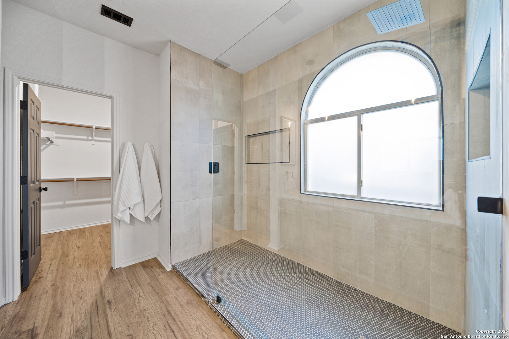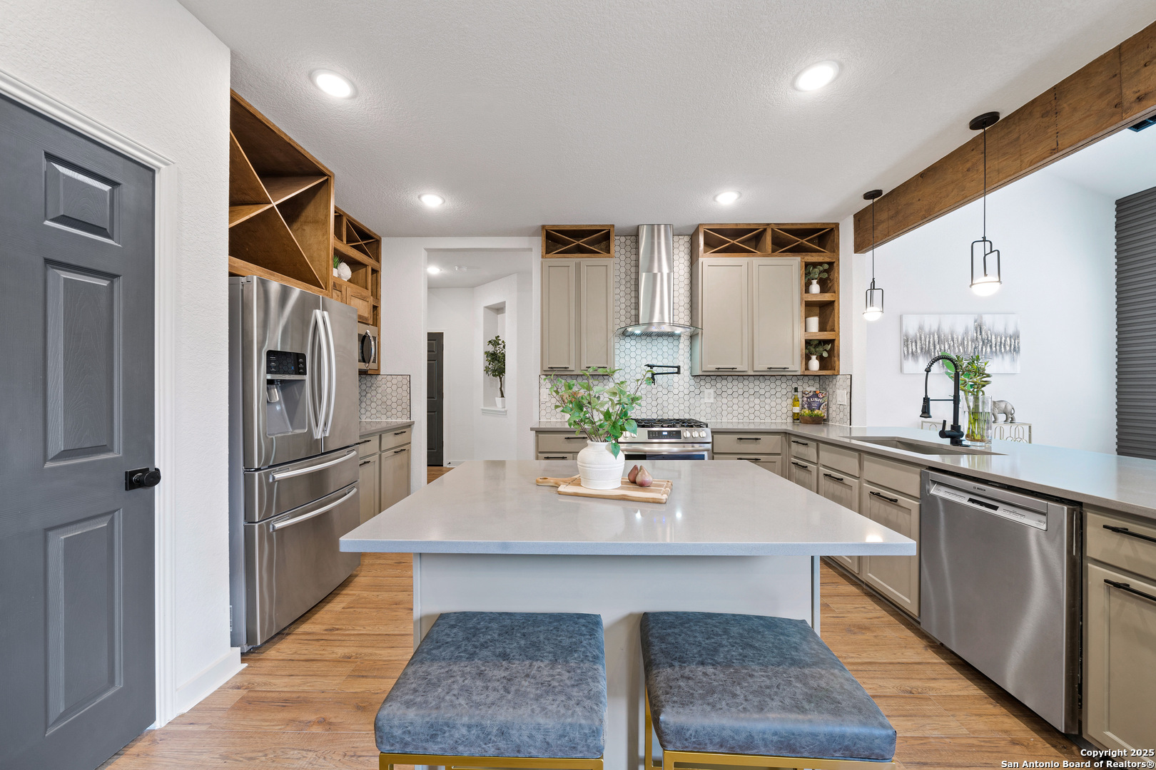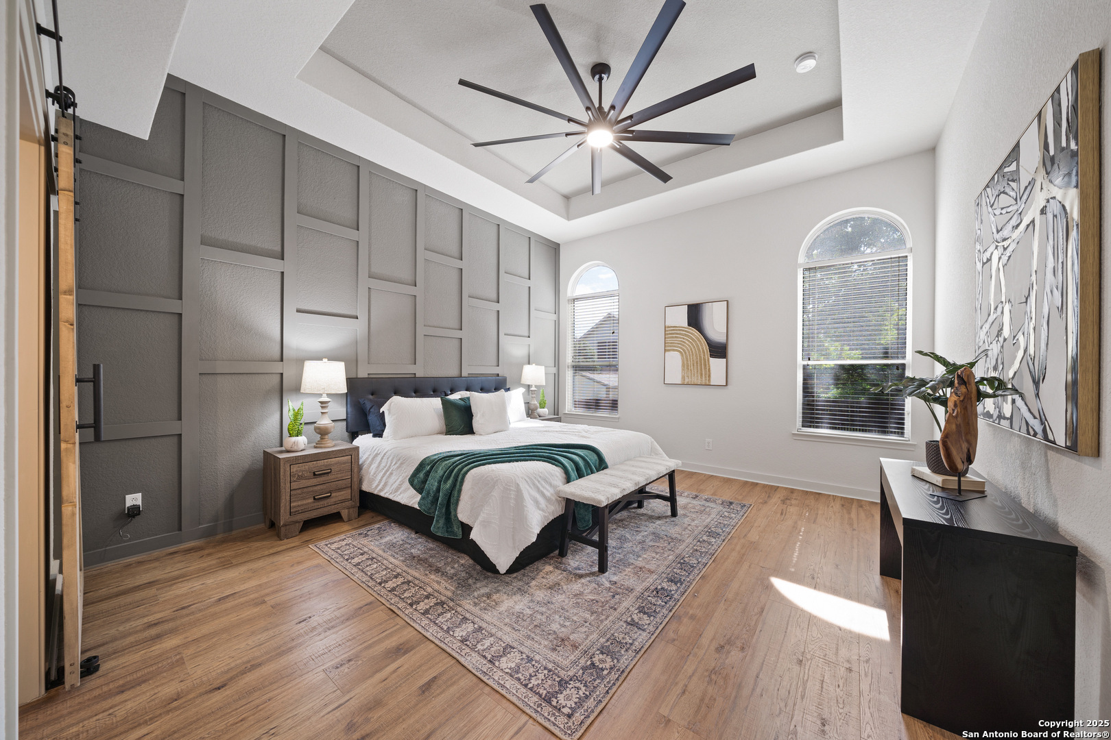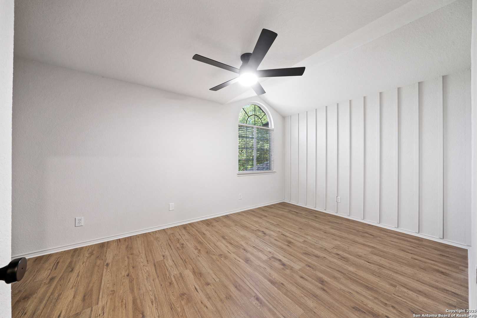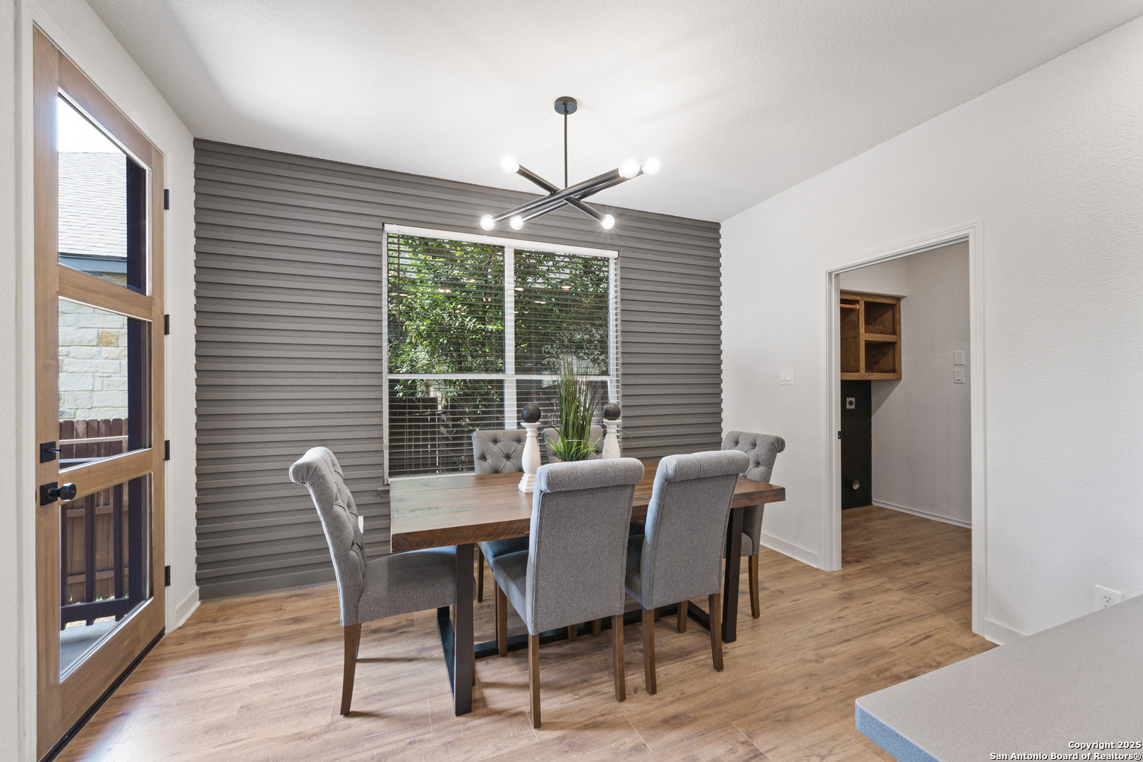 Spacious 4 bedroom, 2 and a half bath home in Alamo Ranch boasting human centered design. Expansive ceilings in entrance and living room with extra large windows & new energy saving solar screens. All new flooring, quartz countertops, custom cabinetry to ceiling with upgraded hardware, stainless steel vent hood with pot filler and tiled backsplash. Bathrooms feature frameless shower enclosures, shower tile to ceiling, custom mirrors, and decorative wall design elements at vanities. Half bath downstairs with decorative wainscot. Modern lighting and plumbing fixtures throughout, custom metal stair railing with decorative accent walls at Living Room, Game Room, Breakfast, Office & Bedrooms. 96" front and back doors, barn doors at Office and Master Bathroom. New Nest thermostat, garage door, and garage epoxy flooring. Brand new Owens Corning 30 yr roof, freshly landscaped exterior with 3' expansion on each side of driveway, and a firepit perfect for entertaining on Texas nights. MUST SEE HOME.