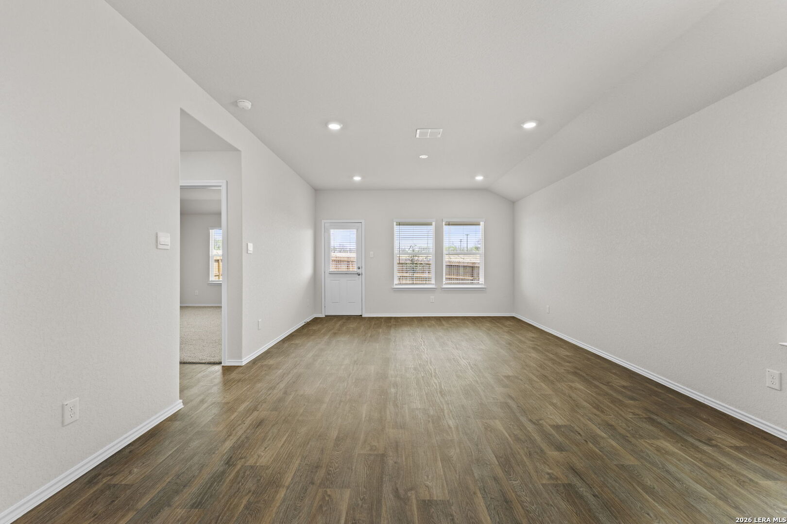 The Caroline is sure to impress with its classic front exterior, 3 bedrooms, 2 baths, and 2-car garage. An elongated foyer welcomes you into an open concept kitchen, dining area, and living room, perfect for entertaining. This home's kitchen includes shaker style cabinetry, quartz counter tops, stainless steel appliances and a spacious kitchen island with a deep farmhouse style single basin sink. The main bedroom is located right off the living room and features a semi-vaulted ceiling and an attractive ensuite bathroom. You'll enjoy getting ready every day with plenty of bathroom space and modern bathroom features including quartz countertops, shaker style cabinets, a tiled walk-in shower and spacious walk-in closet. If privacy is your top priority, this ensuite bathroom comes standard with a separate water closet. Every bedroom has quality carpet, a closet, and windows for plenty of natural lighting. Whether these rooms become bedrooms or other bonus spaces, there is sure to be comfort and functionality. Additional features include a back patio that overlooks a fully landscaped and irrigated yard, sheet vinyl flooring in entry, living room, and all wet areas, and quartz countertops and tiled flooring in all secondary bathrooms. This home also comes equipped with our HOME IS CONNECTED base package. Using one central hub that talks to all the devices in your home, you can control the lights, thermostat and locks, all from your cellular device.