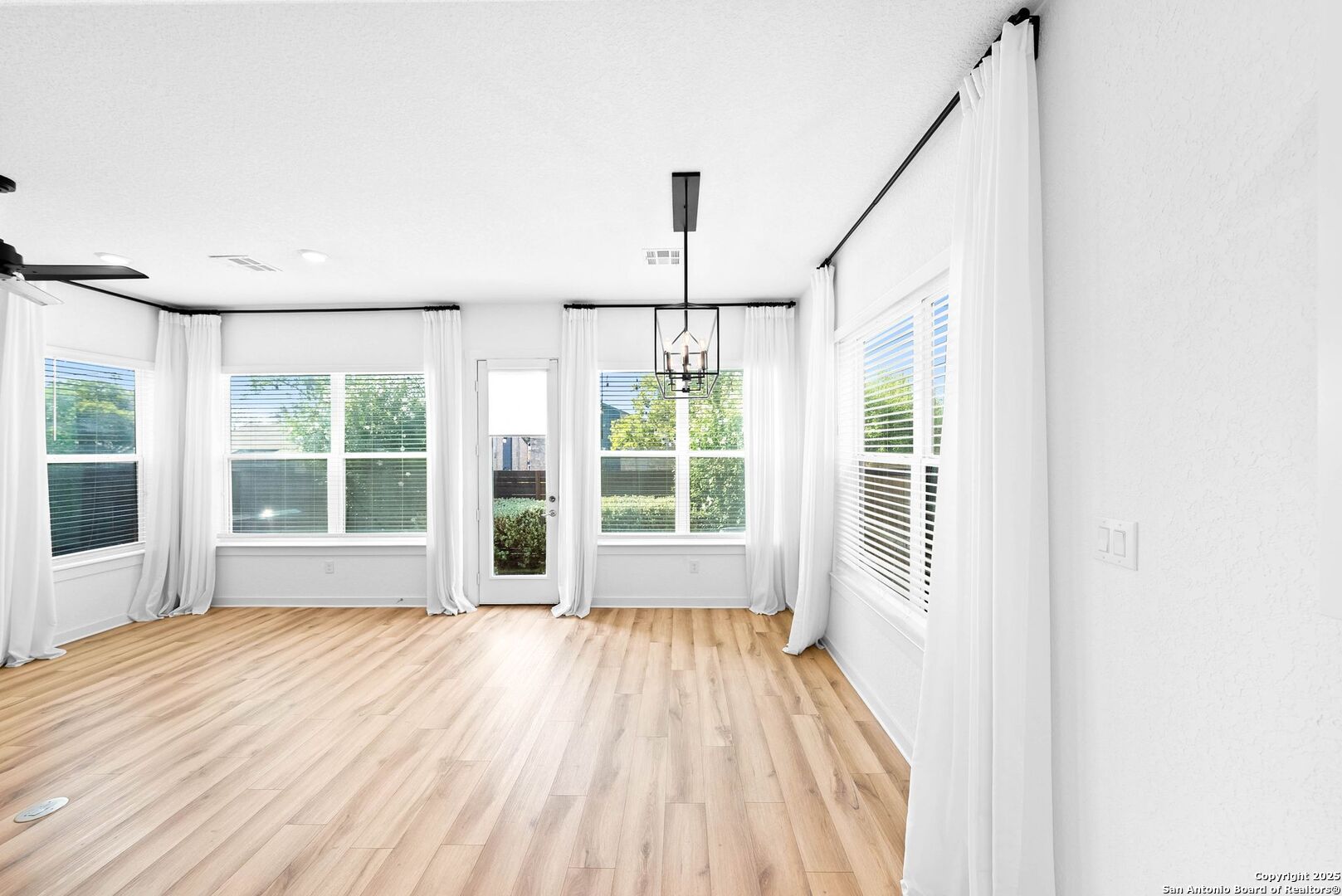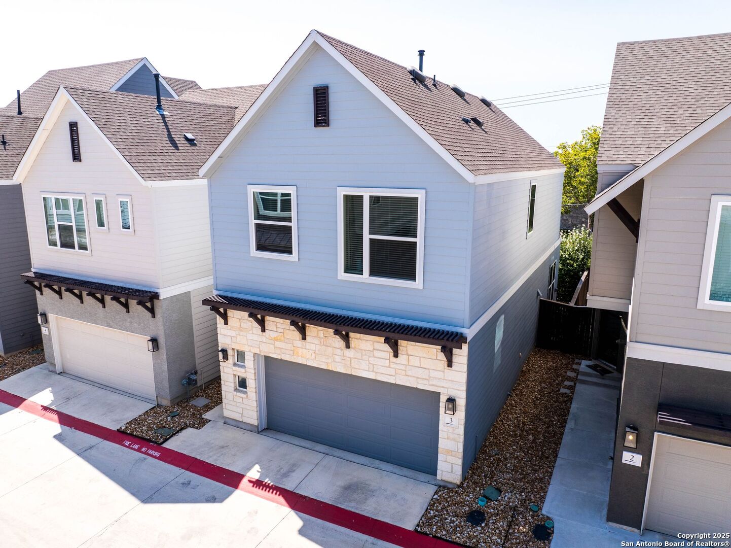 Step into The Enclave at Whitby, a gated neighborhood where comfort, convenience, and modern design come together seamlessly. Perfectly situated near the Medical Center with effortless access to I-10, this home places you just minutes from the shops, dining, and energy of La Cantera and The Rim, while still offering the peaceful retreat of a private community. This modern two-story residence features 3 bedrooms and 2.5 bathrooms, thoughtfully designed to complement both quiet evenings at home and lively weekends of entertaining. The first impression is clean and inviting, with bright white finishes and natural light that highlight the open layout. The cozy living space feels like the heart of the home, whether you are curled up for movie night, hosting friends for dinner, or enjoying a morning coffee as the sun pours through the windows. The kitchen is a delight for any home chef, boasting stainless steel appliances, a built-in microwave, gas cooking, and a dishwasher that makes cleanup effortless. The open connection to the dining area means conversations never have to pause, and the easy flow makes daily routines feel lighter. Durable vinyl and tile flooring throughout the living areas not only look sleek but also offer low-maintenance practicality for busy lifestyles. Upstairs, the primary suite is a private retreat you will look forward to each evening. The walk-in closet offers abundant storage, while the ensuite bathroom creates a spa-like experience with a stand-up shower and double sinks designed for convenience and comfort. Secondary bedrooms are perfect for family, guests, or even a home office, with a nearby laundry room that keeps chores simple and close to where life happens. Step outside your front door and enjoy the security and serenity of a gated neighborhood, while knowing you are only minutes from vibrant city life. From shopping trips and dining out to quiet nights in, this home adapts beautifully to your lifestyle. This is more than just a place to live. It is a home that gives you peace, flexibility, and style, all in one of San Antonio's most desirable locations.