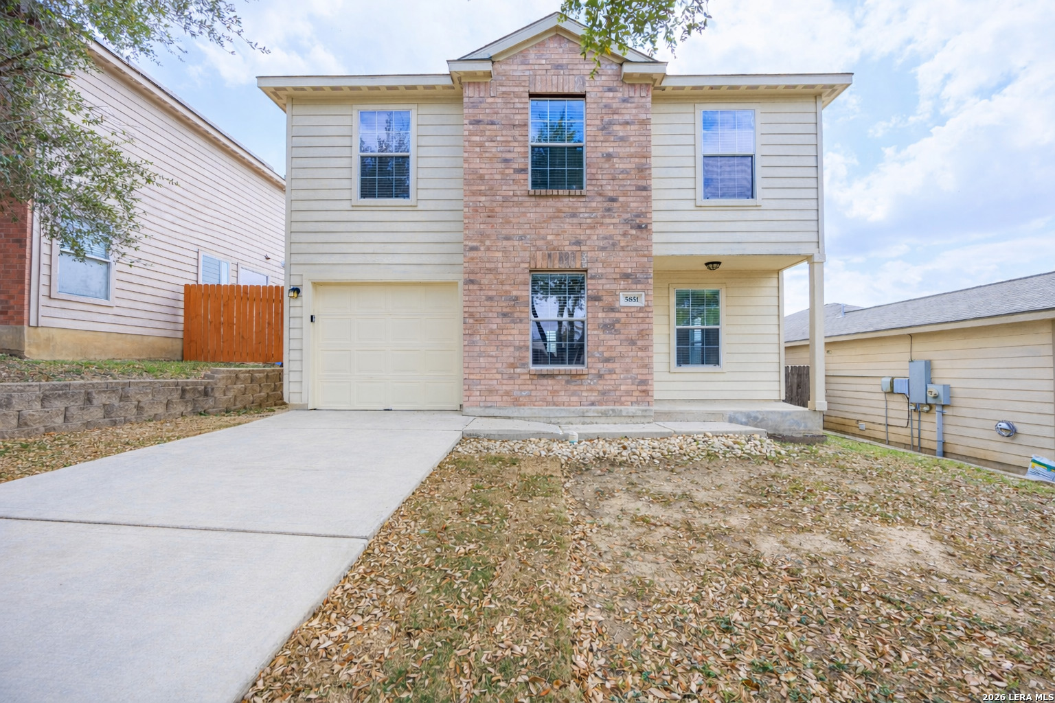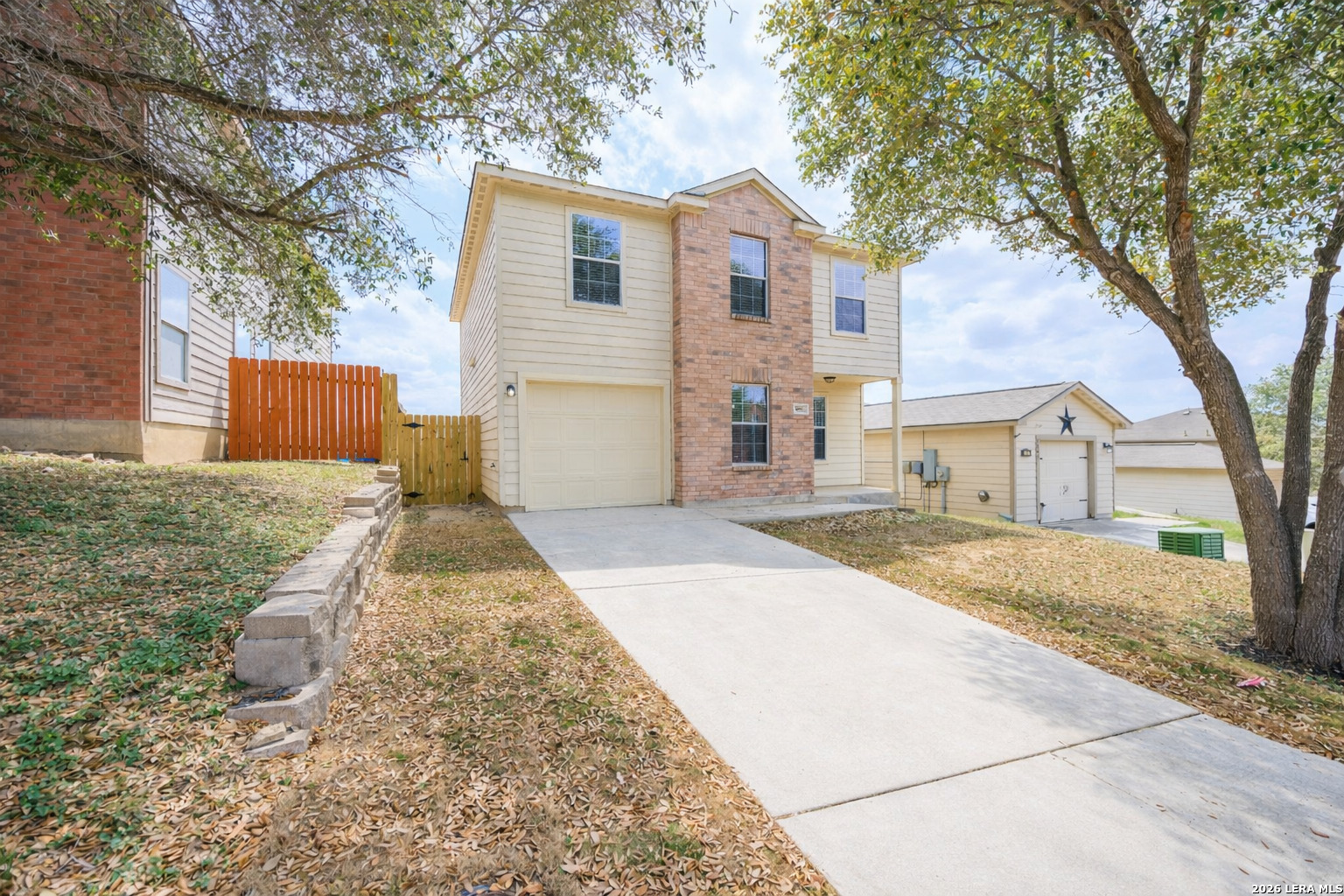 Welcome to 5851 Wildcat Canyon! A nice two-story home located in the Canyon Crossing community on the Far West side of San Antonio. Enjoy convenient access to US-90 and Loop 1604, with a short drive to Lackland Air Force Base, shopping, and dining. This move-in ready home features 1,553 sq ft of living space, offering 3 bedrooms, 2.5 bathrooms, and a one-car garage. The home has a great open layout with a comfortable living and dining combination that flows nicely into the kitchen, making it perfect for everyday living and entertaining. The kitchen offers plenty of cabinet and counter space, a breakfast bar, and an eat-in area. All bedrooms are located upstairs, along with the convenient upstairs laundry area. The primary suite includes a full bath with a separate tub and shower. Additional features include ceramic tile and carpet flooring, ceiling fans, solid countertops, and a private fenced backyard with a storage shed. The lot is low-maintenance and located on a quiet street within the neighborhood. This home is vacant and ready for a new owner. A great opportunity for a first-time buyer or investment property. Schedule your showing today.