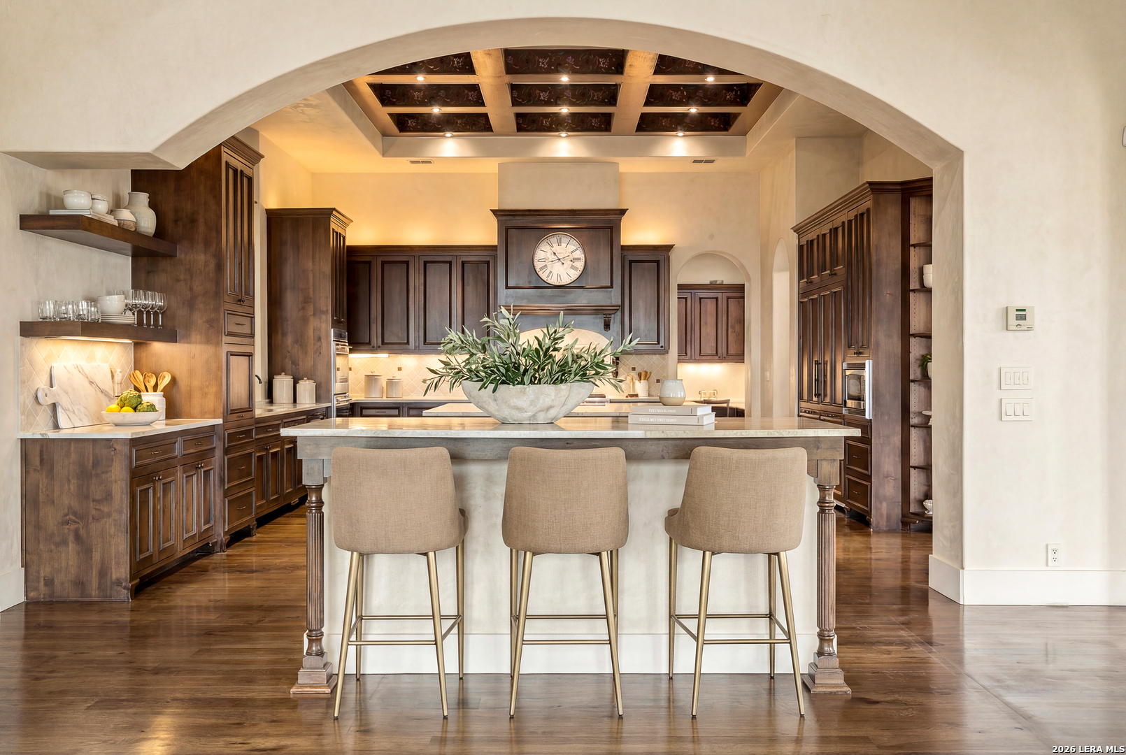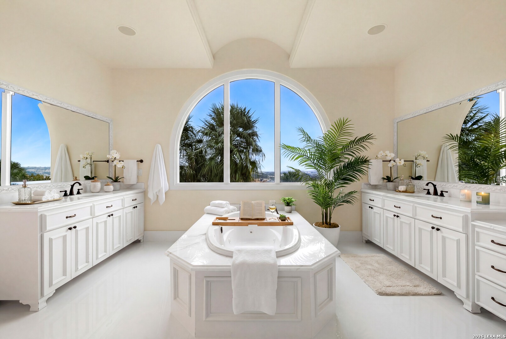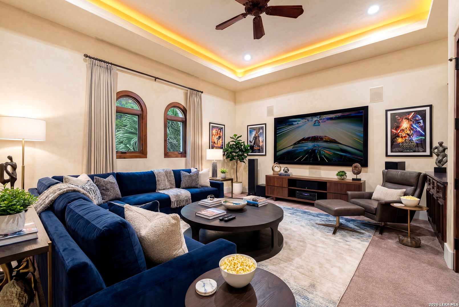 A magnificent California-styled Mansion is privately situated behind gates and sits up high on a 1.5 acre hilltop. This extraordinary estate commands sweeping views of the San Antonio skyline and the rolling Texas hill country. Located in The Dominion, one of the most sought-after and prestigious guarded neighborhoods, this residence represents the pinnacle of luxury living. Enjoy basking on the expansive patios overlooking a stunning Zars-designed infinity-edge pool and spa, where evenings are illuminated by nightly fireworks and the twinkling lights of the entire San Antonio skyline. Designed for memorable gatherings, this classic estate invites friends and family to experience effortless indoor-outdoor living. Enter the private gates and drive up the gently curving hill to a welcoming front door, where complete privacy surrounds you. The meticulously, curated grounds feature elaborate retaining walls and museum quality landscaping creating a setting of rare beauty and serenity. Custom built with top tier finishes including Venetian plaster walls, gleaming rich wood floors and TWO Primary Suites, this exceptional estate has been owned by only two discerning owners. For those seeking a timeless acquisition, this residence represents an extraordinary opportunity in today's market place and within this price range. An incredible offering not to be missed! Schedule your private showing today.