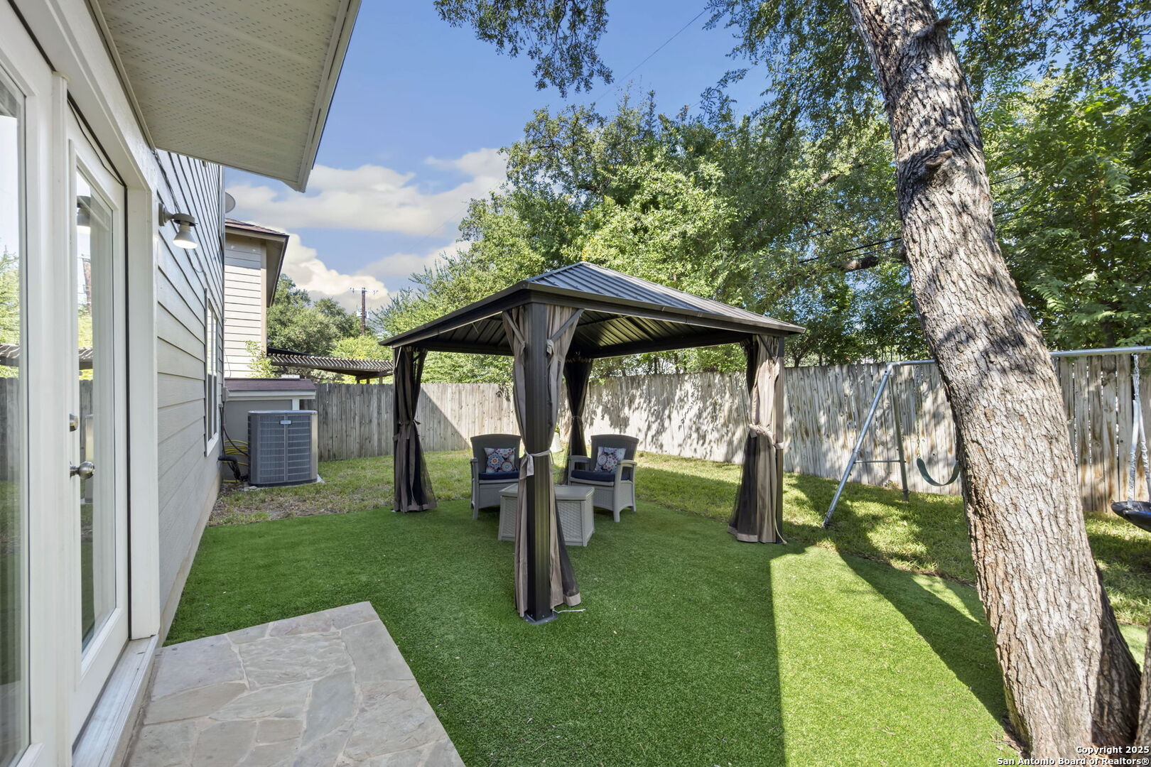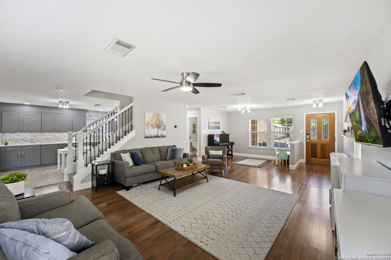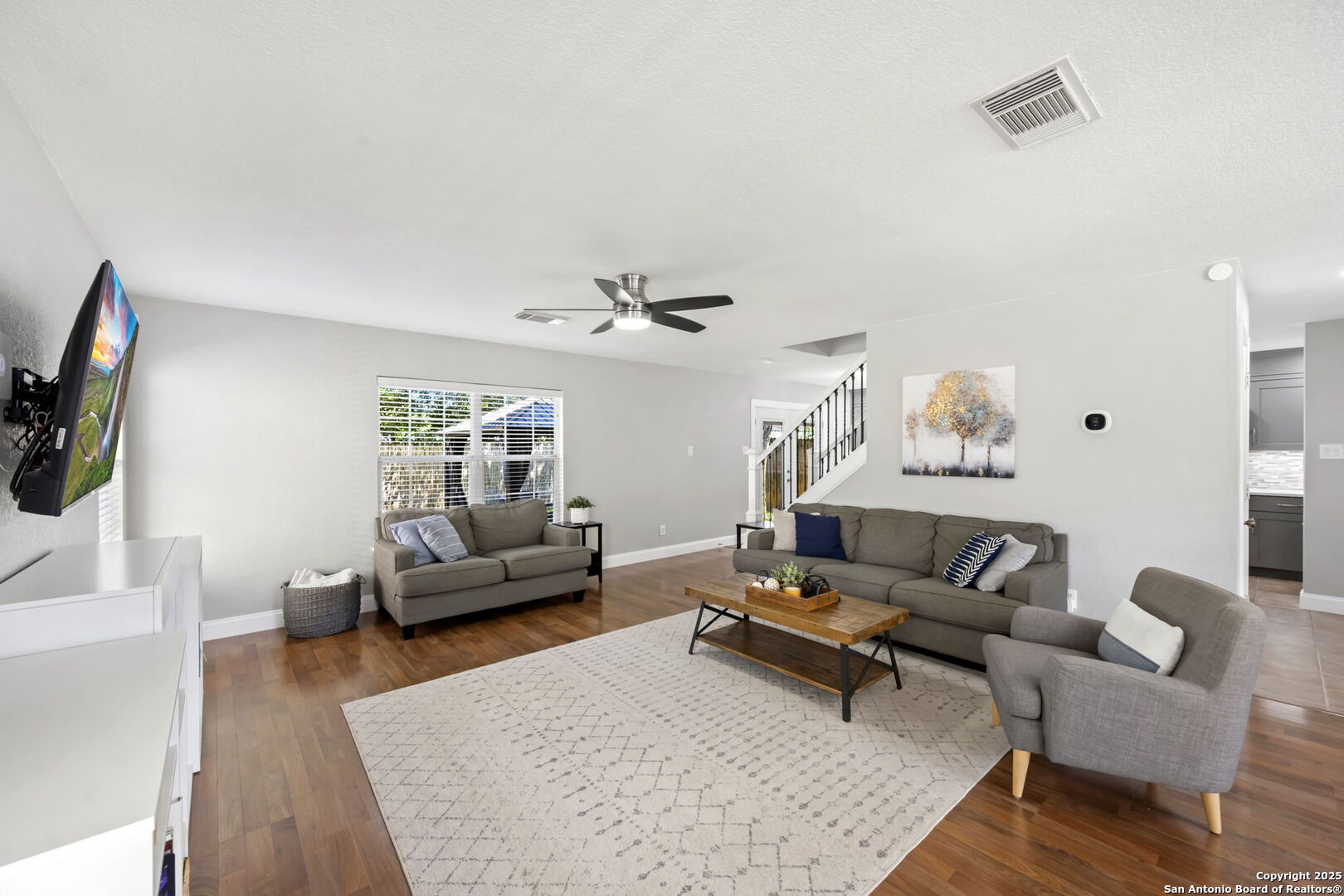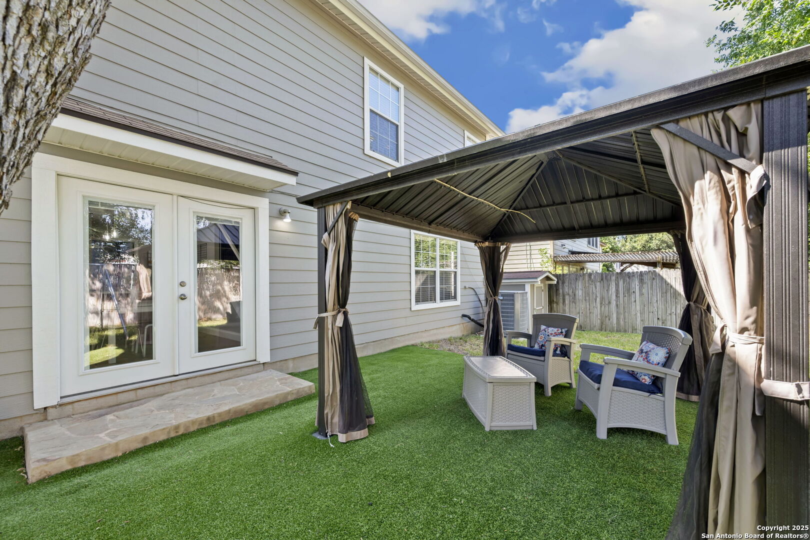 Step inside this beautifully remodeled two-story home where attention to detail shines in every corner. When you walk in, you're greeted by bright natural light, laminate flooring, and a generously sized living room that sets the tone for the rest of the home. The staircase features elegant wrought iron railings paired with plush carpet, creating a warm and inviting focal point. The kitchen is a chef's dream with upgraded cabinet doors and under cabinet lightening, sleek quartz countertops, pull out trash cans, plenty of storage, walk in pantry, and double ovens - a true reflection of the seller's perfectionist touch. Upstairs, the spacious primary suite offers a spa-like retreat with a gorgeous walk-in shower and a stylish upgraded vanity. Outside, the backyard is a serene haven with mature trees, abundant shade, no back neighbors creating plenty of privacy, and artificial turf for a lush, green look year-round - no mud, no mess, just pure enjoyment! Enjoy being in this neighborhood which has direct access to the trails of McAllister Park and a short distance to the playground! Major updates include HVAC (2019), water heater (2018), roof (June 2018), and a water softener installed in 2018 with Reverse Osmosis, giving you peace of mind for years to come.