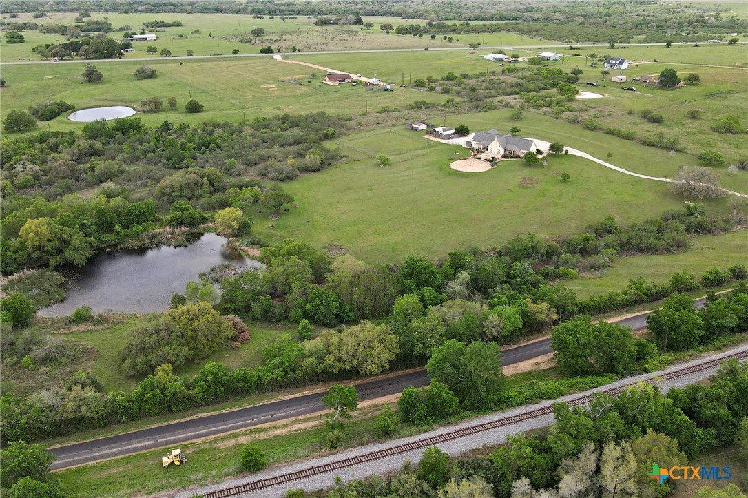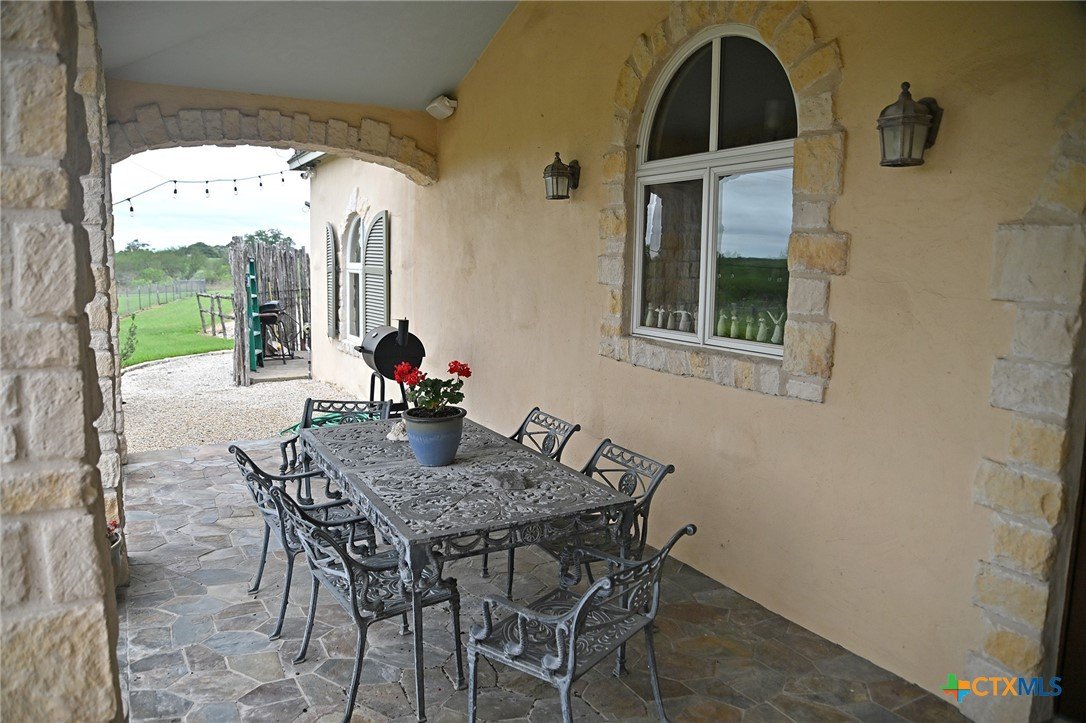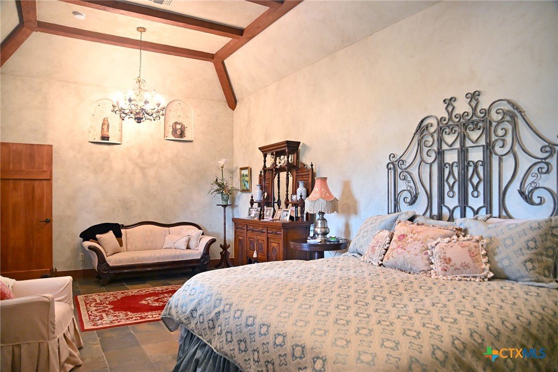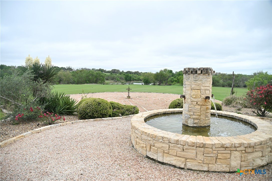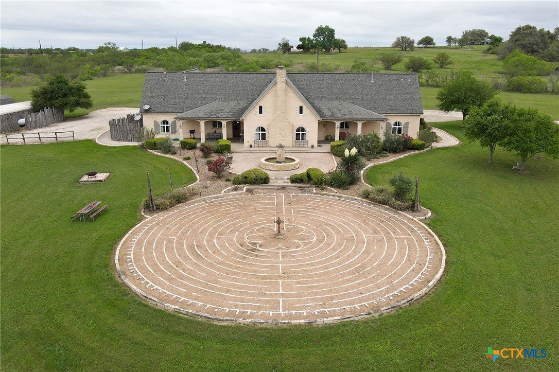 Aptly named "Mas de L'ange" (House of the Angels), this custom-built County French home was inspired by a house of the same name near Arles in the Provence region of France. Magnificently situated on the property's highest point, it overlooks green meadows, a meditative labyrinth, two ponds, and acreage maintained as a wildlife habitat. The curving road and circular driveway lead visitors to the impressive cypress front door through which one enters the great room with its massive wooden beams supporting the cathedral ceiling, a floor-to-ceiling limestone fireplace, slate floors, hand-plastered walls and a gorgeous wrought-iron chandelier. The heart of the home, the kitchen--with professional-grade appliances, knotty alder cabinets, breakfast bar, built-in buffet and walk-in pantry--opens to the great room, an herb garden in the front and a covered patio in the rear. The master suite, also with beamed and vaulted ceilings, has a generous sitting area, a walk-in closet and an en suite bath with a double vanity, jetted tub and separate shower. The guest suite features large closets, an en suite bath, and lovely views of the property. The third downstairs bedroom suite currently features a daybed for overflow sleeping and serves as an office. A charming half bath displays a Moroccan tile wall-mounted sink and a hand-painted mural of lavender fields. The upstairs flex space may be a fourth bedroom, home office, home gym or hobby room. Outdoor entertaining is a dream with the covered back porch, the sitting area around the tower fountain, the labyrinth and the beautiful grassy areas. The two stocked ponds may be filled from one of the two wells on the property. Deer, wild turkey, hogs and native birds are abundant in their habitat at the rear of the property. Two storage buildings provide ample space for a workshop and art studio. An exterior shower affords easy cleanup after gardening. This property is truly unique and offers the very best in luxurious country living!