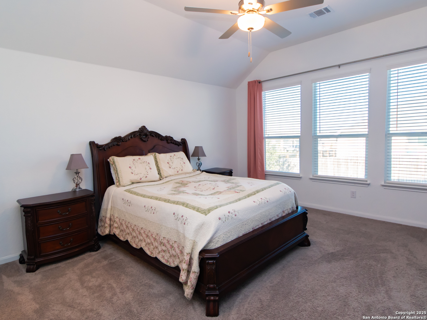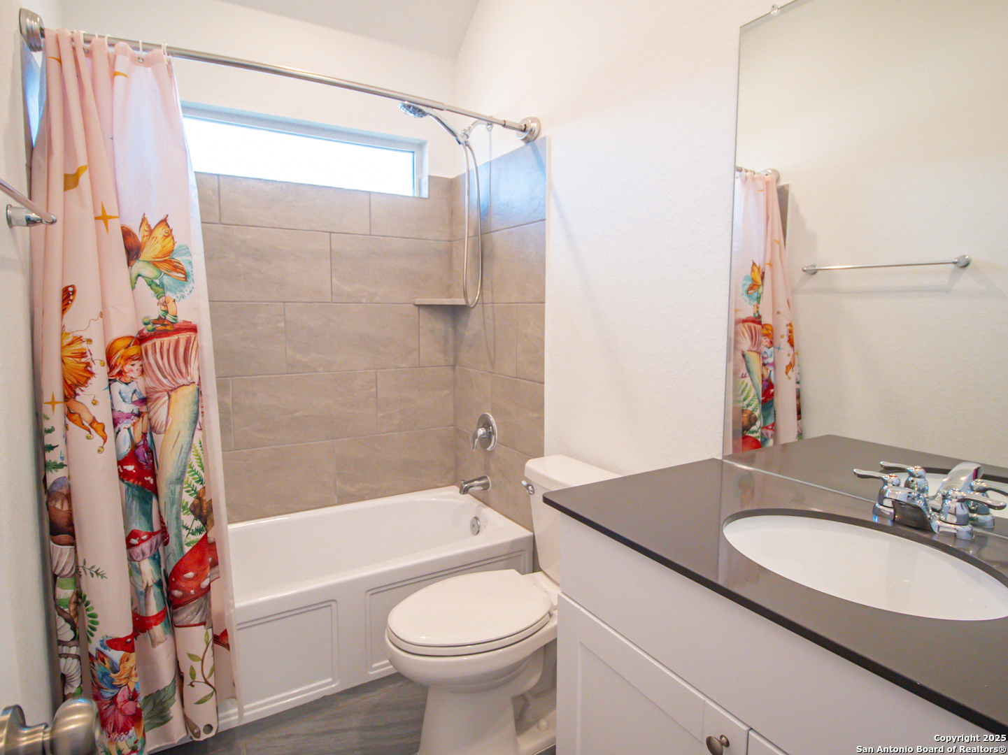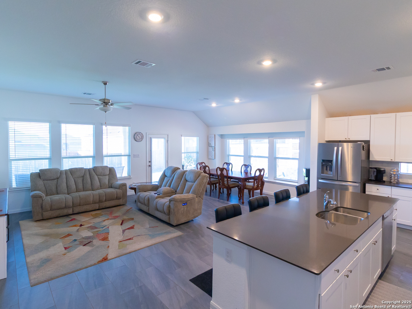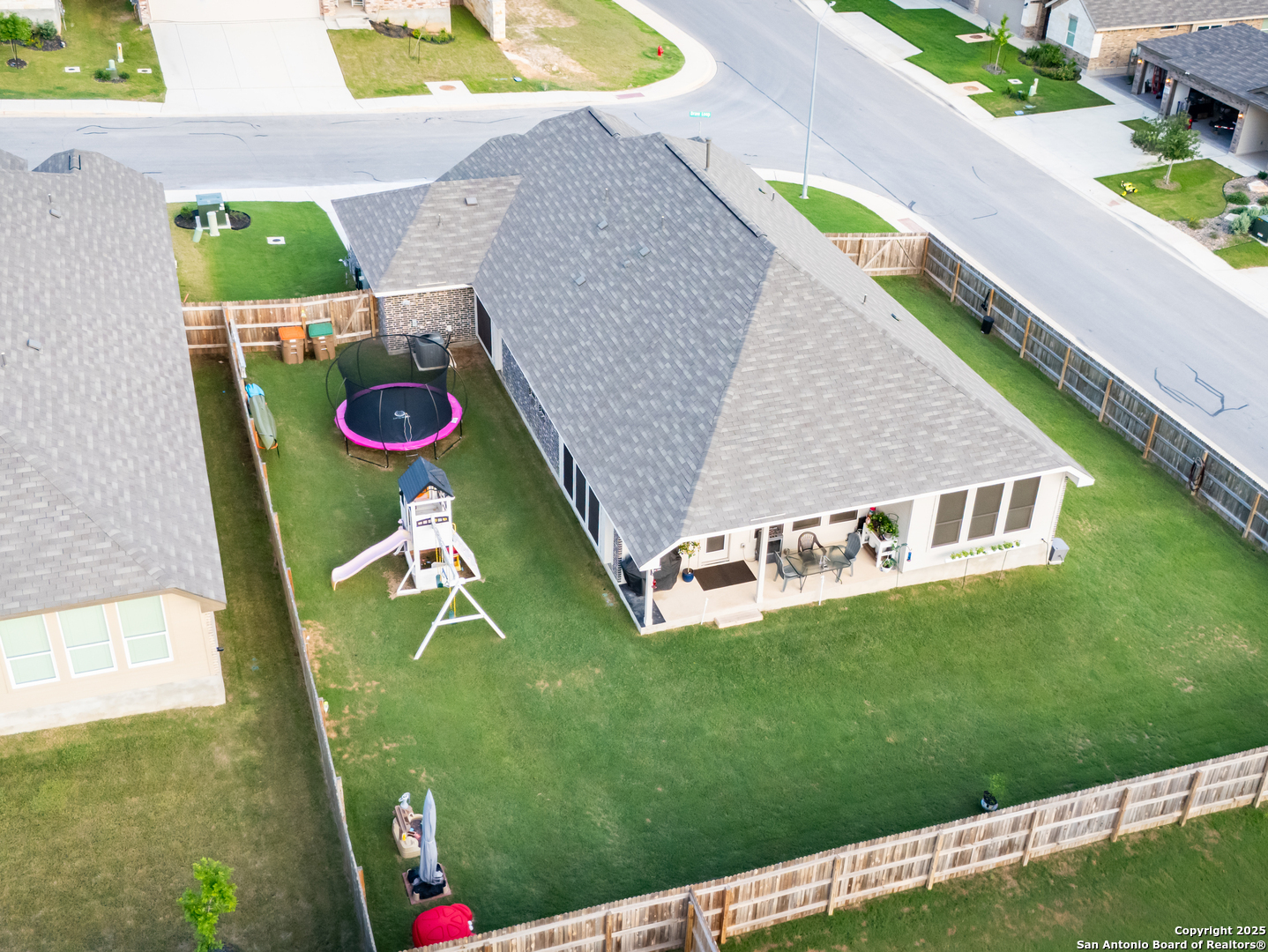 Welcome to this exceptional one-story home situated on a spacious quarter-acre corner lot in the highly desirable Hidden Trails community. Built in 2023, this 4-bedroom, 3-bath home offers the perfect blend of modern design, open-concept living, and everyday functionality. Step inside to soaring ceilings, elegant finishes, and a bright, inviting layout that makes you feel at home instantly. The heart of the home is the expansive island kitchen featuring gas cooking, stainless steel appliances, granite countertops, abundant cabinetry, and a breakfast bar that opens to the living and dining areas that are ideal for entertaining or relaxing with family. A private study provides a quiet space for remote work or reading, while three secondary bedrooms are thoughtfully positioned for comfort and privacy. The spacious primary suite offers a peaceful retreat with plenty of room for large furnishings, and includes an ensuite bath with a walk-in tiled shower, double vanity, and generous walk-in closet. Throughout the home, you'll find recently upgraded tile flooring that adds both style and durability, paired with fresh interior finishes that create a modern and inviting atmosphere. Additional highlights include a 3-car garage with extra driveway space, double-pane windows, ceiling fans, irrigation system, washer/dryer connections, pre-wiring for cable and internet and additional storage built into the attic space. Step outside to a covered patio and fully fenced backyard with room to add a pool, garden, or playscape-perfect for enjoying the outdoors. Residents of Hidden Trails enjoy top-tier amenities including resort-style pools, scenic walking trails, a fitness center, sports courts, clubhouse, playgrounds, and community events. Conveniently located just off HWY 281 and HWY 46 with easy access to San Antonio, New Braunfels, Gruene, Canyon Lake, and more. This is the one you've been waiting for! Schedule your private showing today!