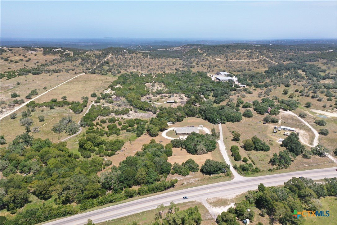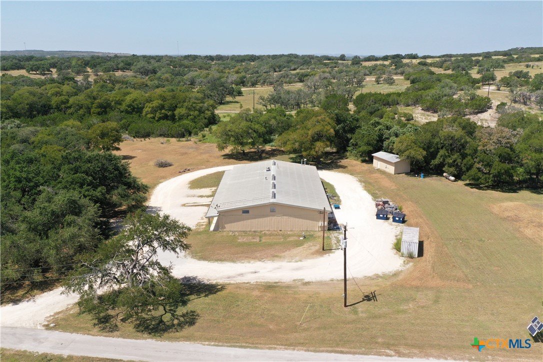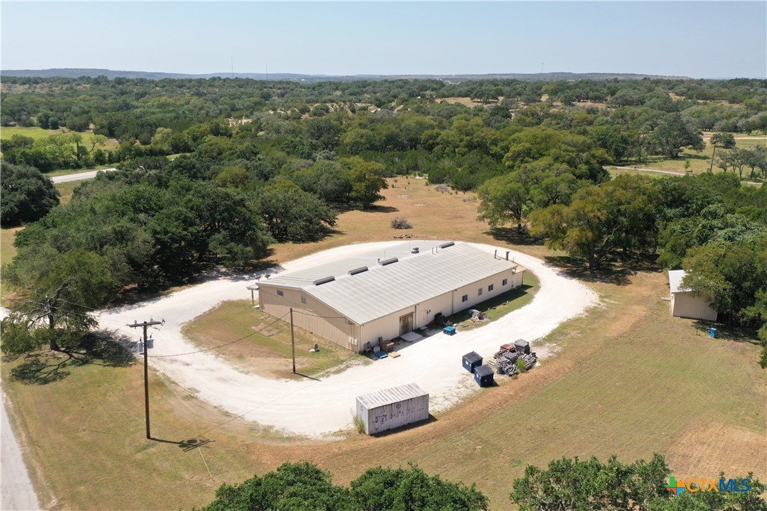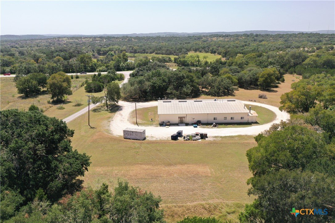 Ten acres with approximately 629 feet of Highway 290W frontage. Majestic oaks provide ideal setting for memorable events. 6060+ sq ft steel frame bldg clad in cedar siding. On site well cased to 417 ft. with high volume commercial grade water system (2.5 GPM) and Reverse Osmosis system. Ideal site to be redeveloped for industrial office/warehouse, storage units, event venue, etc. Front 2250 sq ft of the building is climate controlled offices (HVAC replaced 2021). Remainder is warehouse & former kitchen. Three-phase electricity to the property.