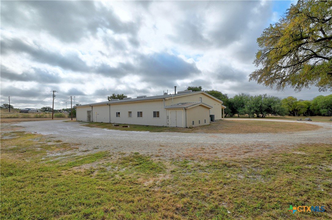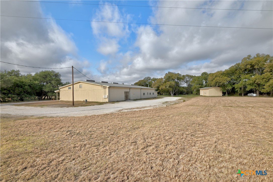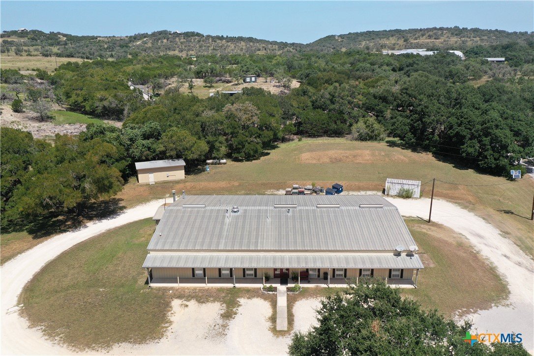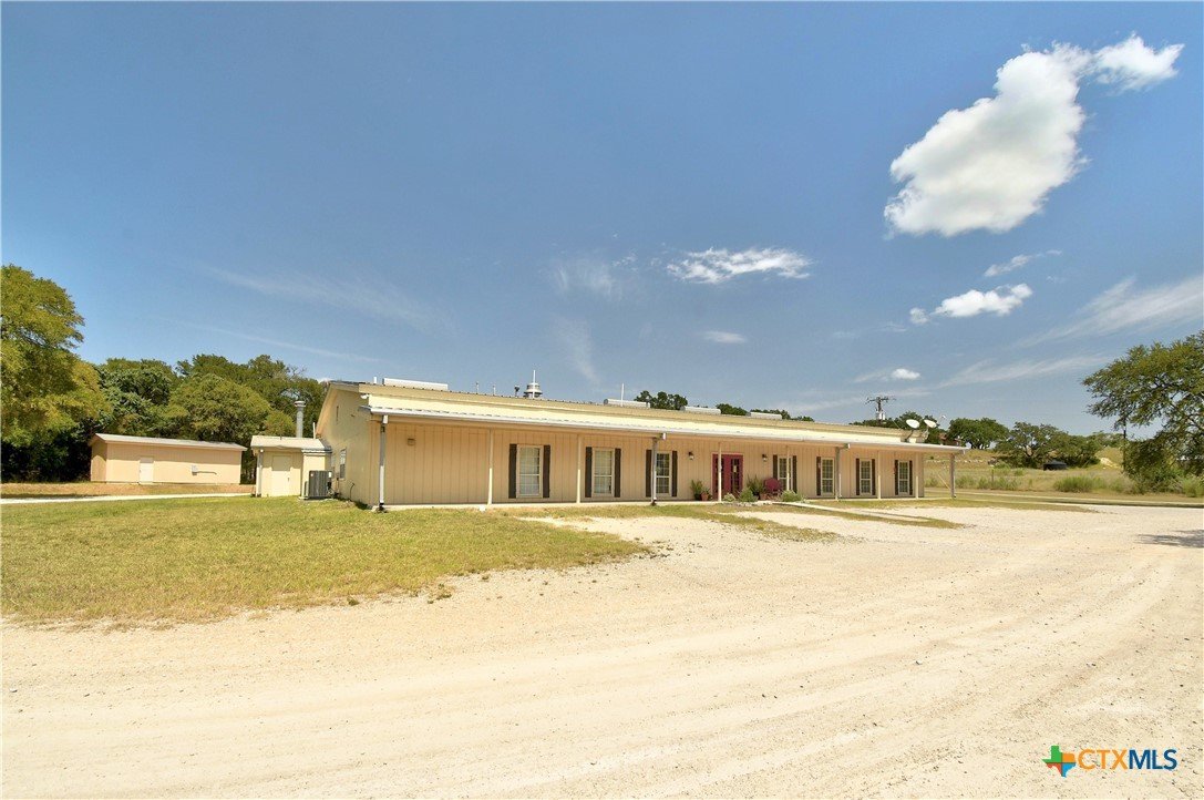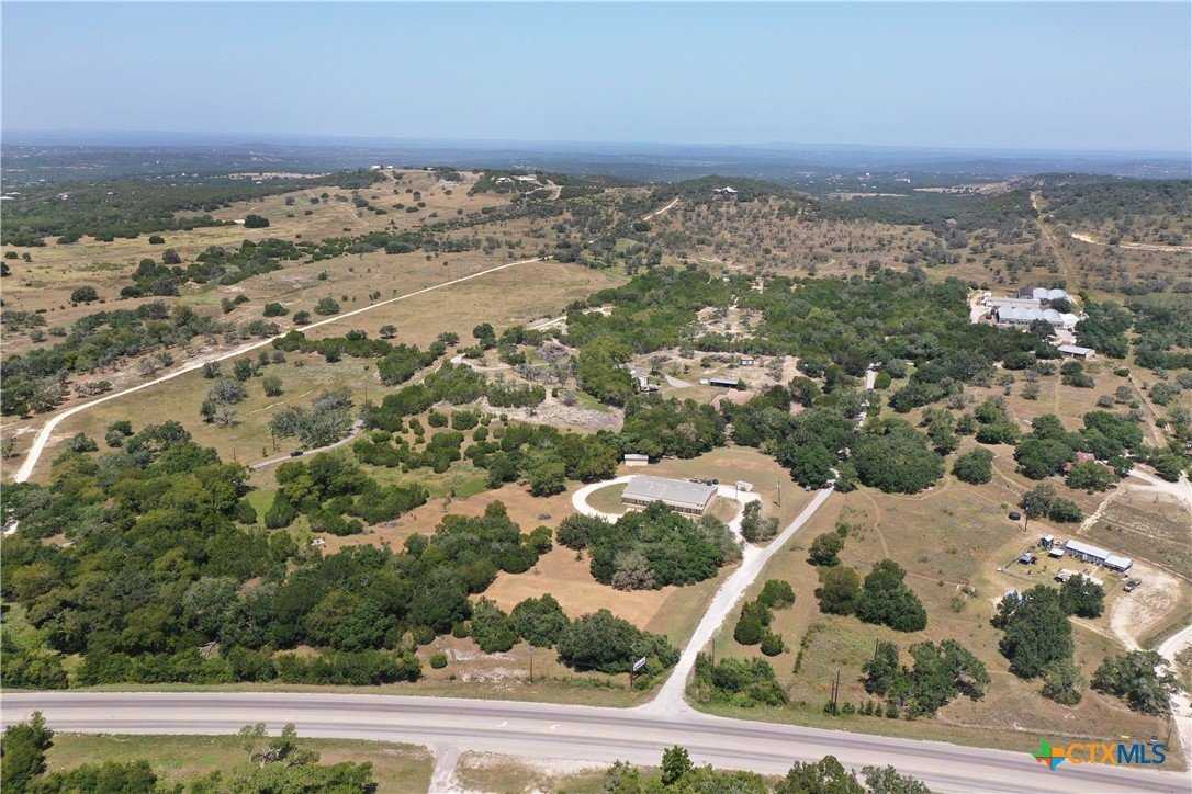 Ten acres with approximately 629 feet of Highway 290W frontage. Majestic oaks provide ideal setting for memorable events. 6060+ sq ft steel frame bldg clad in cedar siding. On site well cased to 417 ft. with high volume commercial grade water system (2.5 GPM) and Reverse Osmosis system. Ideal site to be redeveloped for industrial office/warehouse, storage units, event venue, etc. Front 2250 sq ft of the building is climate controlled offices (HVAC replaced 2021). Remainder is warehouse & former kitchen. Three-phase electricity to the property.