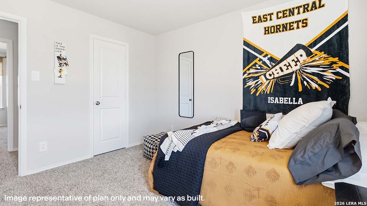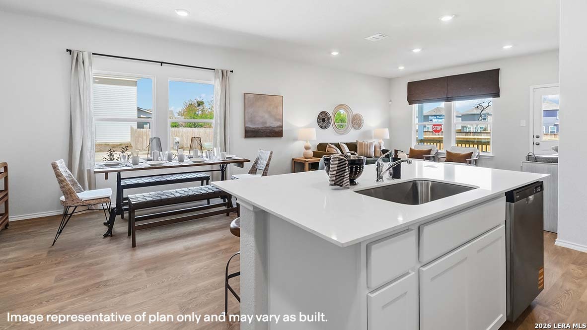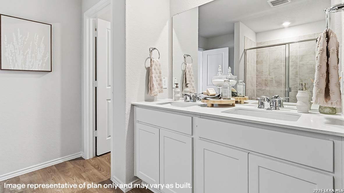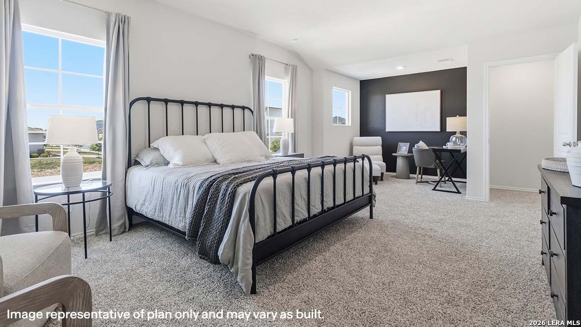 Introducing The Madison, a two-story home featured in Blue Ridge Ranch in San Antonio, TX. This floor plan offers 2 classic exteriors, 2-car garage, and a full yard landscaping and irrigation package, ensuring that your home looks its best every single day. Inside this 5 bedroom, 3 bathroom home, you'll find 2489 square feet of open-concept living. A long entryway leads to a blended dining area, gourmet kitchen, and living room, perfect for entertaining and every day living. Your kitchen includes quartz counter tops, stainless steel appliances, shaker style cabinetry, and a grand kitchen island, complete with a roomy single basin sink and quartz breakfast bar. The corner pantry is spacious and includes plenty of built-in shelving. With a secondary bedroom and full bath located off the living room, this home offers private space for out-of-town guests. Head up the wide staircase to find a versatile loft, the private main bedroom suite, three secluded secondary bedrooms with carpet flooring, large windows and closets and a third full bath. The private main bedroom is an oasis, featuring a cozy sitting area and attractive ensuite bathroom. Enjoy quality quartz vanity tops, a tiled walk-in shower, a separate water closet, and a walk-in closet with plenty of space to get ready in the morning. Additional features include sheet vinyl flooring in entry, living room, and all wet areas, quartz bathroom counter tops, and our HOME IS CONNECTED base package. Using one central hub that talks to all the devices in your home, you can control the lights, thermostat and locks, all from your cellular device.