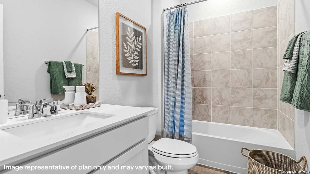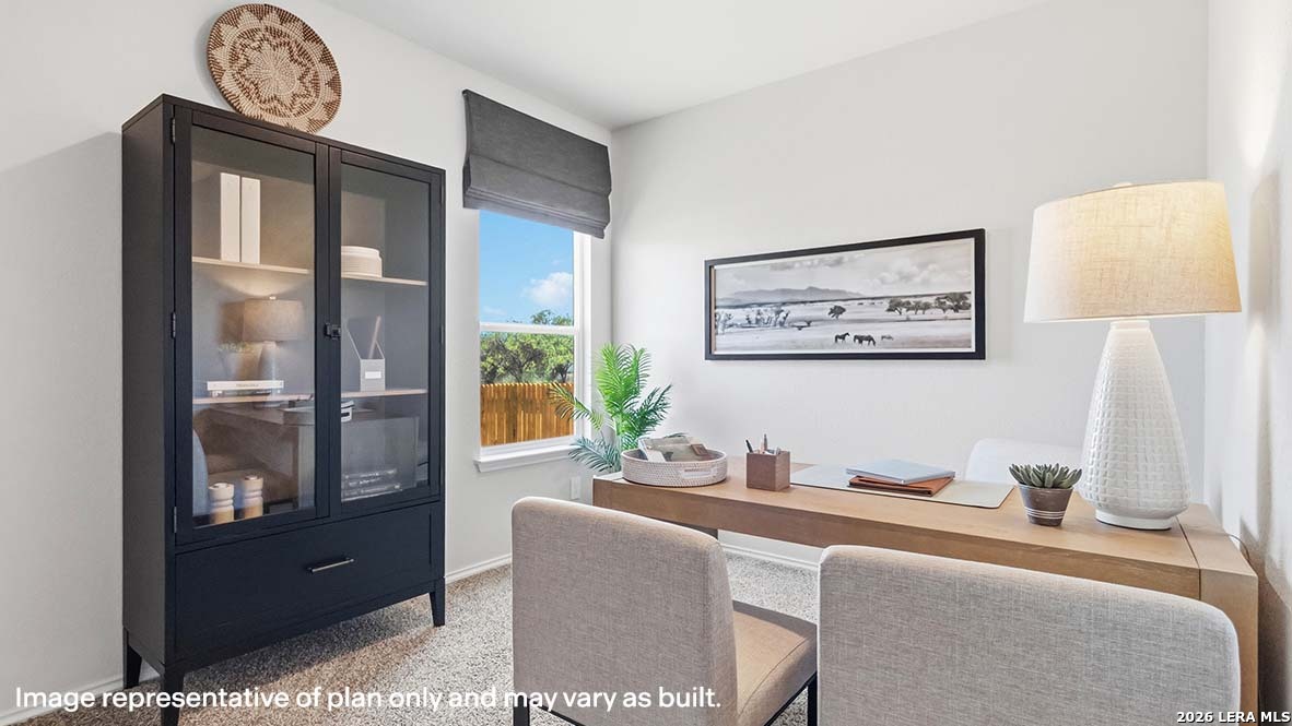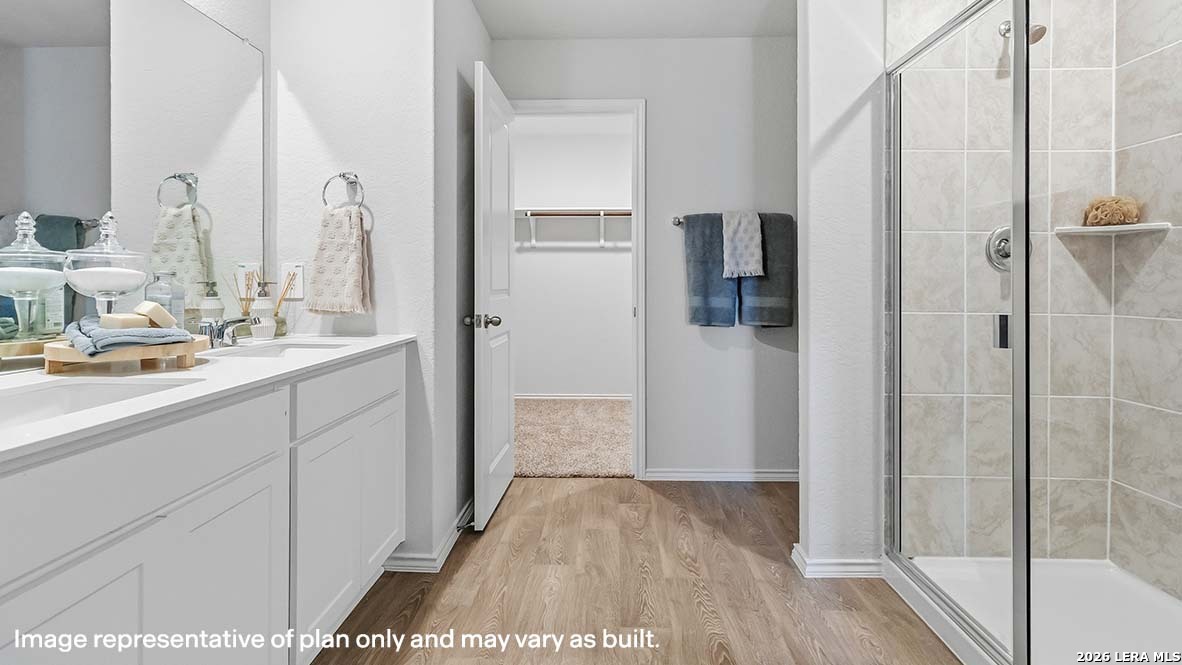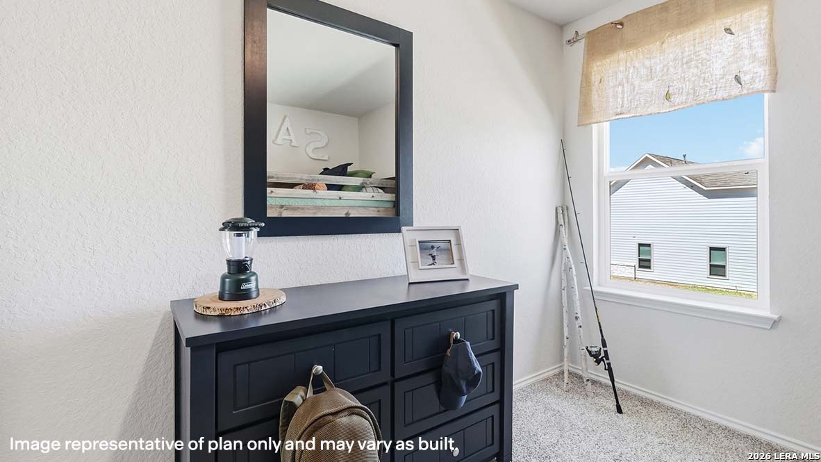 Introducing The Madison, a two-story home featured in Blue Ridge Ranch in San Antonio, TX. This floor plan offers 2 classic exteriors, 2-car garage, and a full yard landscaping and irrigation package, ensuring that your home looks its best every single day. Inside this 5 bedroom, 3 bathroom home, you'll find 2489 square feet of open-concept living. A long entryway leads to a blended dining area, gourmet kitchen, and living room, perfect for entertaining and every day living. Your kitchen includes quartz counter tops, stainless steel appliances, shaker style cabinetry, and a grand kitchen island, complete with a roomy single basin sink and quartz breakfast bar. The corner pantry is spacious and includes plenty of built-in shelving. With a secondary bedroom and full bath located off the living room, this home offers private space for out-of-town guests. Head up the wide staircase to find a versatile loft, the private main bedroom suite, three secluded secondary bedrooms with carpet flooring, large windows and closets and a third full bath. The private main bedroom is an oasis, featuring a cozy sitting area and attractive ensuite bathroom. Enjoy quality quartz vanity tops, a tiled walk-in shower, a separate water closet, and a walk-in closet with plenty of space to get ready in the morning. Additional features include sheet vinyl flooring in entry, living room, and all wet areas, quartz bathroom counter tops, and our HOME IS CONNECTED base package. Using one central hub that talks to all the devices in your home, you can control the lights, thermostat and locks, all from your cellular device.