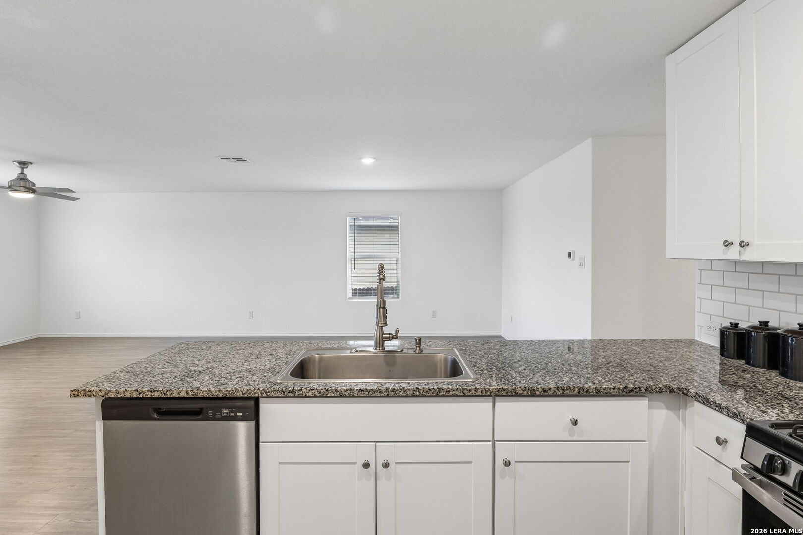 Enjoy breathtaking Hill Country views from this 4bedroom singlestory home designed for comfort and style. The living room features a large picture window, perfectly framing the beautiful skies and rolling landscape beyond. A living and dining room combination creates a welcoming space for everyday living and entertaining. The kitchen offers granite countertops, abundant cabinet and counter space, and flows seamlessly into the main living areas. The open floor plan is enhanced by clean white walls, a modern gray color palette, and durable vinyl plank flooring throughout. Step outside to a nicely sized backyard, ideal for relaxing, entertaining, or simply enjoying the peaceful Hill Country setting.