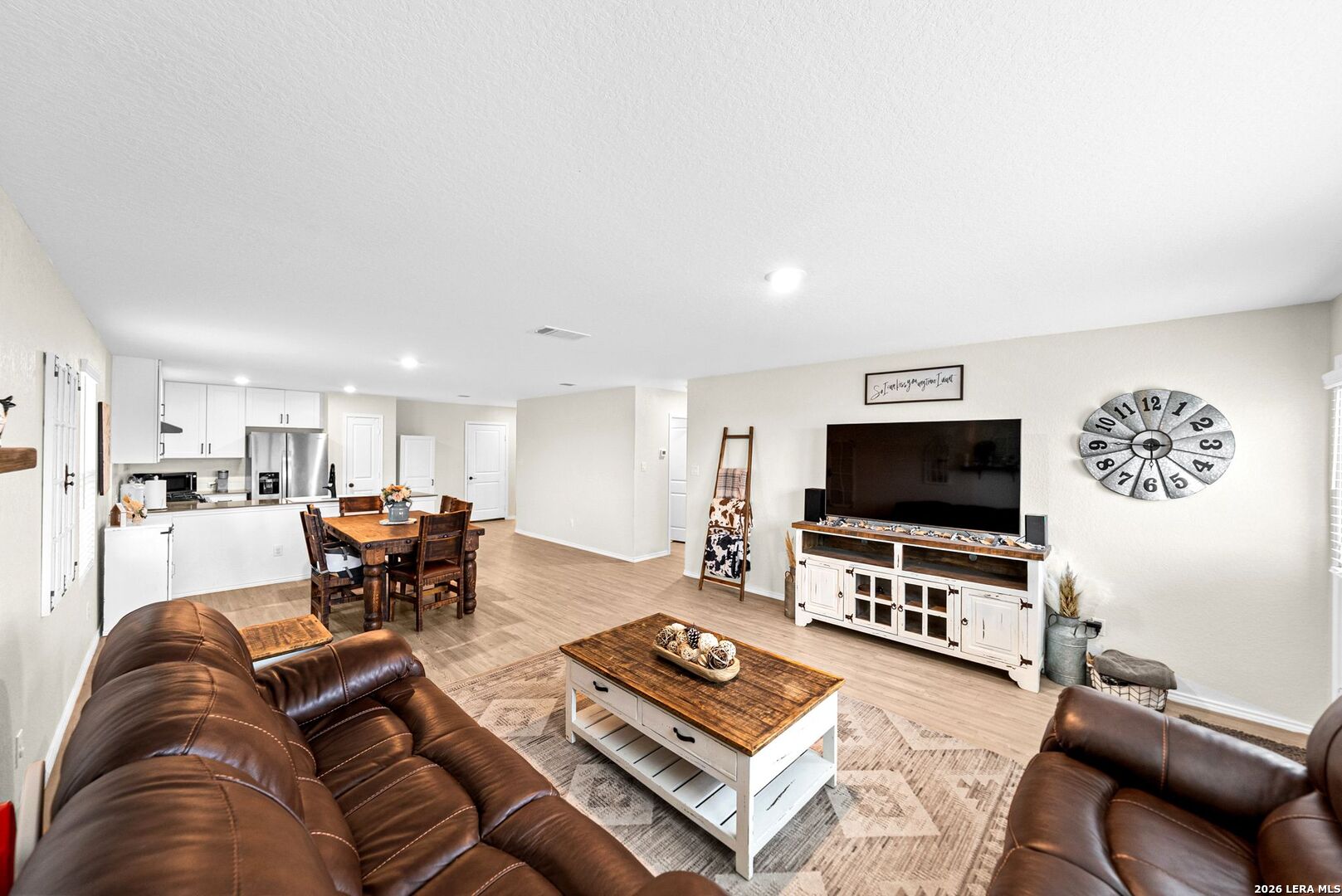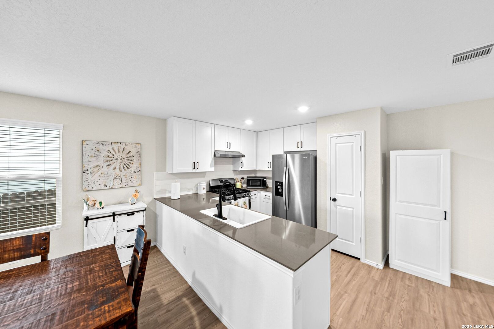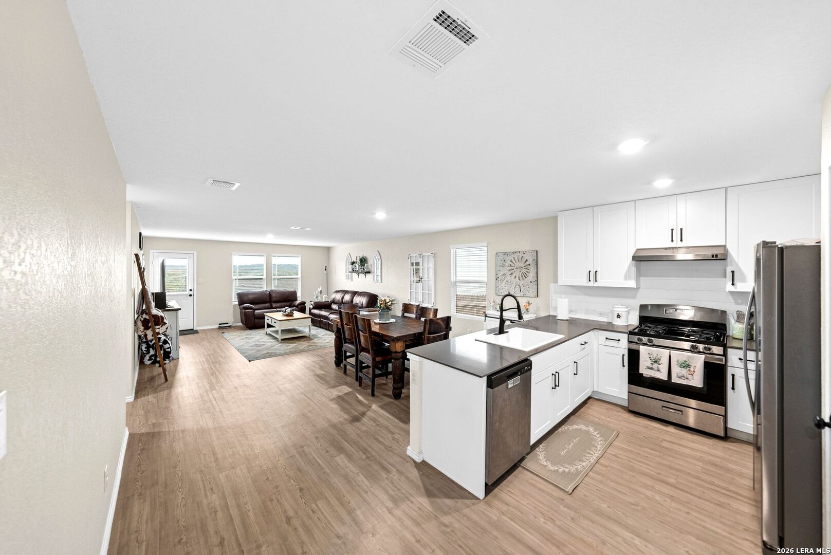 Welcome home to this great-value property located in a desirable resort-style community full of amenities-perfect for a first-time homebuyer or investor. A special lender incentive and seller assistance toward closing costs make this home an incredible opportunity with the right offer! This well-maintained single-story home shows true pride of ownership and is in excellent condition and offers a bright, open floorplan designed for comfortable everyday living and entertaining. The open layout seamlessly connects the family room, dining area, and kitchen, creating a warm and inviting space ideal for gatherings. The kitchen overlooks the living area and features quartz countertops, a garden sink with an upgraded faucet, stylish backsplash, upgraded cabinet hardware, and additional furniture added for pantry storage. The refrigerator will remain with the home, and the washer and dryer are negotiable. A dedicated laundry room adds everyday convenience. The primary bedroom is privately situated at the back of the property, offering added privacy along with a spacious walk-in closet and ensuite bathroom. Two secondary bedrooms are located at the front of the home and share a hall bathroom. One of these bedrooms can easily be dedicated as a home office, guest room, or flex space. Recent upgrades include a back deck, fire pit, full window screens and blinds throughout the home, updated door handles, upgraded bathroom fixtures, a garage door opener, and a whole-house water softener and filtration system. The entire interior has been freshly painted, giving the home a fresh, modern feel. The home is also equipped with connections for high-speed fiber internet. The backyard provides flexible outdoor space perfect for low-maintenance living and outdoor enjoyment. With thoughtful upgrades throughout and pride of ownership evident, this move-in-ready home offers excellent value and is a fantastic opportunity in today's market. COMMUNITY: Imagine living in a RESORT STYLE COMMUNITY where every day feels like a vacation! Experience modern living with amenities like a stunning infinity pool, a brand-new Junior Olympic-sized lap pool, and a splash pad for kids. Access a contemporary clubhouse, a well-equipped 24/7 gym, a fitness center, and enjoy yoga classes. Discover miles of scenic walking and biking trails and access to the dog-friendly Kleck Park. Challenge friends to basketball, host BBQs, or spend quality time with your children on multiple playgrounds, where one features an exhilarating zip line, while the other offers diverse play options! Join an engaging community center hosting live music, events, and food trucks. Relax by the catch-and-release fishing pond. Hidden Trails offers a vibrant lifestyle with endless possibilities! LOCATION: Hidden Trails subdivision provides convenience, located just off Highway 281, with a few minutes drive to nearby shopping at HEB and Walmart, as well as Starbucks, restaurants, and medical facilities. All your daily needs are within easy reach. The San Antonio Airport is a mere 30 minutes away. Additionally, the stunning Canyon Lake is just a short 20-minute drive.