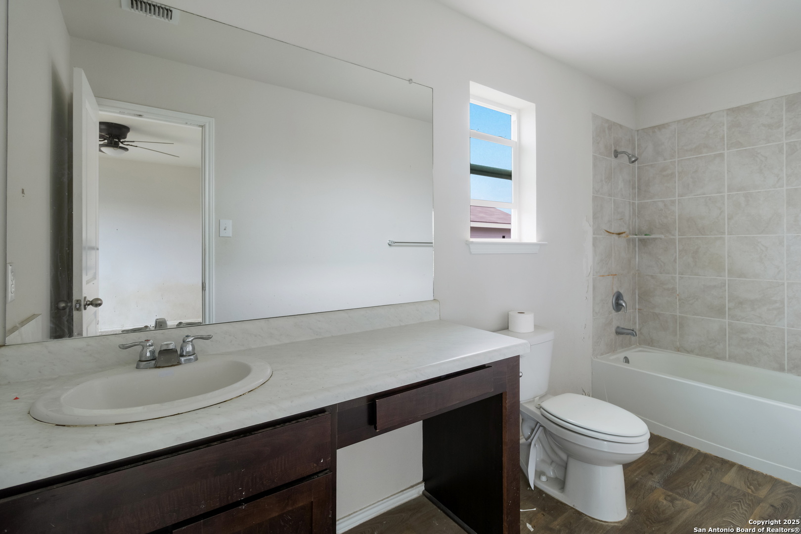 Welcome to this 3-bedroom, 2.5-bath home in a newer community just minutes from Randolph Air Force Base - a place where modern design meets opportunity. Inside, the open-concept layout creates an easy flow for everyday living and entertaining. Laminate flooring runs throughout the downstairs, leading to an island kitchen open to the living and dining areas, perfect for hosting friends or gathering after a long day. Recessed lighting, ceiling fans, and faux wood blinds add comfort and function throughout the home. Upstairs, the primary suite offers a private full bath and a spacious walk-in closet, while secondary bedrooms provide flexibility for guests, a home office, or creative space. A one-car garage adds convenience, and the privacy-fenced backyard is a blank canvas ready for your personal touch - from outdoor lounging to weekend projects. Built just four years ago and ideally located near shopping, dining, and major employers, this home is a diamond in the rough for buyers who see potential and value the chance to make a space their own.