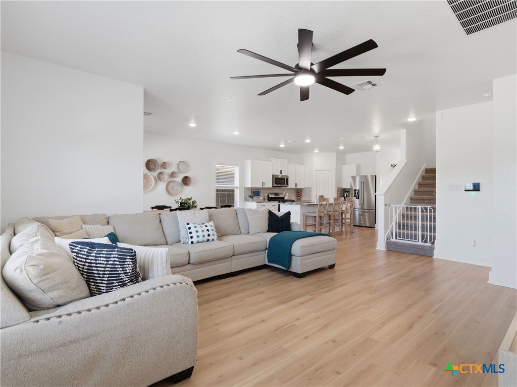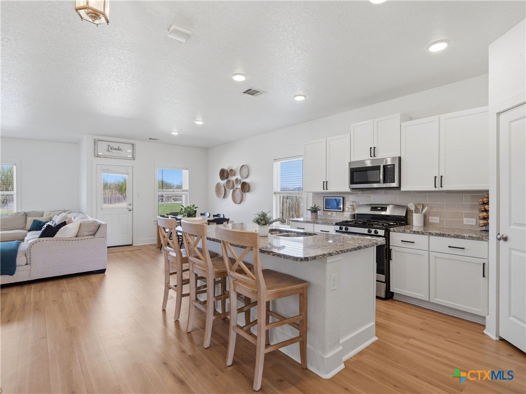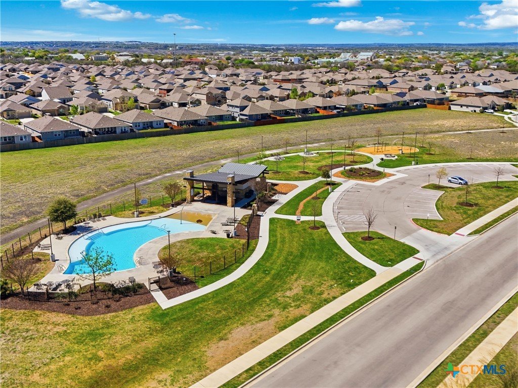 Yes, you read that right—over half an acre in the city. Set on a 0.57-acre cul-de-sac lot in Heather Glen, this 4-bedroom home with a dedicated office offers a rare combination of space, functionality, and convenience just minutes from New Braunfels amenities. Inside, the home features a bright, open layout with high ceilings, abundant natural light, and upgraded flooring throughout the main living areas. The kitchen is designed for both everyday use and gathering, offering granite countertops, gas cooking, a large center island with seating, and seamless flow into the dining and living spaces. The primary suite is located on the main level with a spacious layout, walk-in closet, and private bath featuring dual vanities and a walk-in shower. A dedicated office on the first floor provides flexibility for work or additional living needs. Upstairs, a second living area/game room and generously sized secondary bedrooms create separation and versatility. Outdoor space is where this property truly stands apart. The expansive backyard offers room to spread out, while the established raised garden beds and enclosed area provide a ready-to-use setup for gardening or hobby use. The large patio extends the living space and is ideal for relaxing or entertaining. Located in a community and near neighborhood amenities including a pool, park/playground, and walking trails, this property offers a unique opportunity for those seeking more space without sacrificing convenience.