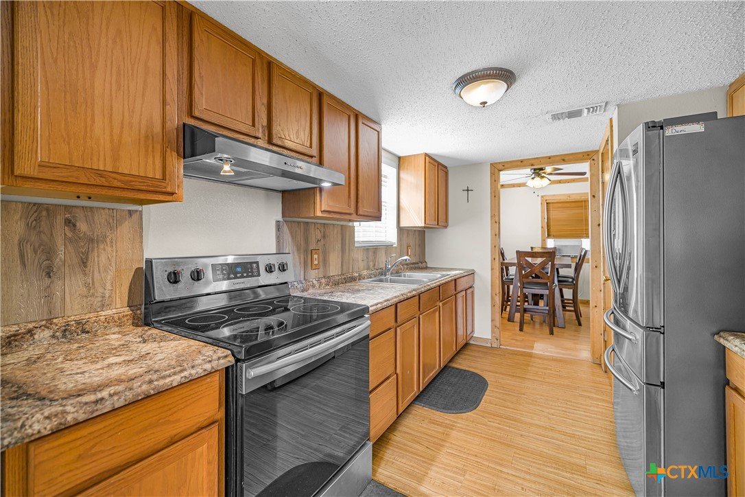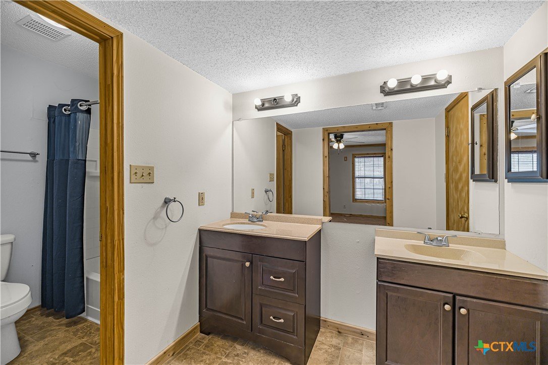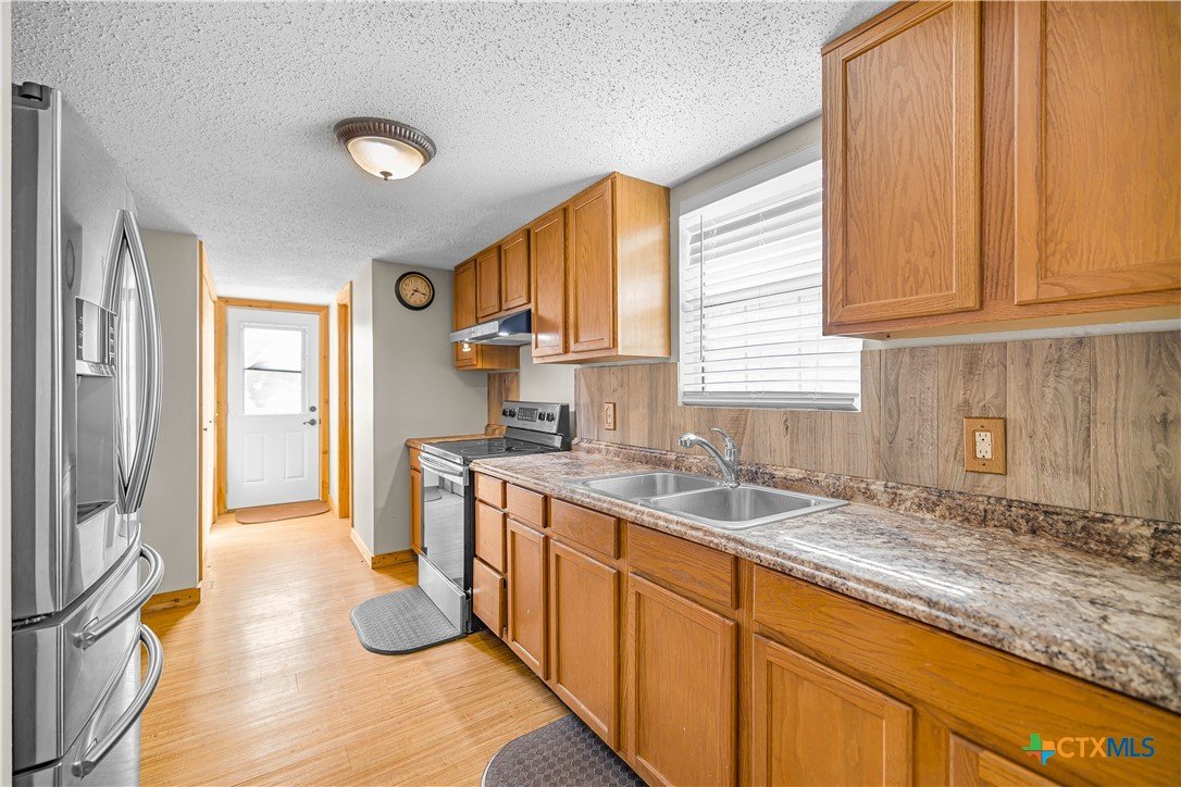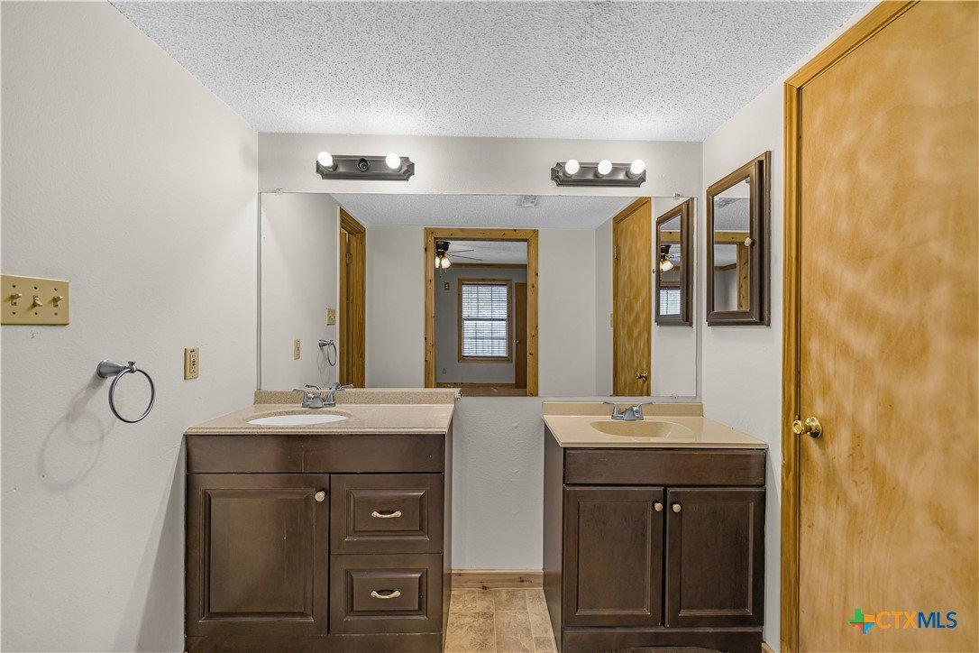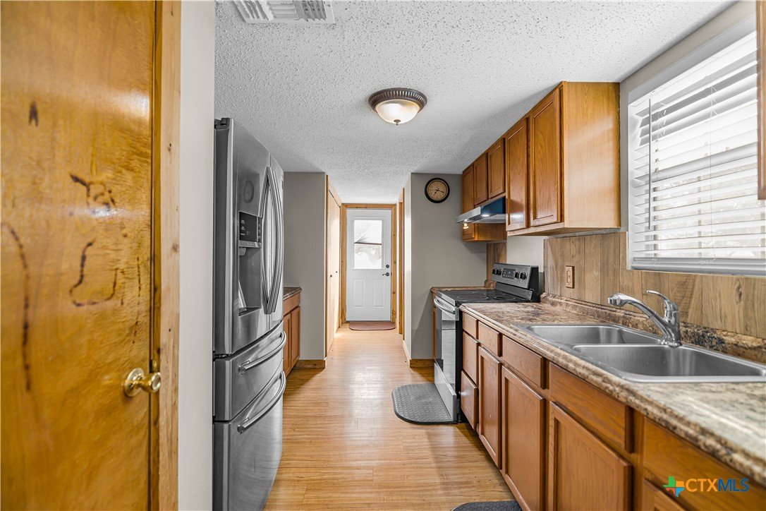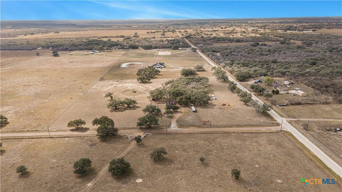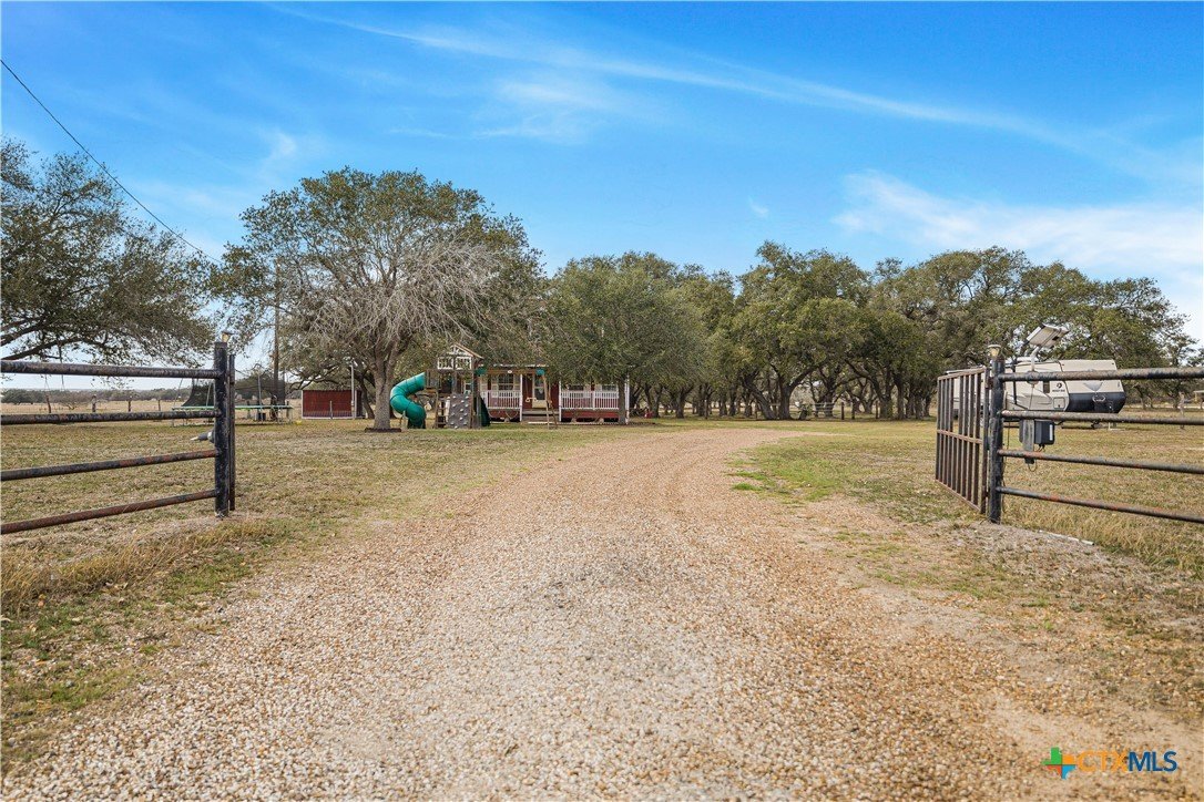 Discover your dream home nestled in the heart of Goliad, TX. This charming 3-bedroom, 2.5-bath residence is situated on an expansive 10-acres, just a stone's throw from town conveniences while providing a serene country lifestyle. Majestic shade oaks adorn this property, creating a picturesque backdrop for both relaxation and play. Step inside to find an inviting layout where the dining area gracefully opens to the living room, ideal for entertaining or cozy family gatherings. The galley kitchen has plenty of storage, utility room, and .5 bath. The primary downstairs has double vanity and walk-in closet. Upstairs you will find two other bedrooms and the second bath. Outside, enjoy moments with loved ones sipping cold drinks on your welcoming front porch as you take in sweeping views of your fenced estate. Ideal for hobby farming, 4-H projects, exploring new outdoor adventures, this home presents endless possibilities with two sides of the property with road frontage. Come check this home out before some else is sitting on your front porch.
