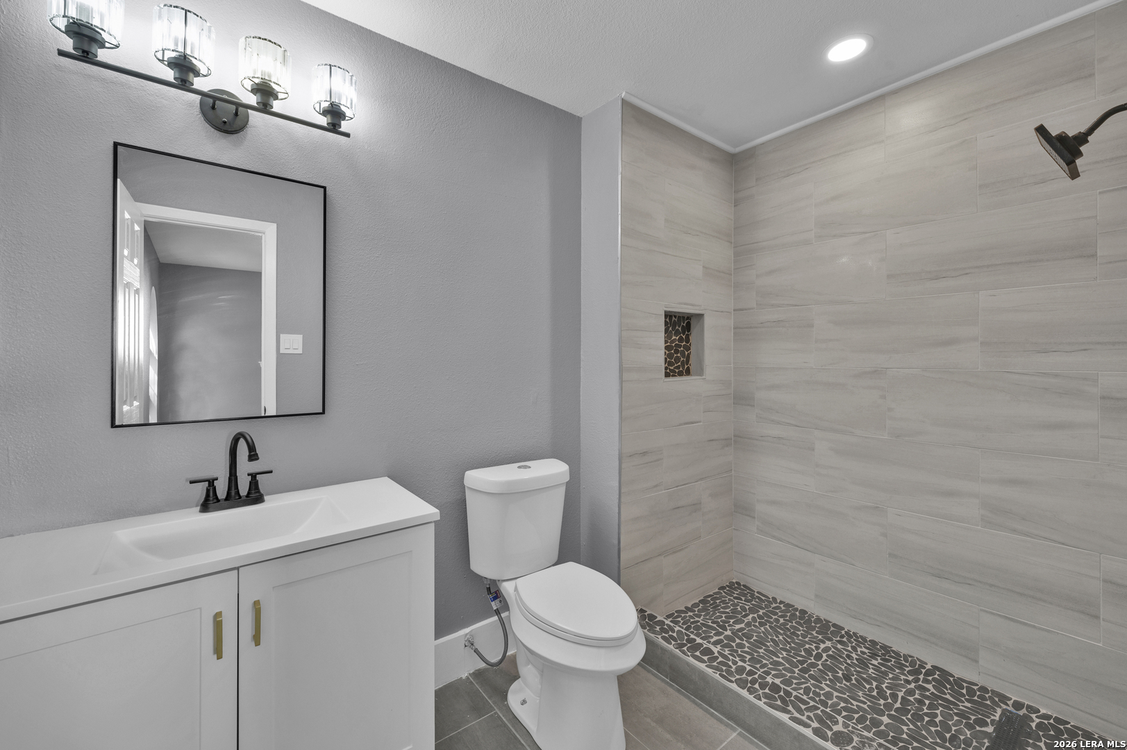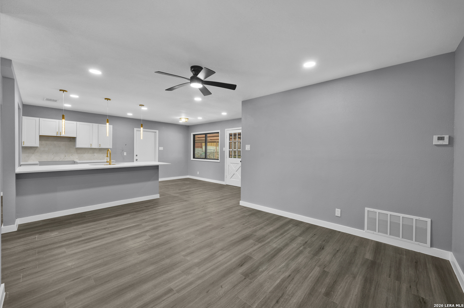 Your search is over, this is it. This beautifully updated four-bedroom, two-bath home has been renovated from top to bottom, including a new roof, flooring, cabinets, paint, countertops, and ceiling fans. Located in a charming neighborhood with mature trees in both the front and back, the home offers a warm and inviting setting. The open-concept layout is perfect for entertaining, while the spacious backyard features a covered patio ideal for gatherings and relaxation. Conveniently situated near major roads, this home provides easy access for commuting anywhere in San Antonio.