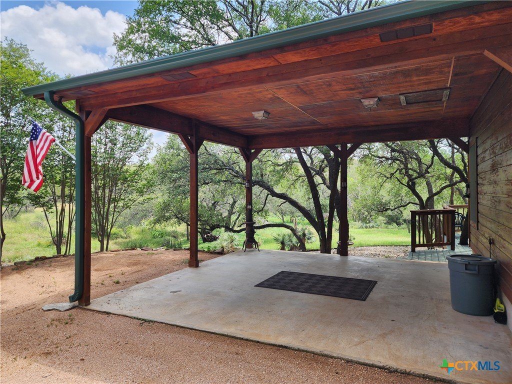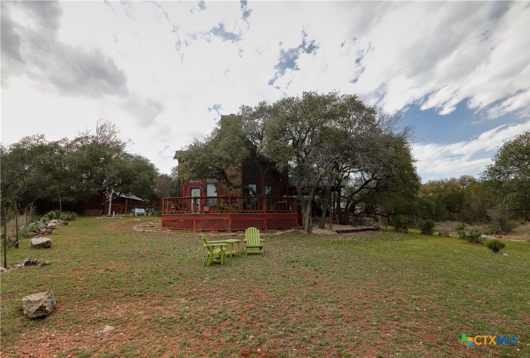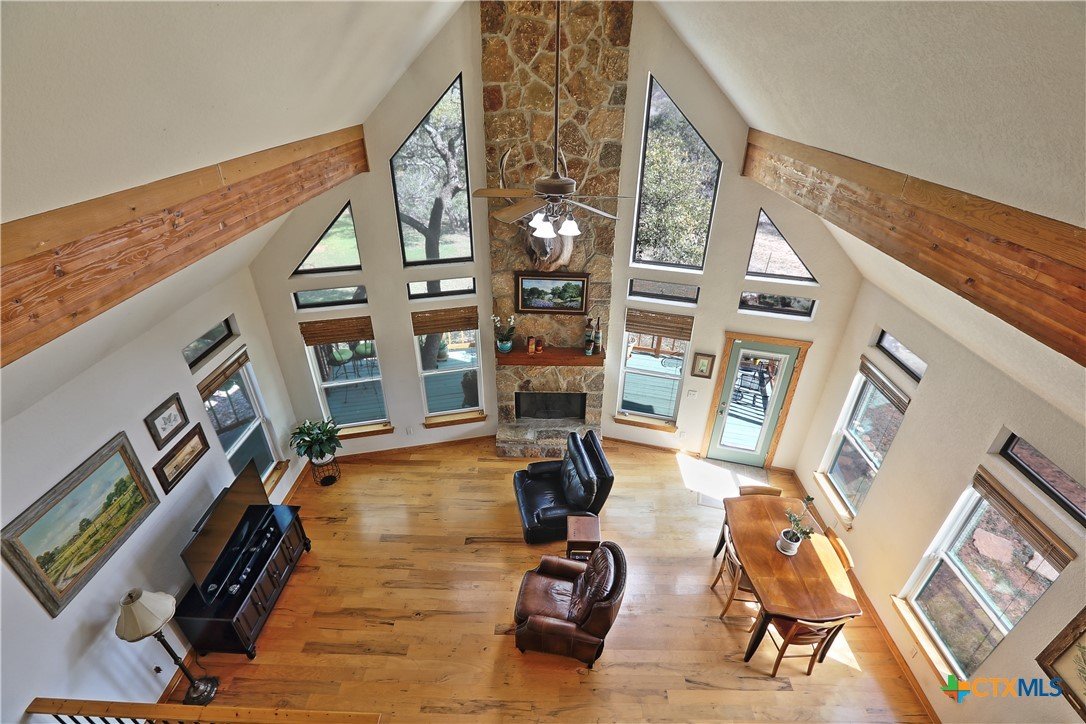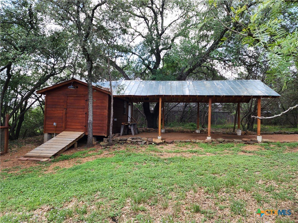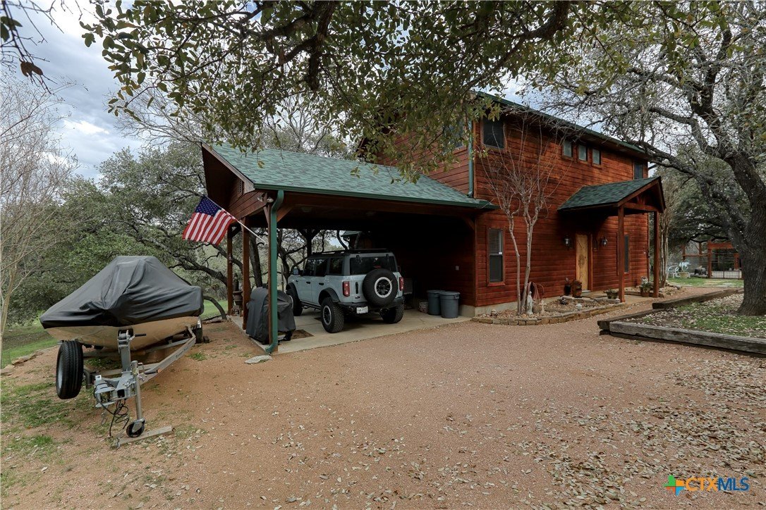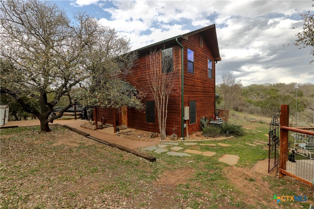Lake Travis is full & boat ramps are open. We have a private boat launch. What a getaway tucked into the back of the subdivision on 1.65 acres of pure tranquility. This charming 2-story home offers the peaceful lifestyle you've dreamed of. Surrounded by towering trees, it backs to a 165-acre privately owned ranch. Inside, the open-concept living, dining, & kitchen areas are warm & welcoming. Two bedrooms & a full bath are downstairs. Upstairs, a spacious primary suite awaits, complete with jetted tub, separate shower, & double vanity. The property includes everything needed for country living: a dog run, storage shed/shop, & covered parking for your lawnmower or ATV. When you’re ready to explore, enjoy the community amenities—swimming pool, boat ramp, fishing dock, & nearly a mile of lake shoreline. The view from the back porch stretches over the gulch & up Alligator Creek—a spot where countless arrowheads have been found. Once you're here, you won’t want to leave.