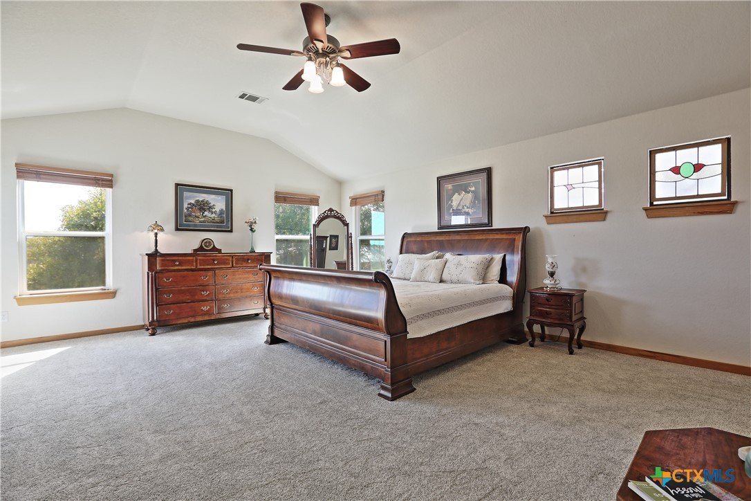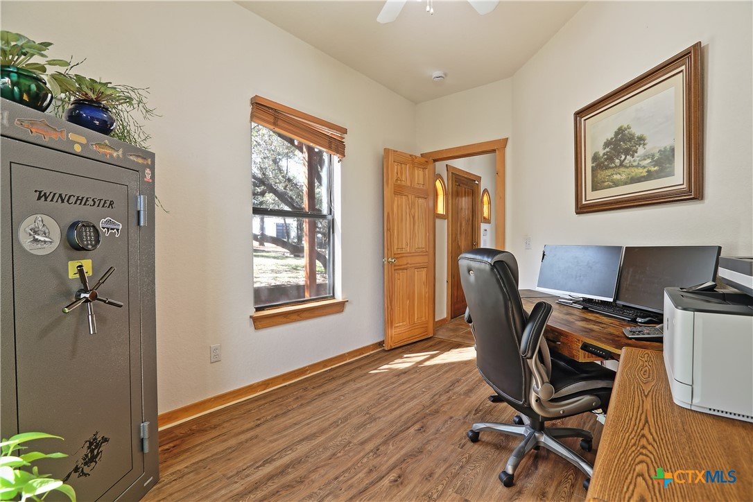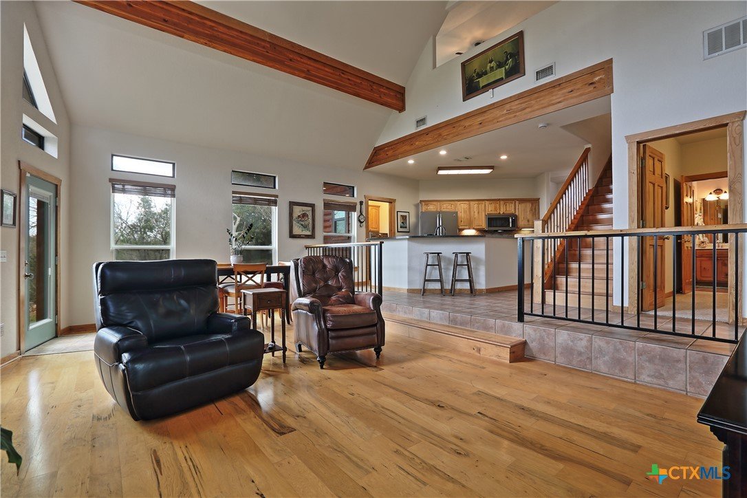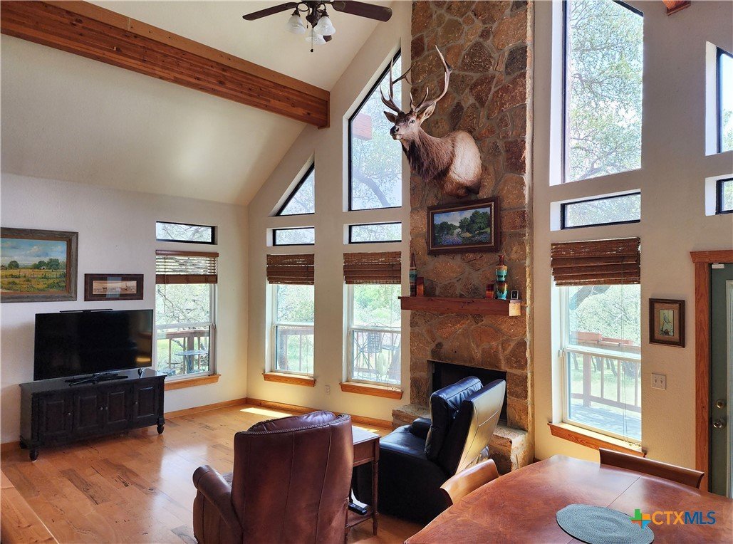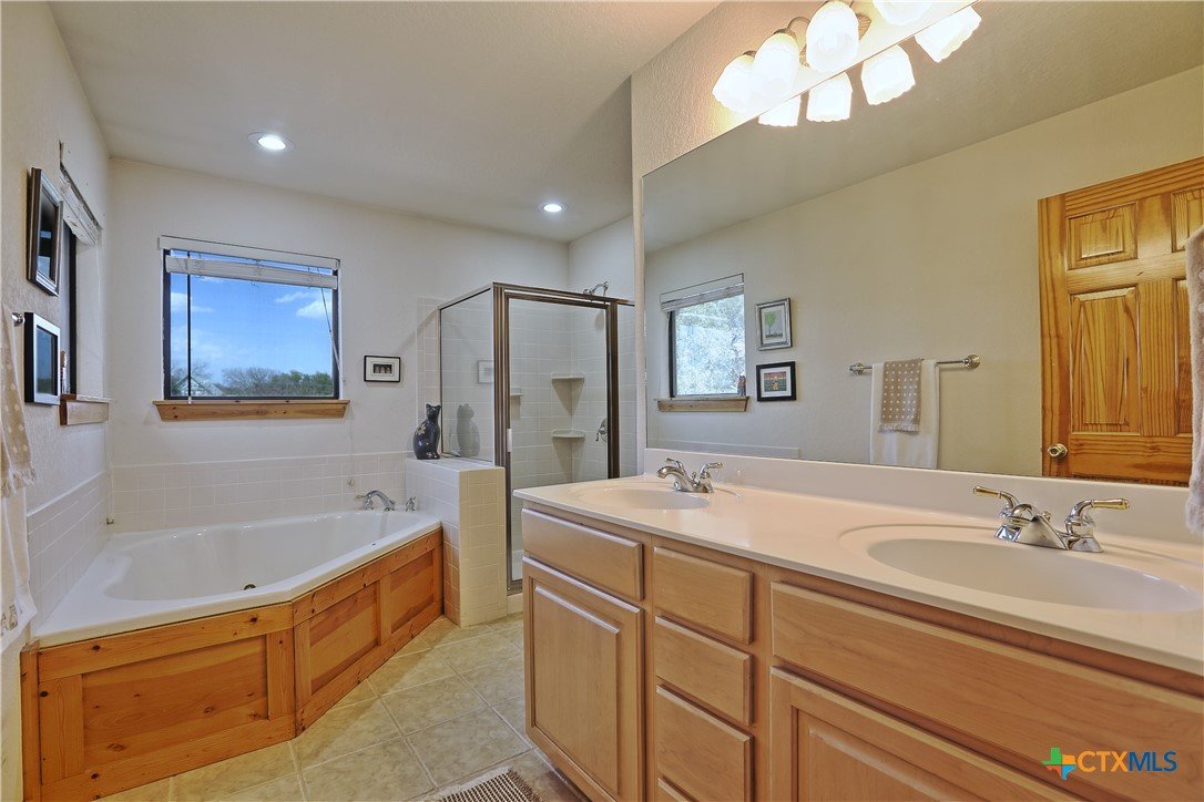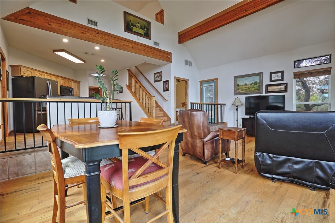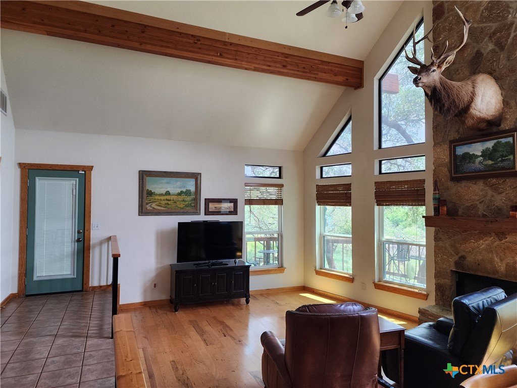 Lake Travis is full & boat ramps are open. We have a private boat launch. What a getaway tucked into the back of the subdivision on 1.65 acres of pure tranquility. This charming 2-story home offers the peaceful lifestyle you've dreamed of. Surrounded by towering trees, it backs to a 165-acre privately owned ranch. Inside, the open-concept living, dining, & kitchen areas are warm & welcoming. Two bedrooms & a full bath are downstairs. Upstairs, a spacious primary suite awaits, complete with jetted tub, separate shower, & double vanity. The property includes everything needed for country living: a dog run, storage shed/shop, & covered parking for your lawnmower or ATV. When you’re ready to explore, enjoy the community amenities—swimming pool, boat ramp, fishing dock, & nearly a mile of lake shoreline. The view from the back porch stretches over the gulch & up Alligator Creek—a spot where countless arrowheads have been found. Once you're here, you won’t want to leave.