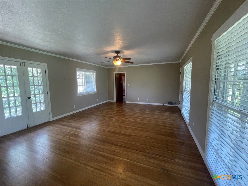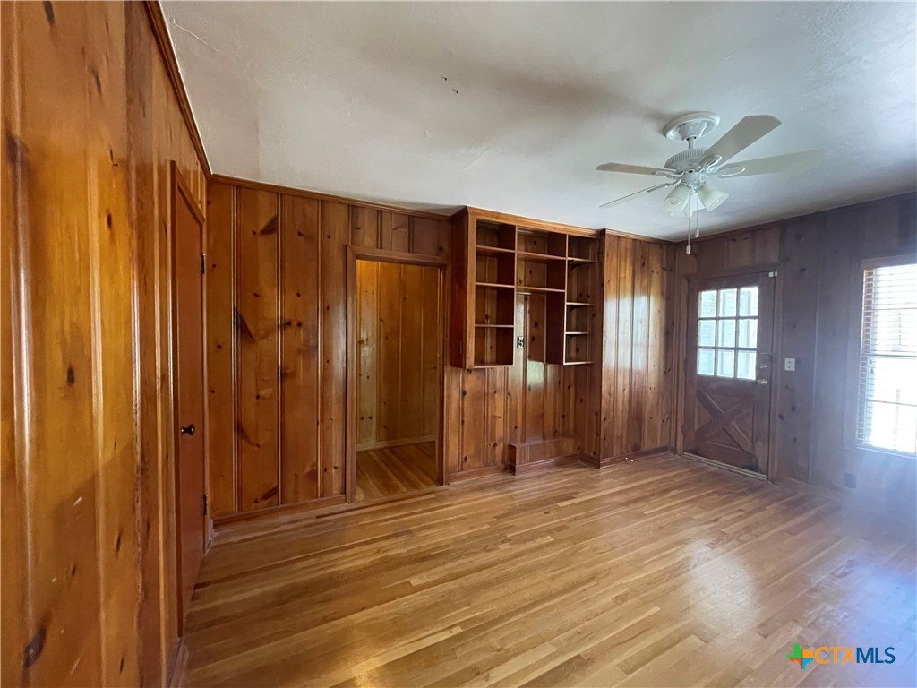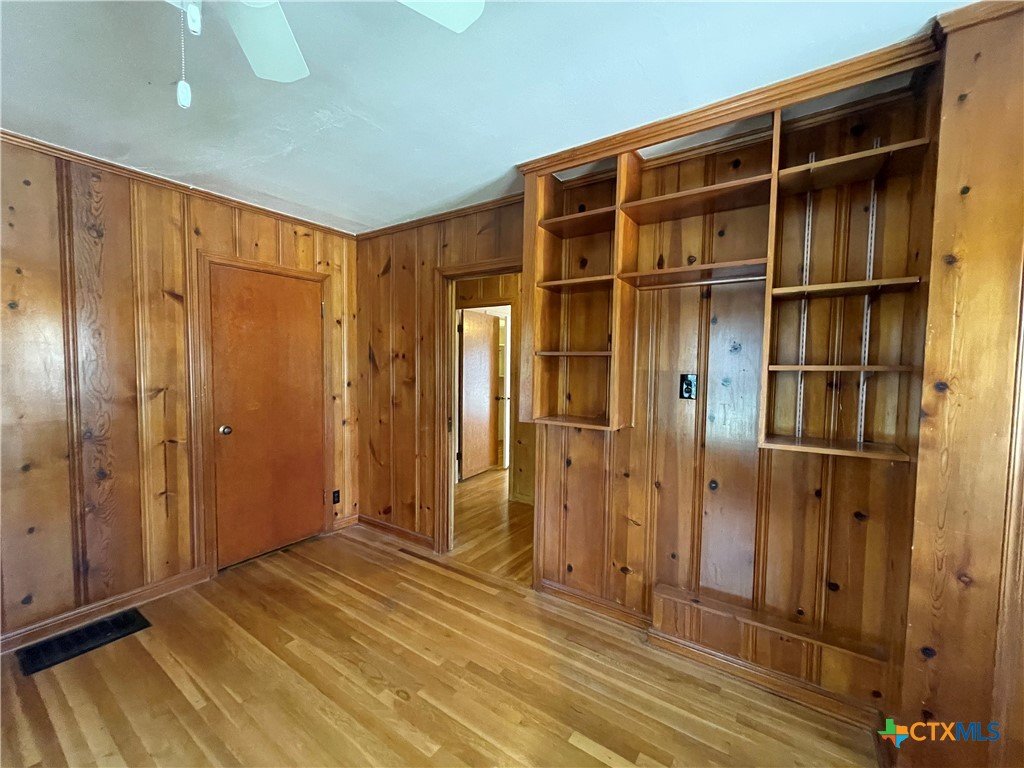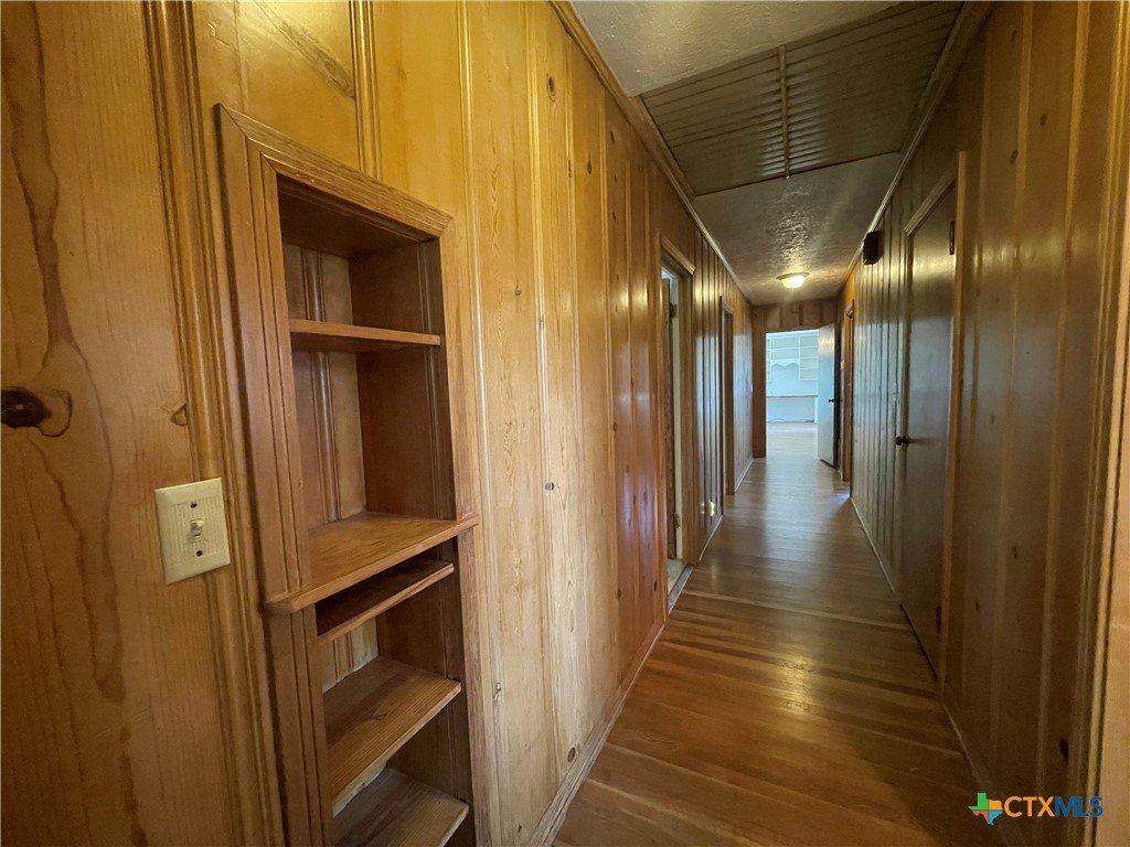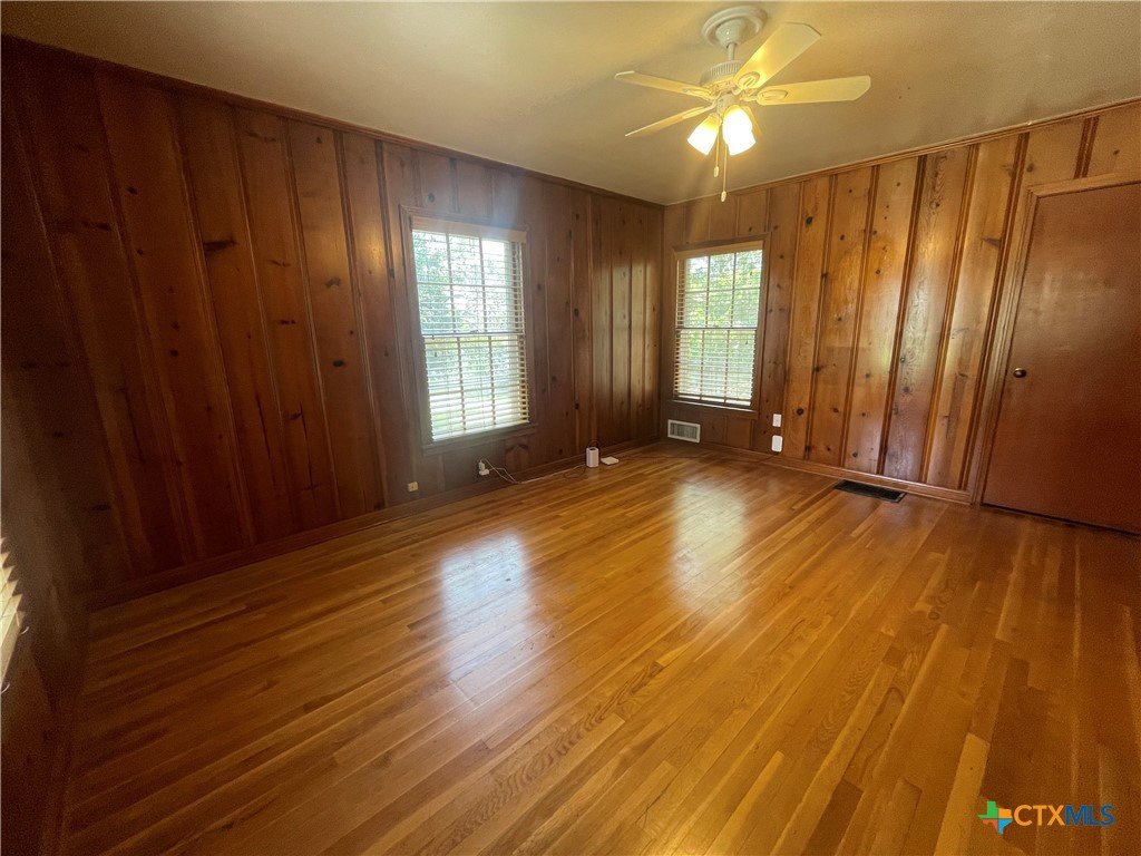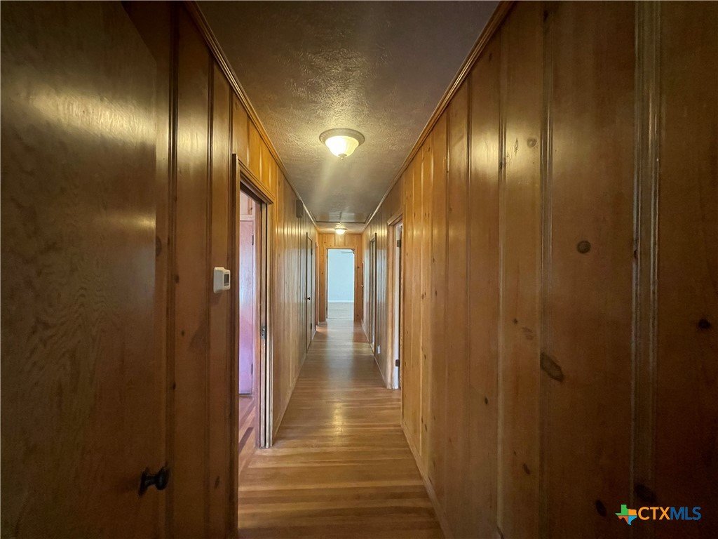 Welcome to 601 South Arnold, located in beautiful historical Lampasas, Texas. A captivating 1848 sq ft home where vintage charm abounds. Built in 1948, this delightful residence sits peacefully on a large corner lot surrounded by mature oaks & crepe myrtles. A chain-link fence surrounds the large backyard. Upon entering the home, you'll first be captivated by its impeccable original hardwood floors throughout, creating an inviting and warm atmosphere. Adding to its character is its rustic, knotty pine paneling, which graces various rooms and hallways, offering a sense of warmth and timeless appeal. Large windows flood every room with abundant natural light, enhancing the spacious feel of the three bedrooms and two baths. The hall bath is a true standout, featuring charming vintage turquoise tile, a highly sought-after design element in today's market. The kitchen offers abundant cabinet space, while the dining room is graced by an elegant chandelier, perfect for intimate dinners or lively gatherings. This home also features a two-car garage and a basement! which provides an additional versatile space to store such items as canned goods, vegetables, and seeds. If you've been looking for the true charm of an older home, we welcome you to visit 601 South Arnold.