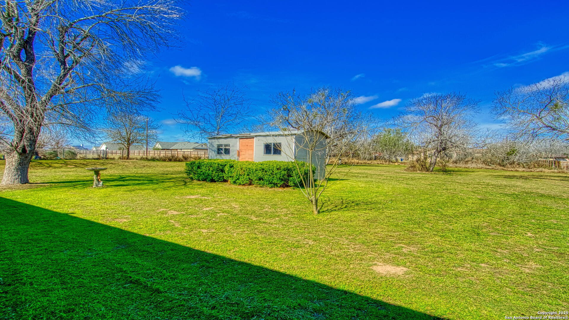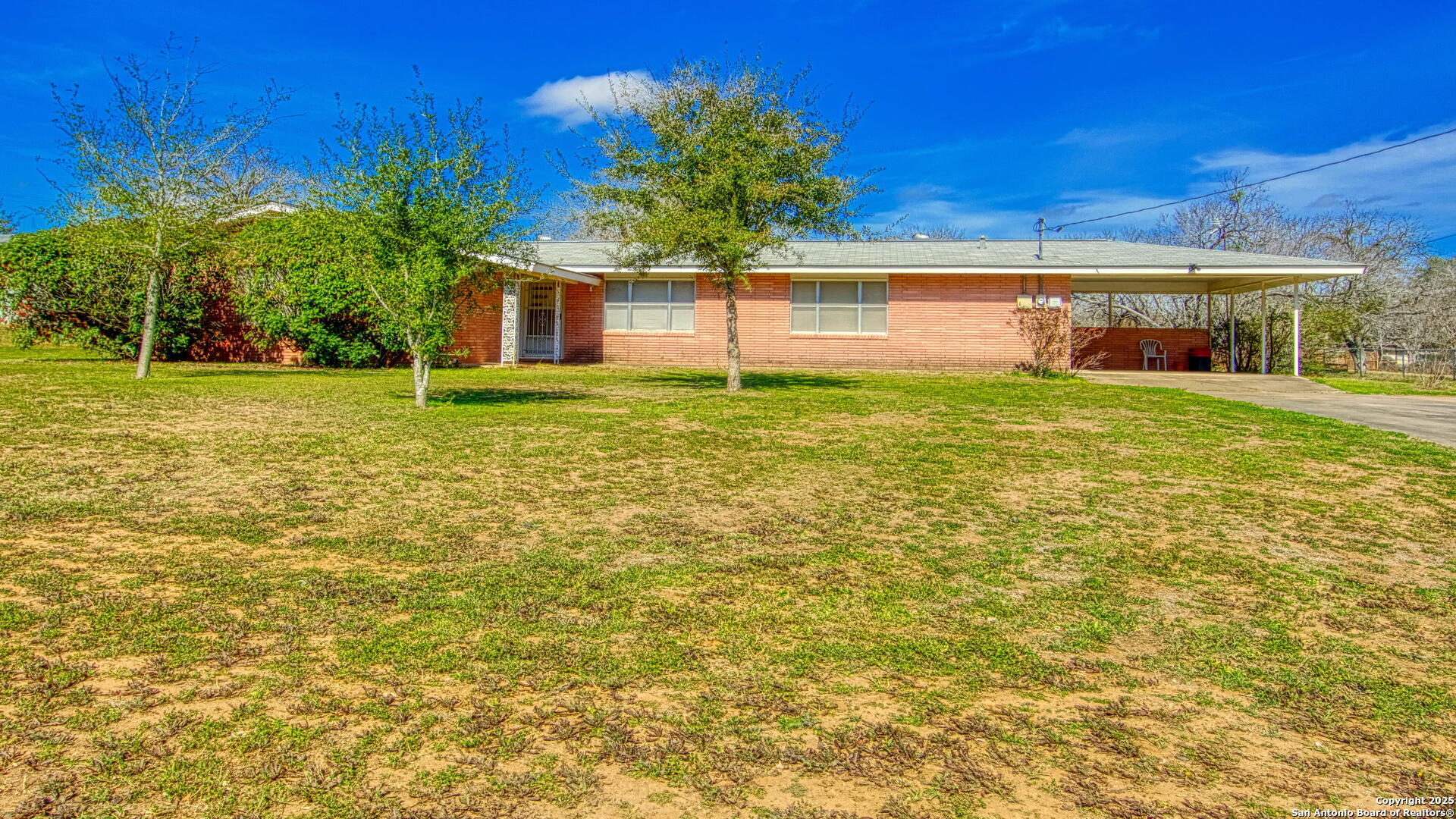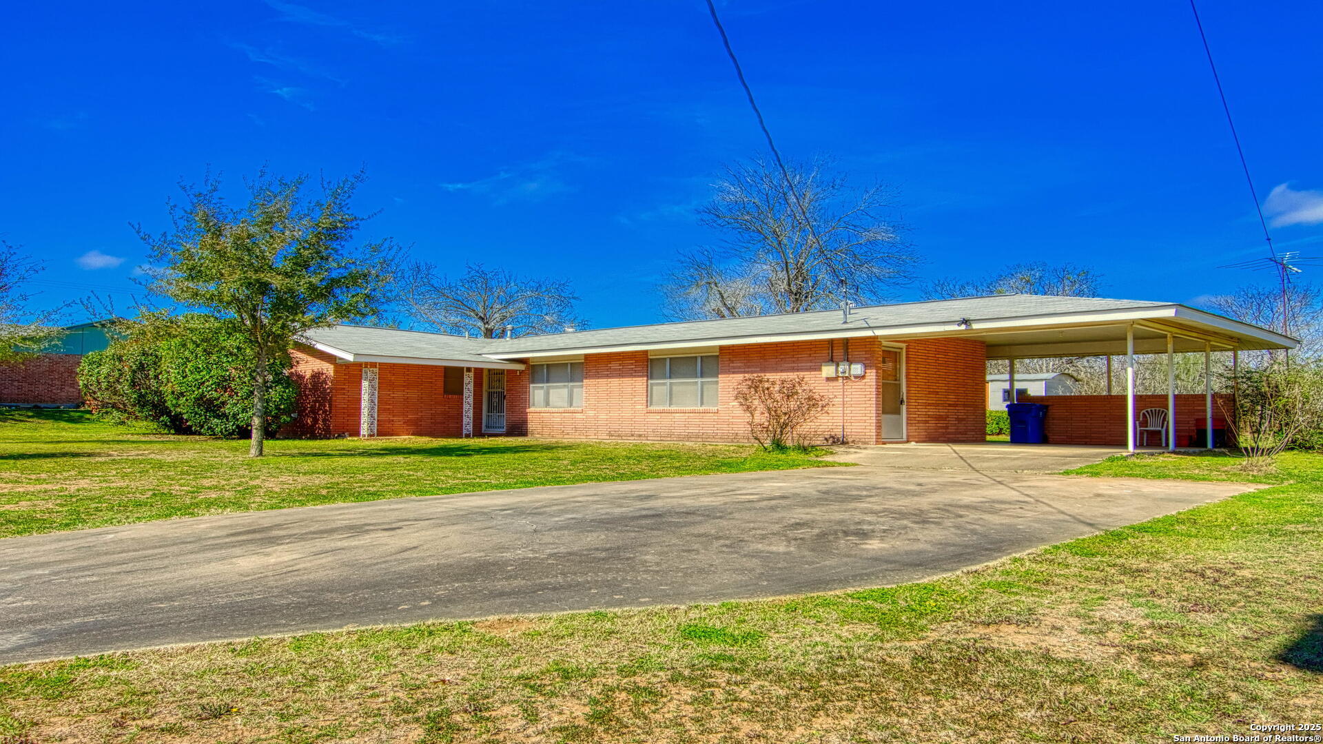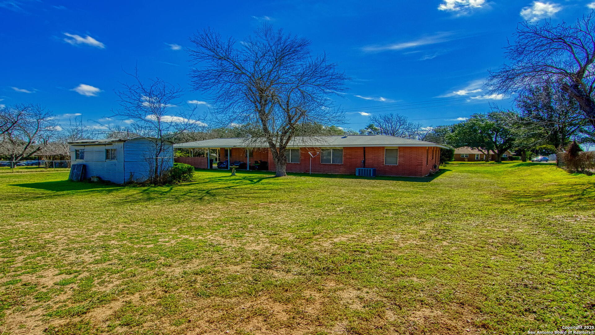 Welcome to this cozy 3 BED, 2 BATH home nestled on an oversized .86 ACRE LOT in a well established and peaceful neighborhood. At 1324 sq ft, this home features NEW FLOORING throughout (no carpet!) and offers a bright and airy atmosphere with plenty of natural light. The spacious eat-in kitchen is perfect for family meals and entertaining. The storage shed offers even more space. Located just off of Hwy 97 West, it's easy to access stores, schools, and emergency services. Fire and EMS are less than one mile away, and you're just blocks from the heart of downtown Floresville, Texas. Enjoy nearby outdoor spaces such as Pecan Park, the City River Park, and the El Camino walking trail as well as the Convention Center and City Pool. Just 20 minutes from San Antonio or the Eagle Ford area.
