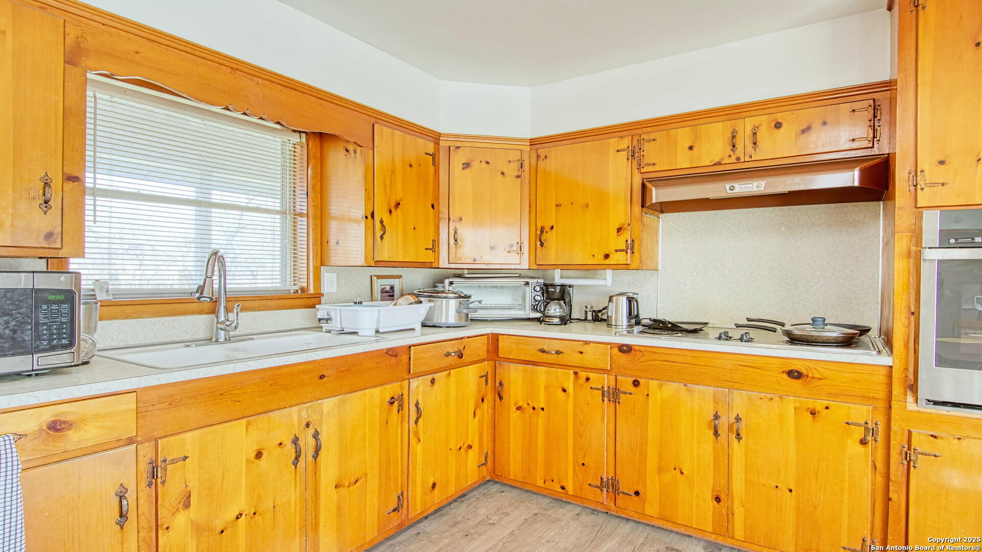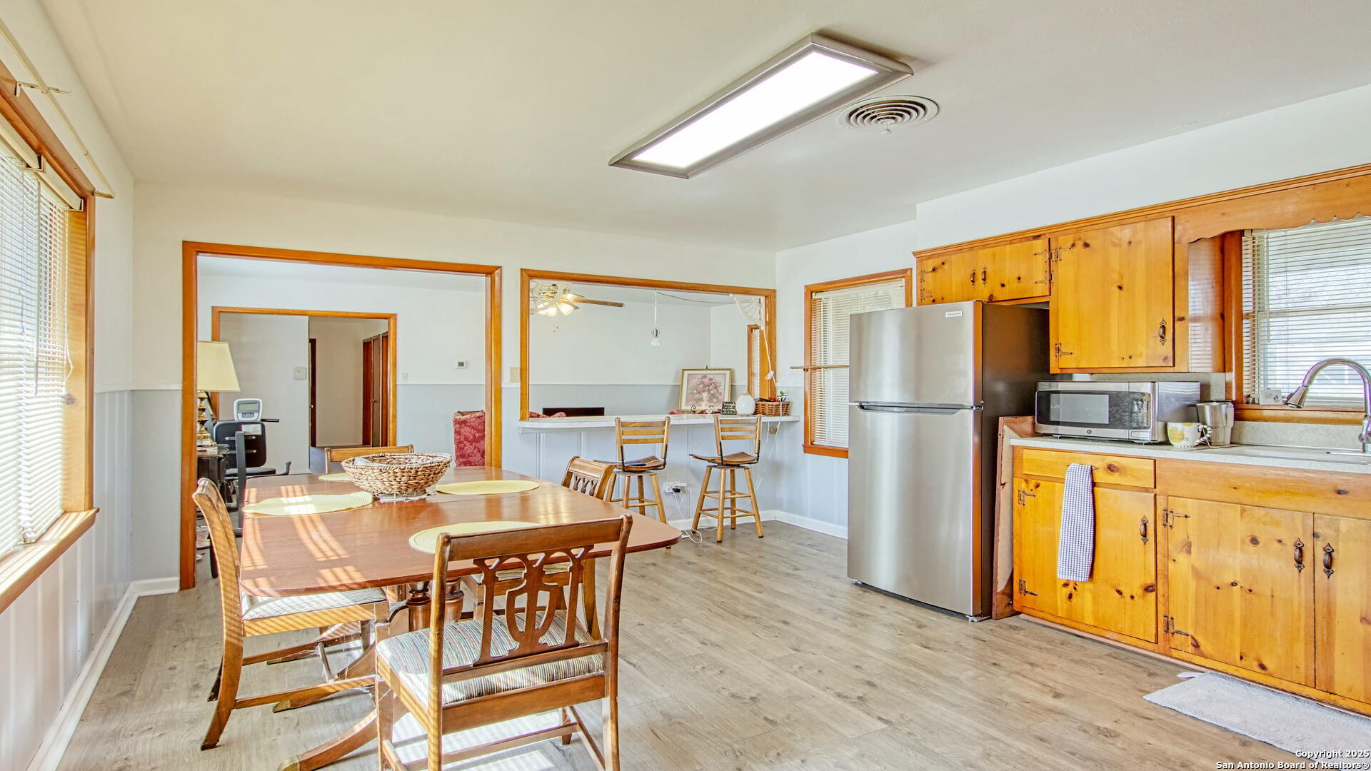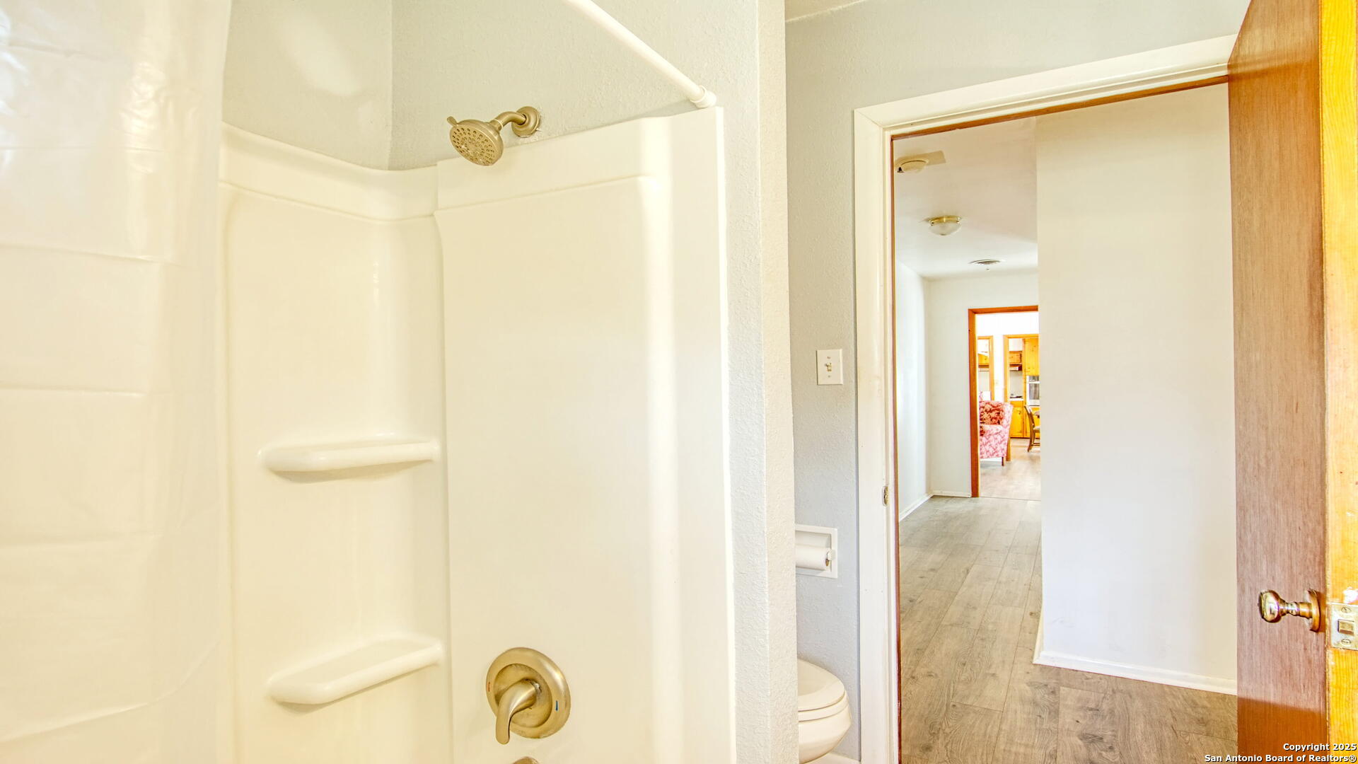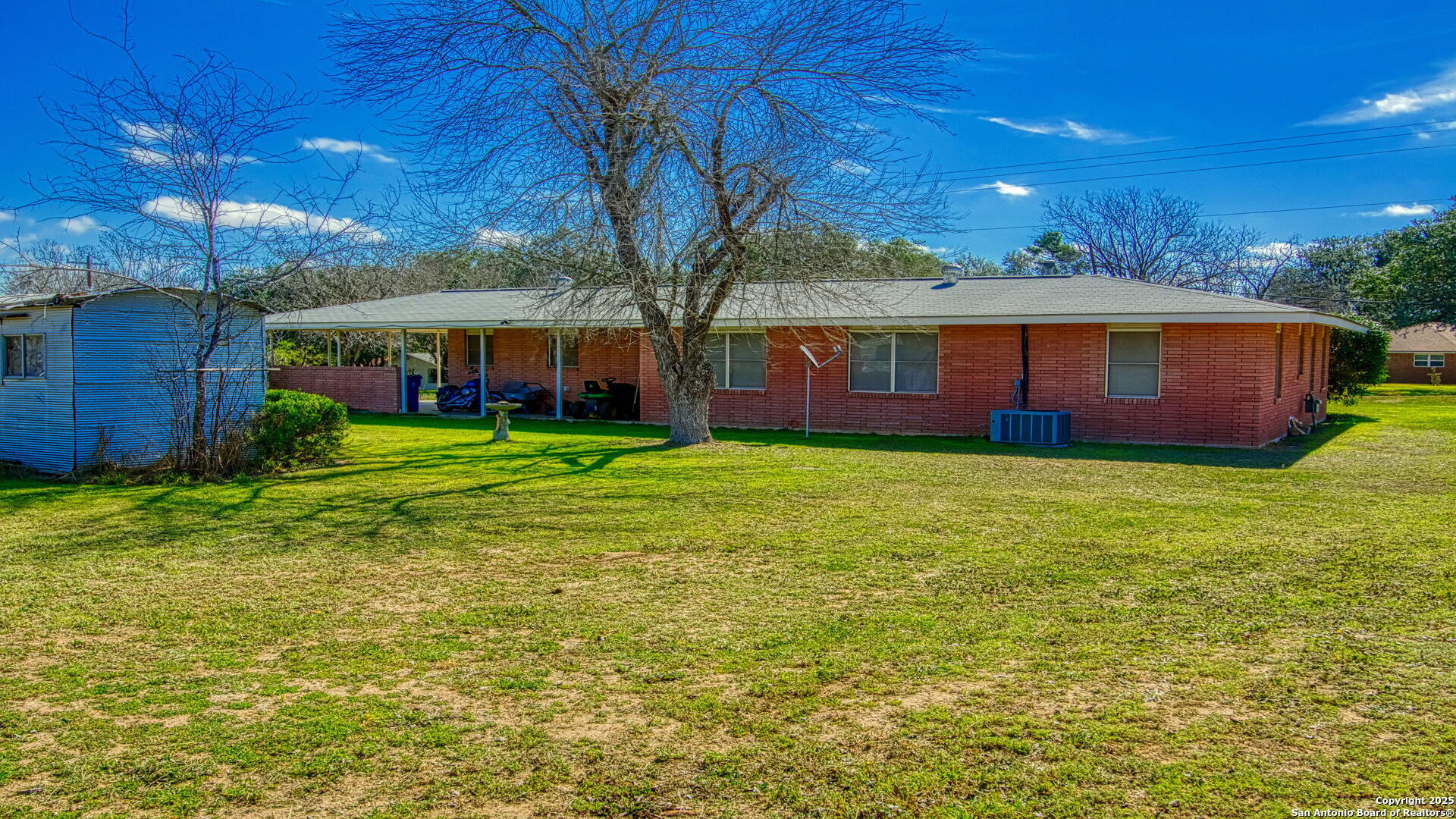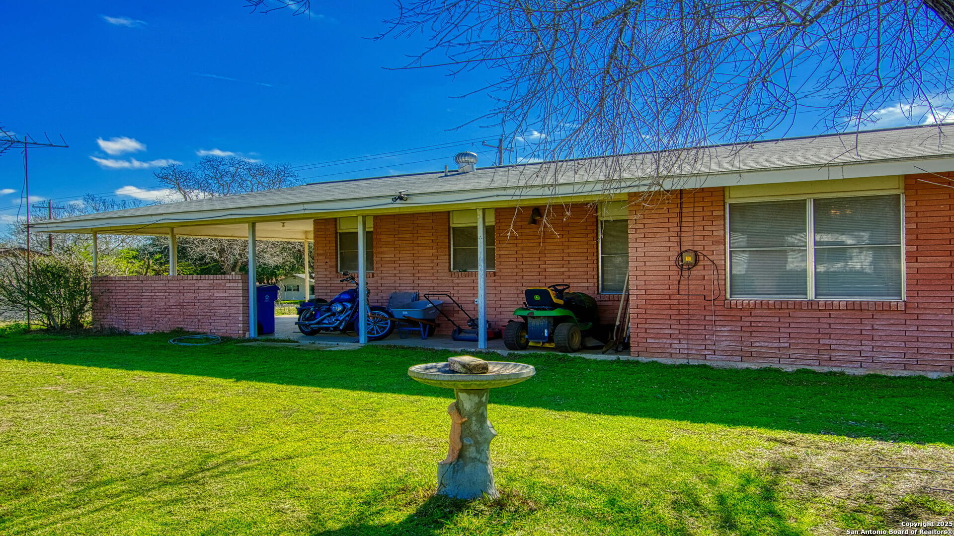 Welcome to this cozy 3 BED, 2 BATH home nestled on an oversized .86 ACRE LOT in a well established and peaceful neighborhood. At 1324 sq ft, this home features NEW FLOORING throughout (no carpet!) and offers a bright and airy atmosphere with plenty of natural light. The spacious eat-in kitchen is perfect for family meals and entertaining. The storage shed offers even more space. Located just off of Hwy 97 West, it's easy to access stores, schools, and emergency services. Fire and EMS are less than one mile away, and you're just blocks from the heart of downtown Floresville, Texas. Enjoy nearby outdoor spaces such as Pecan Park, the City River Park, and the El Camino walking trail as well as the Convention Center and City Pool. Just 20 minutes from San Antonio or the Eagle Ford area.