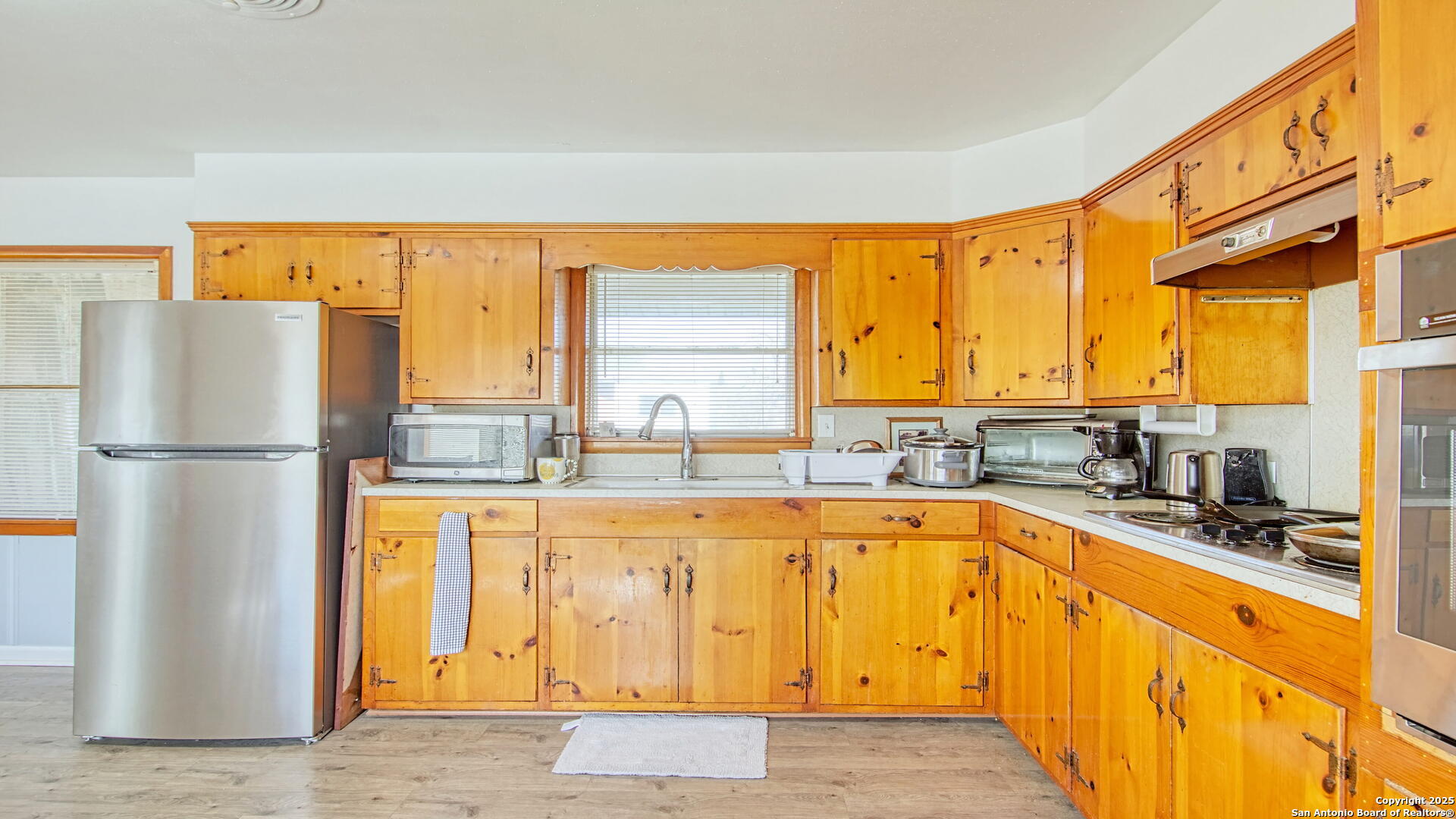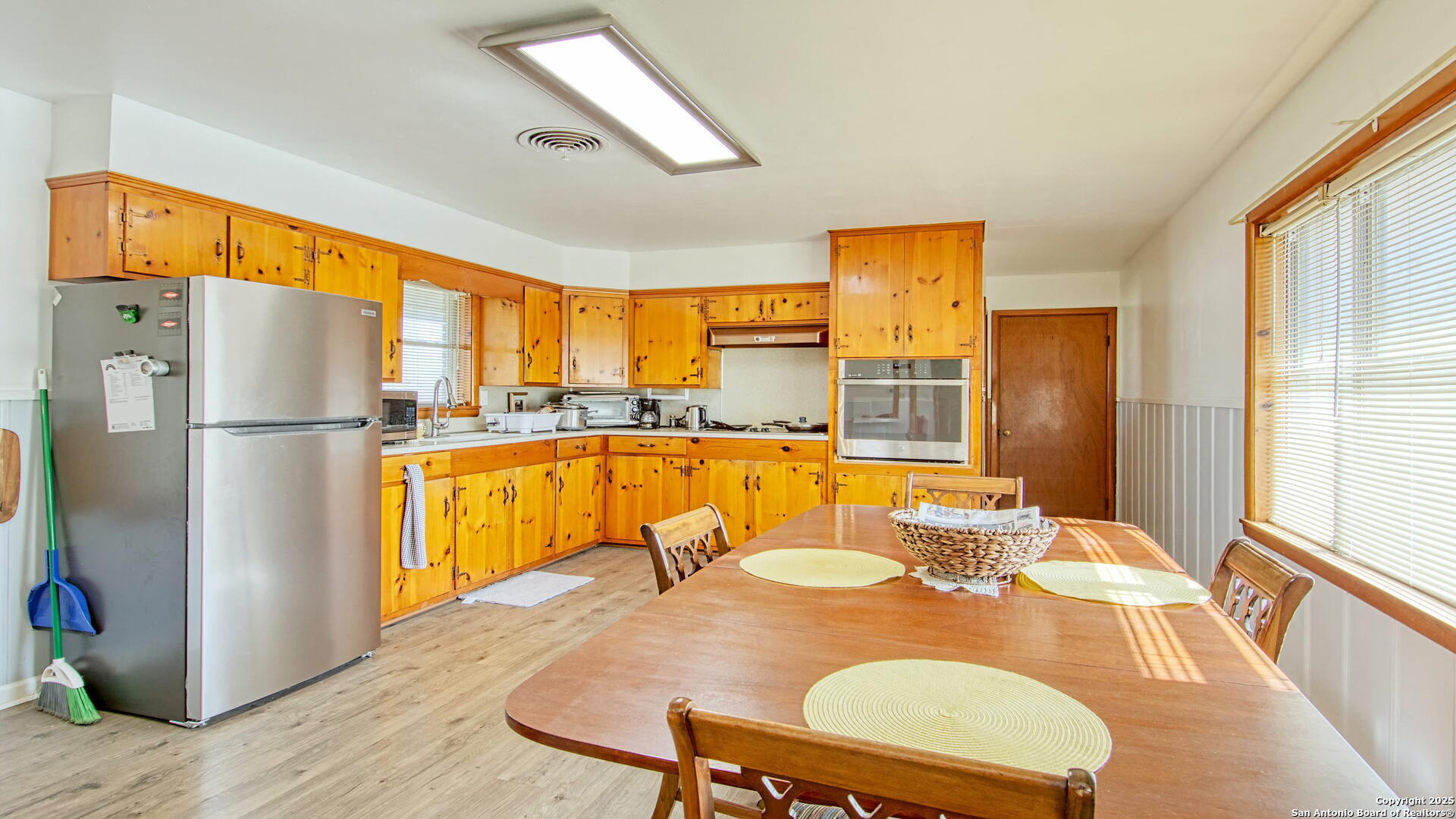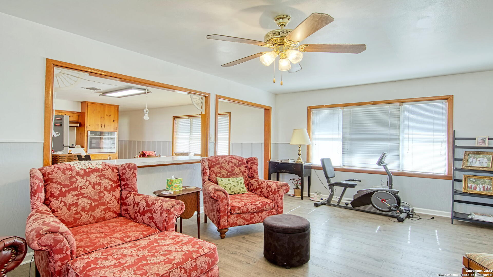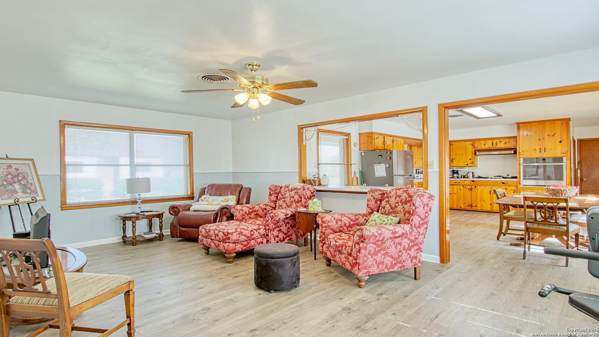 Welcome to this cozy 3 BED, 2 BATH home nestled on an oversized .86 ACRE LOT in a well established and peaceful neighborhood. At 1324 sq ft, this home features NEW FLOORING throughout (no carpet!) and offers a bright and airy atmosphere with plenty of natural light. The spacious eat-in kitchen is perfect for family meals and entertaining. The storage shed offers even more space. Located just off of Hwy 97 West, it's easy to access stores, schools, and emergency services. Fire and EMS are less than one mile away, and you're just blocks from the heart of downtown Floresville, Texas. Enjoy nearby outdoor spaces such as Pecan Park, the City River Park, and the El Camino walking trail as well as the Convention Center and City Pool. Just 20 minutes from San Antonio or the Eagle Ford area.