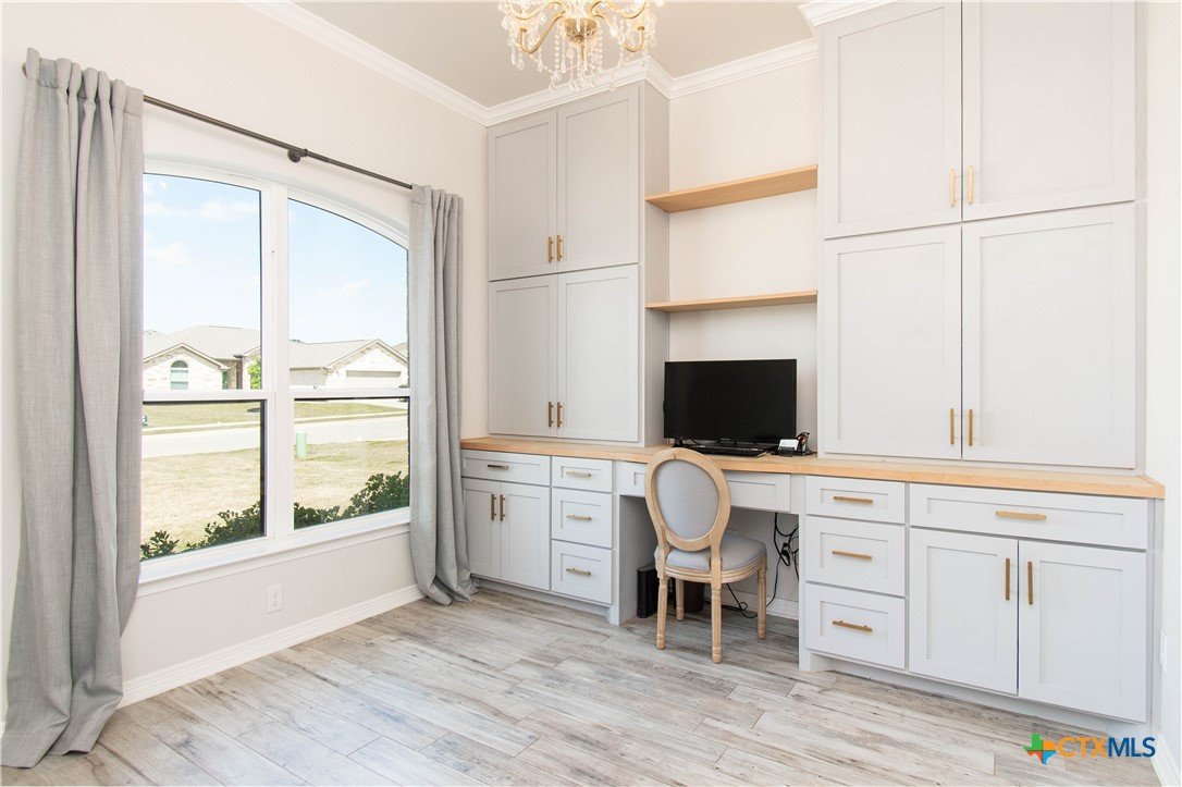 Beautifully crafted by Carothers Executive Homes, this 3-bedroom, 2.5-bath home offers the perfect blend of comfort and functionality. Designed with an open, split floorplan, the layout provides both privacy and ideal spaces for everyday living and entertaining. The spacious living room features a cozy wood-burning fireplace, creating a warm and inviting atmosphere. The kitchen is a true centerpiece with a large island, ample counter space, and seamless flow into the main living areas. The dedicated office with built-in cabinetry offers the perfect work-from-home setup or flex space to fit your needs. The private primary suite is thoughtfully separated from the secondary bedrooms, enhancing the home’s functional design. Step outside to enjoy a large covered patio—perfect for relaxing or hosting gatherings. The property also includes a storage shed with electricity, adding extra versatility and convenience. Located in Troy ISD, this home combines quality craftsmanship, practical features, and a great location—ready for you to make it your own.