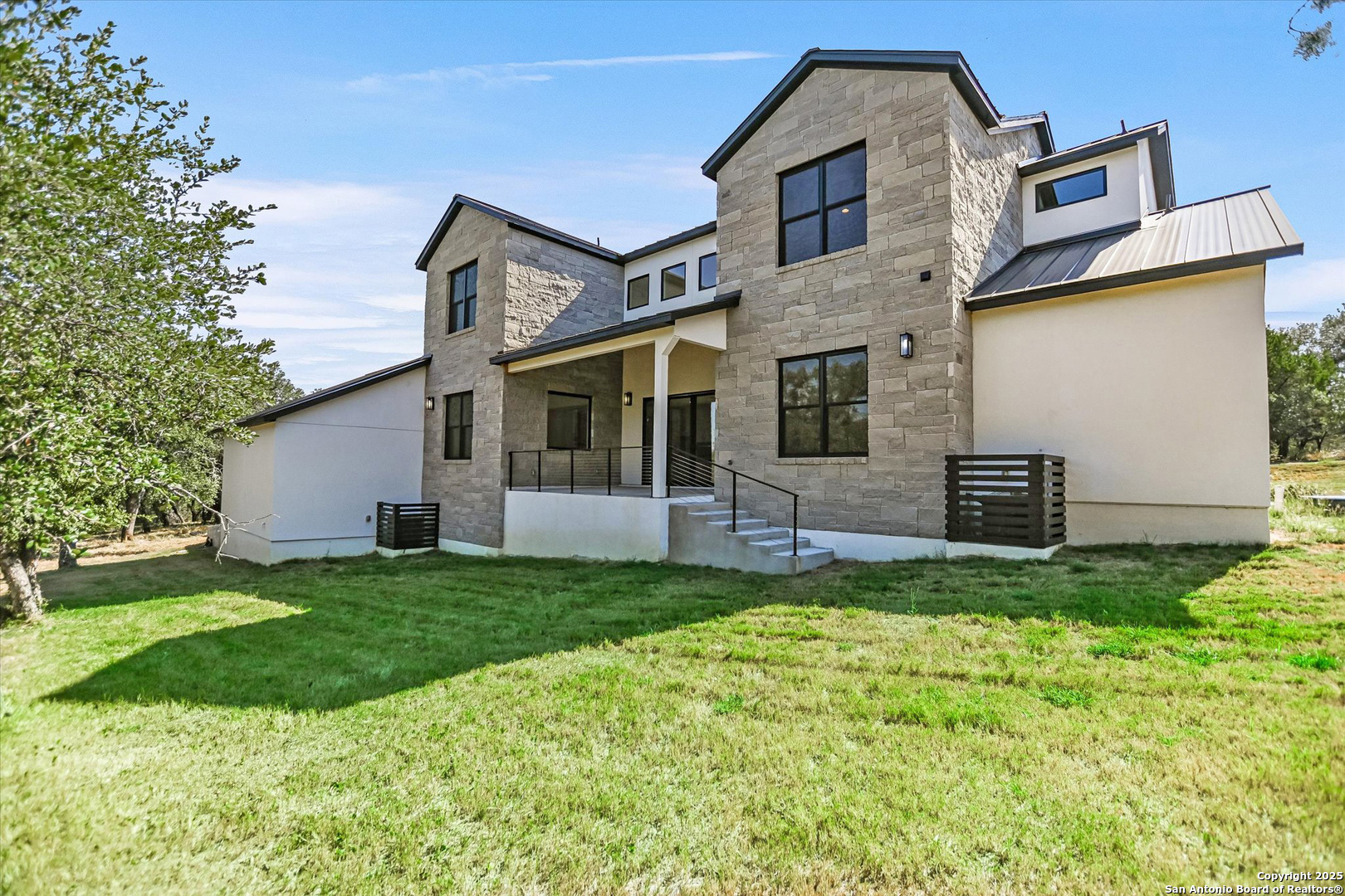 Welcome to 604 Apache Tears, a serene Hill Country retreat in the highly sought-after Horseshoe Bay West community. Perfectly blending modern luxury with relaxed Texas charm, this newly constructed home rests on an oversized 0.41-acre lot close to both the lake and the golf course. Designed for comfort and versatility, the open-concept layout welcomes you with soaring ceilings, abundant natural light, and elegant finishes-ideal for family living, entertaining friends, or enjoying quiet evenings at home. The island kitchen takes center stage, boasting quartz countertops, stainless steel appliances, and a walk-in pantry, flowing seamlessly into the spacious living and dining areas. Oversized sliding doors lead to a covered patio overlooking the private, peaceful backyard-perfect for casual gatherings, grilling, or simply relaxing after a long day. The main-level primary suite offers a spa-inspired bath featuring a soaking tub, walk-in shower, and custom closet. A private study, powder bath, and mudroom are conveniently located on the main level. Upstairs, you'll find a flex room-perfect for movie nights, hobbies or a home gym-along with a junior suite and two additional guest rooms that share a Jack-and-Jill bath. With a 3-car garage, hardwood floors, and designer finishes, this home is luxurious yet perfectly livable for every stage of life. Just minutes from award-winning golf courses, constant-level Lake LBJ, and resort amenities, 604 Apache Tears offers the best of Horseshoe Bay living.
