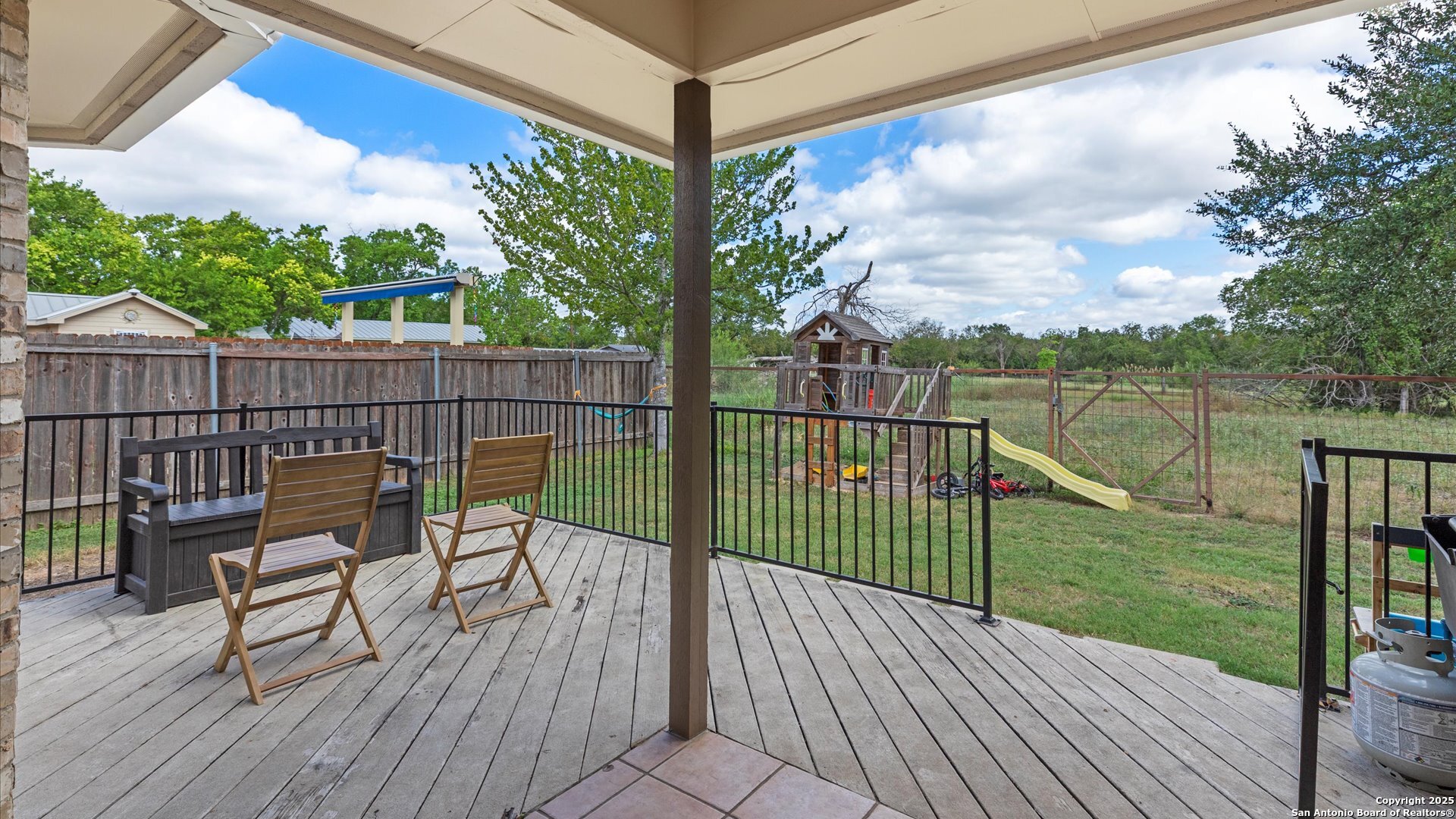 Charming home nestled in a quiet cul-de-sac! This warm and inviting 3-bedroom, 2-bath home features an open floor plan filled with natural light. Upstairs, you'll find a spacious loft that offers endless possibilities for a game room, office, or additional living space. The living room is centered around a beautiful brick, wood-burning fireplace-perfect for cozy evenings. The kitchen includes a breakfast bar and separate breakfast area, making it ideal for both casual dining and entertaining. Step outside to enjoy the covered back patio and extended deck, all fully fenced with a gate-perfect for pets or little ones to play safely. Located in a peaceful neighborhood, this home offers comfort, charm, and functionality all in one! Roof replaced October 2024 & interior and exterior A/C unit replaced summer of 2024.