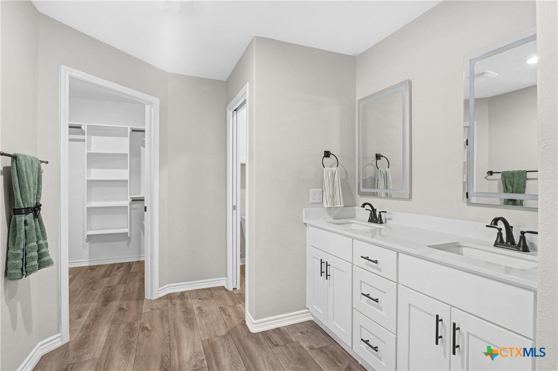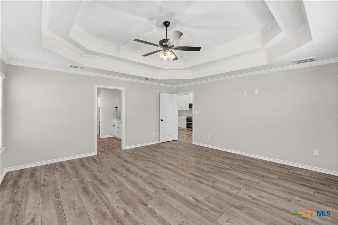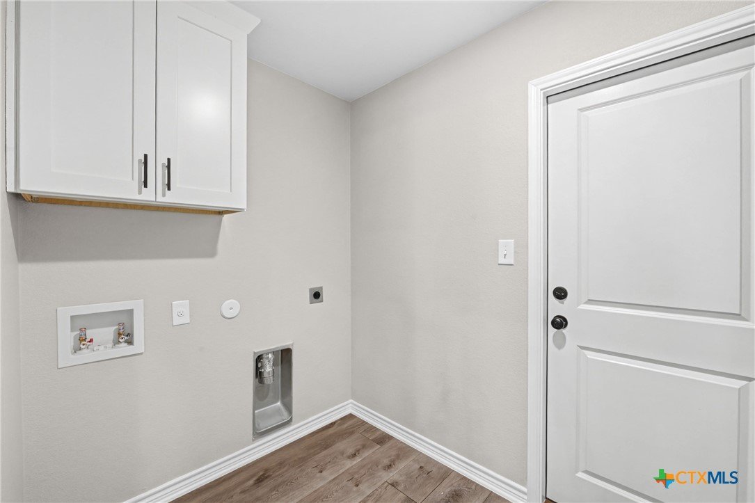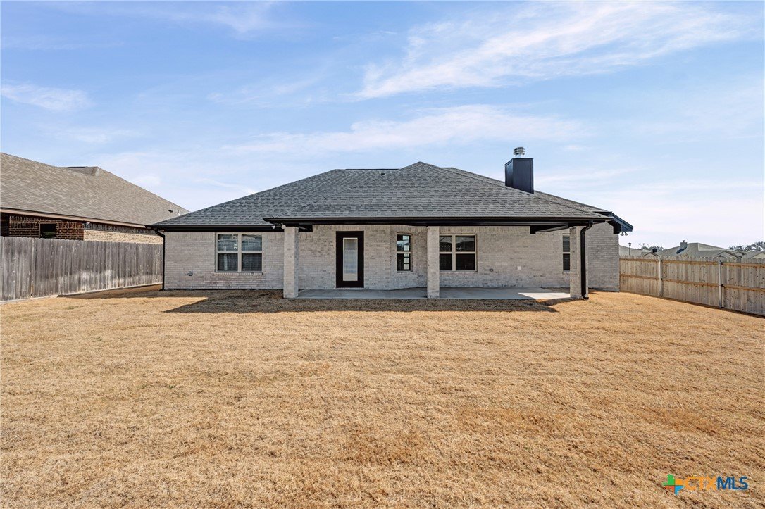 Welcome to this beautifully designed 4-bedroom, 2.5-bath home in Troy, Texas, located in highly regarded Troy ISD — a smaller school district many buyers appreciate for its community feel and accessibility. With a lower property tax rate than many surrounding areas and easy access to I-35, Temple, Baylor Scott & White, and Fort Hood, this home offers the perfect balance of convenience and value in Central Texas. Inside, you’ll find an open-concept floor plan with luxury vinyl plank flooring throughout — no carpet. The spacious living room is anchored by a stunning corner brick fireplace with a floating wood mantle, creating a warm focal point for gatherings. Tall ceilings, recessed lighting, and seamless flow into the dining area and kitchen make this home ideal for entertaining. The chef-inspired kitchen features quartz countertops, white shaker-style cabinetry, stainless steel appliances, subway tile backsplash, gold hardware accents, and a large wrap-around breakfast bar with double sink overlooking the living space. Ample cabinet storage and a dedicated pantry add everyday functionality. The private primary suite offers a tray ceiling, generous natural light, and a spa-style bath complete with dual vanities, soaking tub, oversized walk-in shower with frameless glass, and a spacious walk-in closet with built-in shelving. Secondary bedrooms are thoughtfully positioned for privacy, ideal for guests, home office, or flexible living. Additional highlights include a large utility room, covered back patio, fully fenced backyard, energy-efficient construction, and a two-car garage. If you're searching for a move-in ready home in Troy TX with modern finishes, open living space, low property taxes, and access to Troy ISD, this home is a must-see.