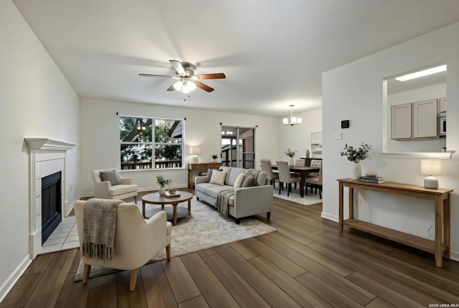 Welcome to this beautifully maintained townhome located in a gated community, just minutes from the Medical Center and USAA. Offering 3 bedrooms and 2.5 baths, this home features a smart and flexible layout designed for comfortable living. Downstairs, you'll find an open -concept floor plan with a spacious family room highlighted by a cozy wood burning fireplace. The Kitchen flows seamlessly into the living and dining areas, creating an ideal space for entertaining. A Convenient half bath and secondary bedroom are also located on the main level. Upstairs , two private en-suite bedrooms each feature their own full bathroom, offering privacy and flexibility for their guests, roommates or family. Step outside to enjoy the covered patio and shaded backyard with a mature tree- a peaceful retreat for morning coffee or a weekend gathering. Additonal features include a one-car garage plus driveway parking for two vehicles All of this in a highly desirable location at an exceptional value for the area.