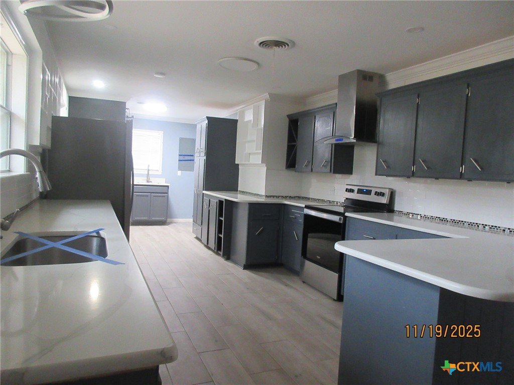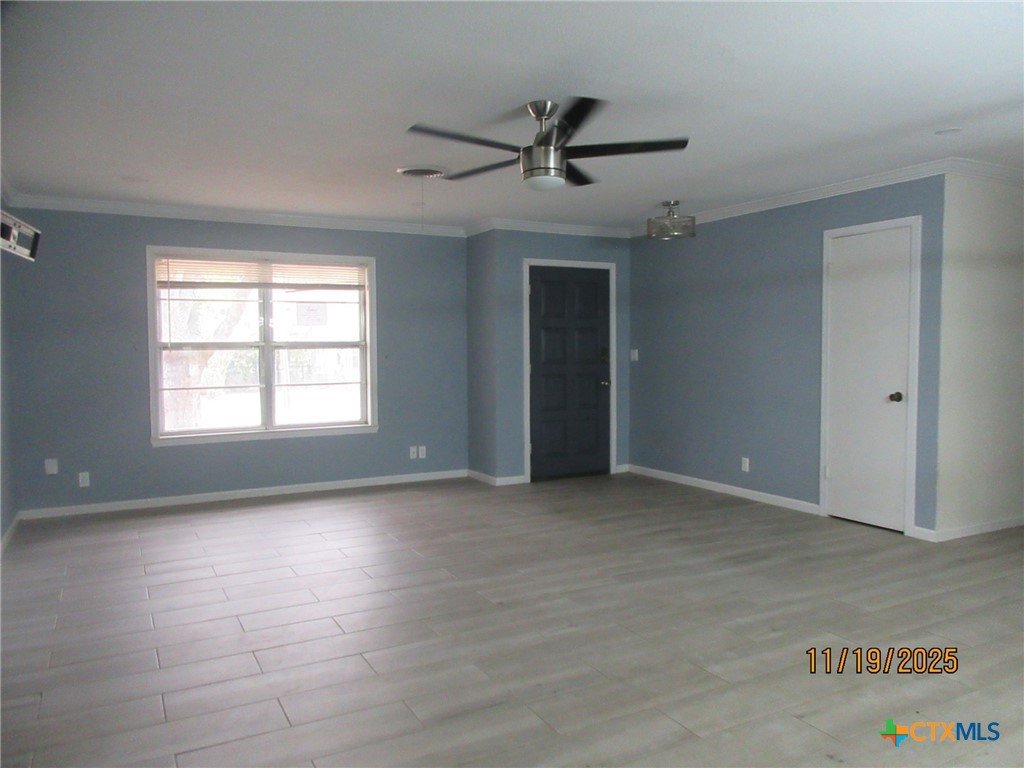 Welcome home! This modern 3/2/2 home features a spaciousopen living dining area with upgraded fixtures, and with crown molding. Opens to a beautiful contemporary kitchen, with stainless appliances, solid surface counterts and ample work space, . Awesome master with an updated on-suite bath with double vanity and large shower. Easy care tile flooring in the living areas, carpet in the 3 bedroom and a newer HVAC system from 2021. Relax in the sunroom and enjoy the gorgeous backyard, complete with mature trees and outdoor patio perfect for year-round gatherings. The extra building offers FLEX space, equipped with electricity and a window unit, ideal for hobbies, workroom, playhouse, or storage. Located in North Belton, this home is conveniently located within walking distance to an elementary school and two parks! Schedule your tour today!