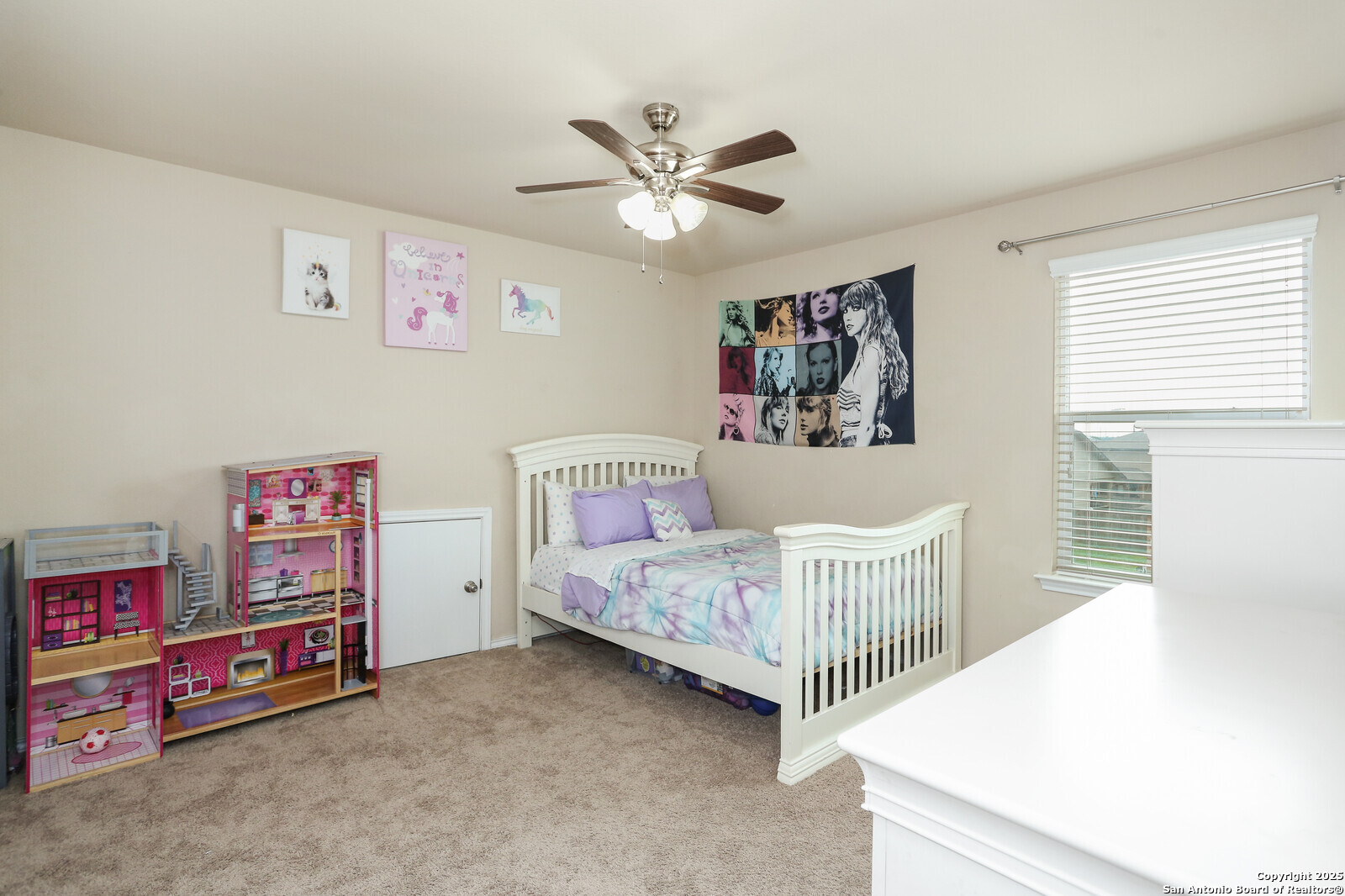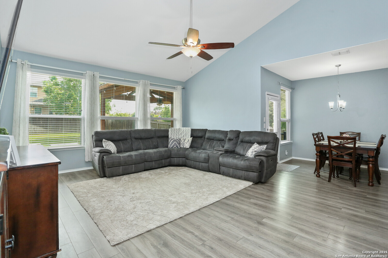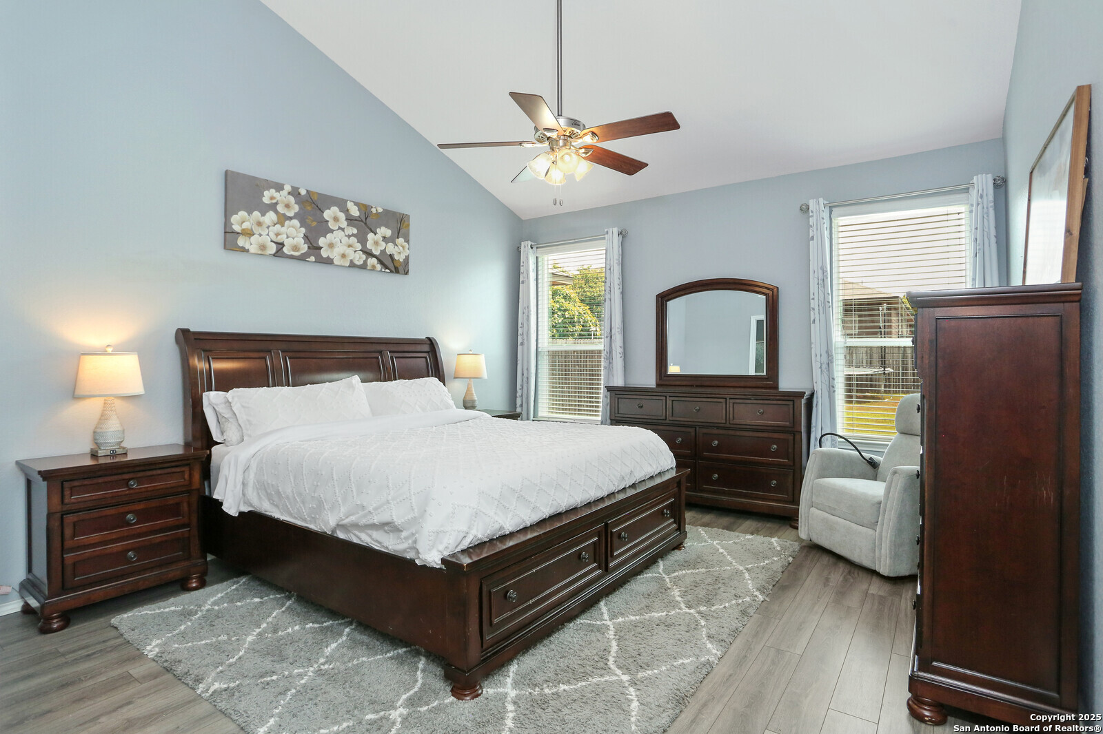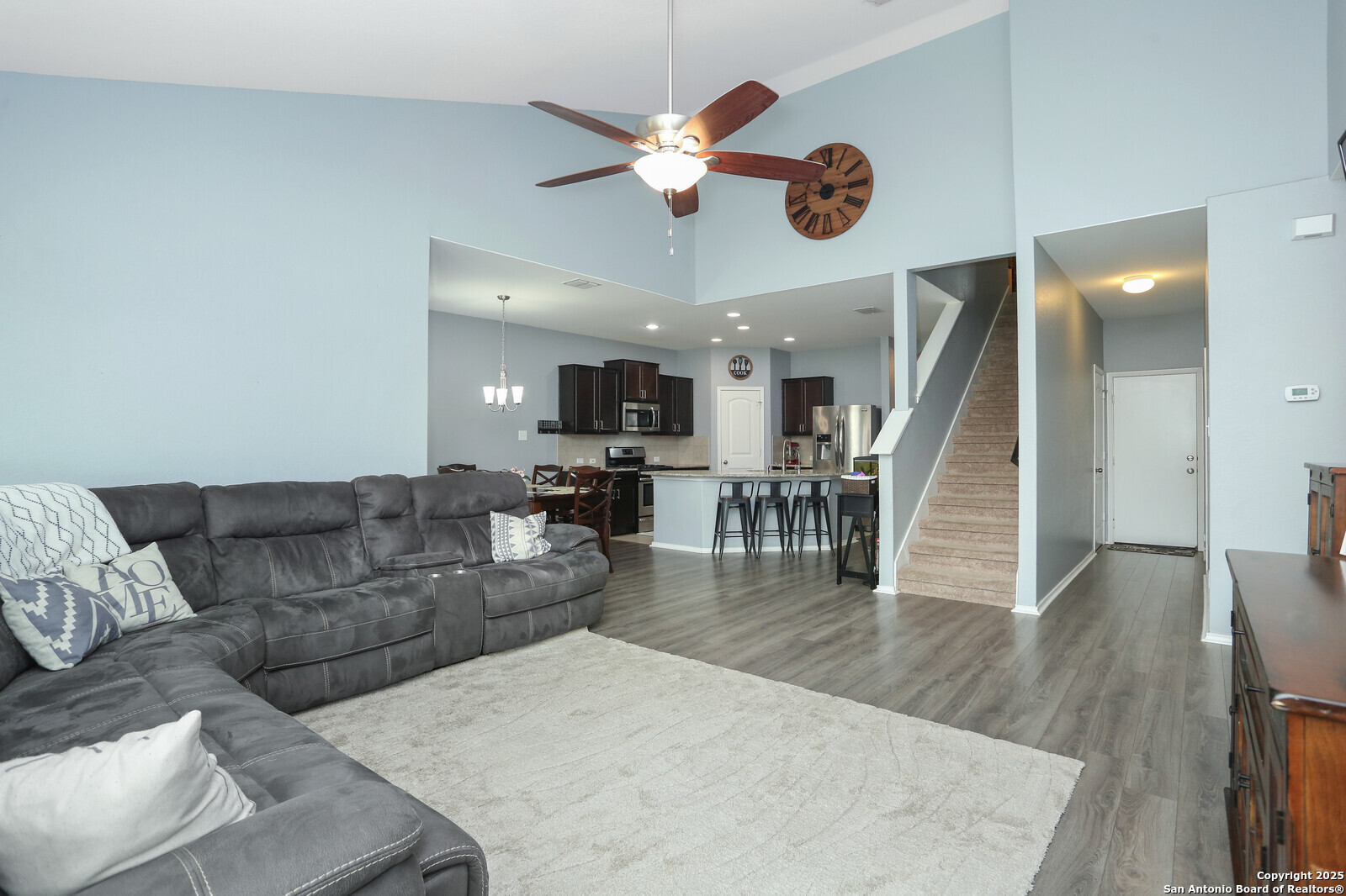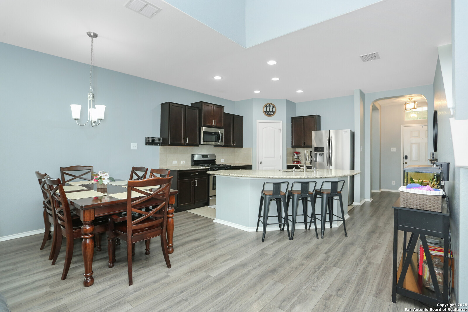 **VA Assumable at 2.25%**Discover this rare and beautifully designed 5-bedroom, 3.5-bath home in the highly desirable Redbird Ranch community! This spacious floor plan offers flexibility and comfort for modern living, starting with a formal dining area and a bright, eat-in kitchen-perfect for everyday meals or entertaining guests. The kitchen is equipped with granite countertops, a gas range, ample cabinetry, and a pantry for extra storage. Soaring ceilings in the living room create a light and airy feel, while a convenient half bath is located downstairs for guests. The primary suite is also on the main level and features a luxurious bath with double vanities, a separate soaking tub and shower, and two walk-in closets. Upstairs, you'll find a large loft, an additional full bath, and four spacious bedrooms-one with its own private bath, ideal for multigenerational living or guest accommodations. One oversized bedroom is perfect as a home theater, playroom, or flex space and includes its own walk-in closet. Enjoy outdoor living with an extended back patio, complete with furniture -great for relaxing or entertaining-all set on a premium corner lot. Located within walking distance to the neighborhood elementary school and just minutes from Lackland AFB, SeaWorld, shopping, and dining. Don't miss this unique opportunity in Redbird Ranch!