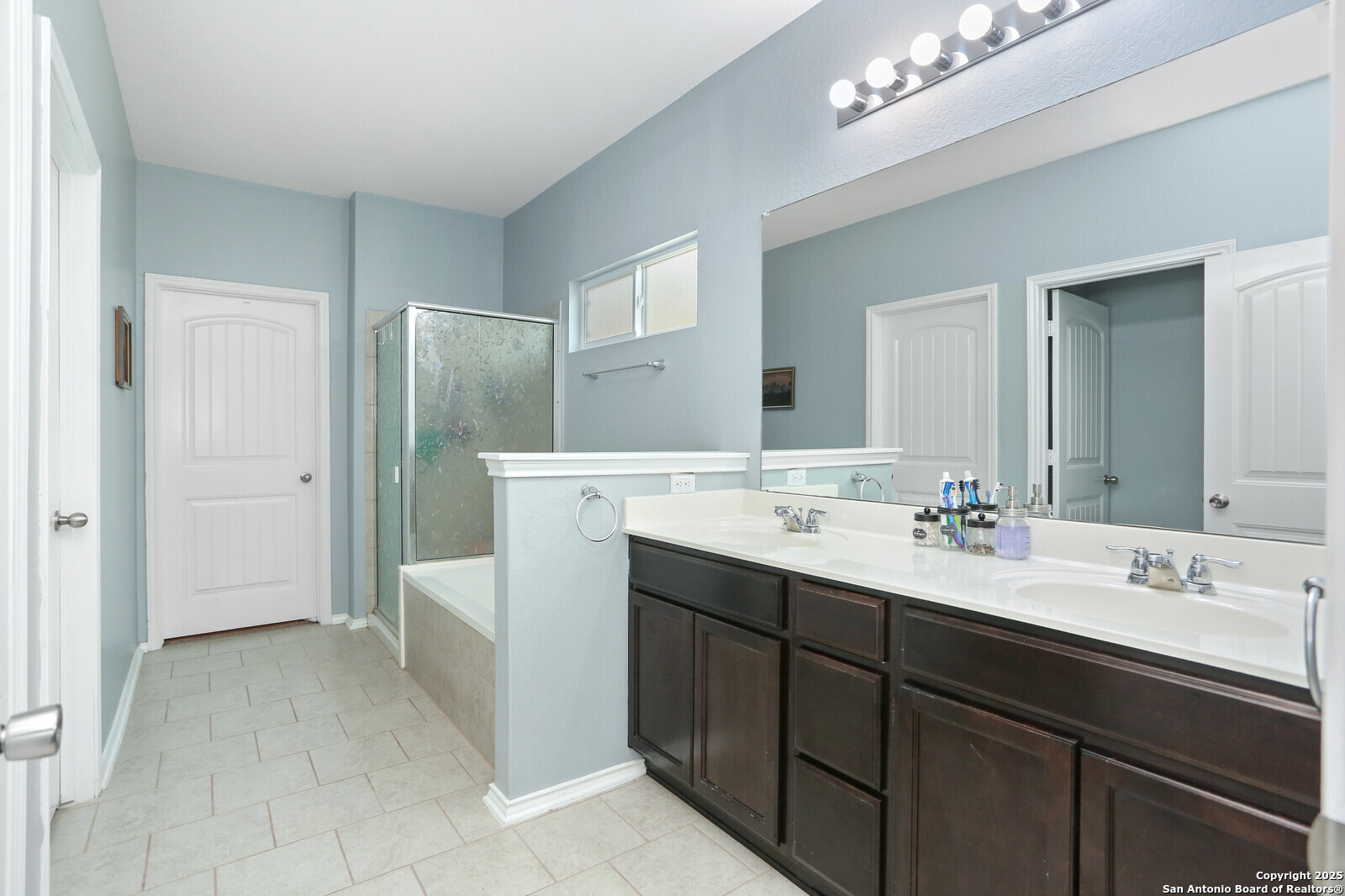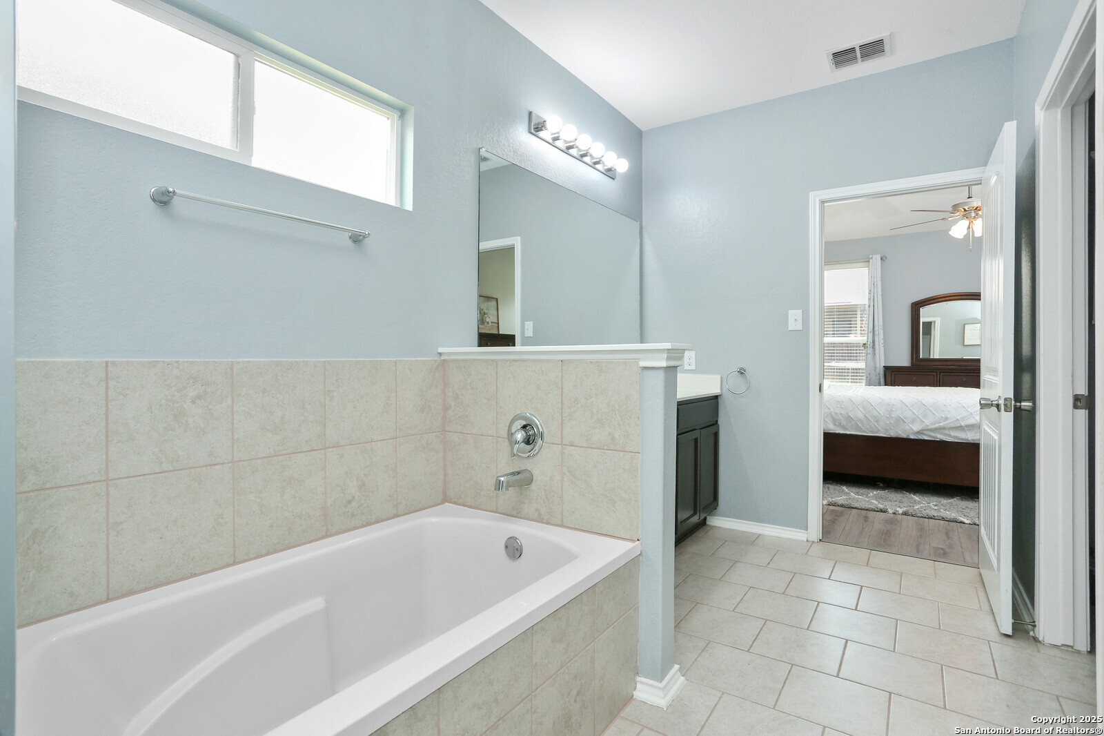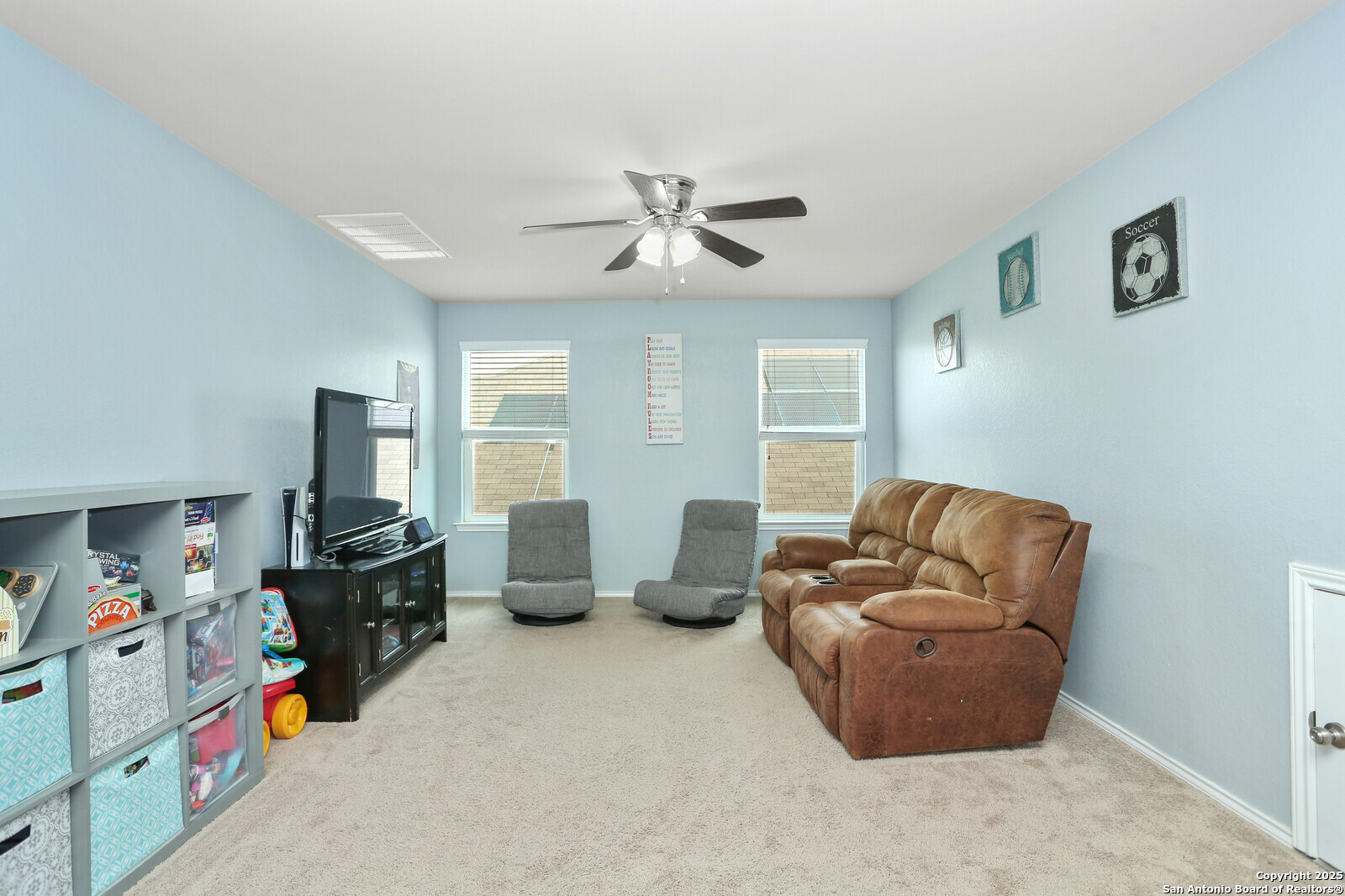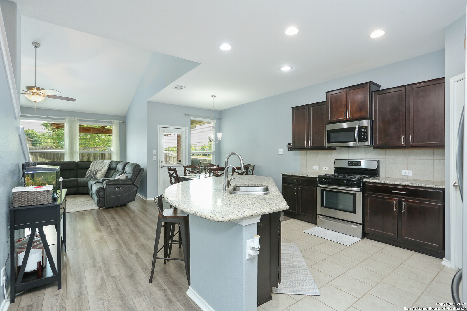 **VA Assumable at 2.25%**Discover this rare and beautifully designed 5-bedroom, 3.5-bath home in the highly desirable Redbird Ranch community! This spacious floor plan offers flexibility and comfort for modern living, starting with a formal dining area and a bright, eat-in kitchen-perfect for everyday meals or entertaining guests. The kitchen is equipped with granite countertops, a gas range, ample cabinetry, and a pantry for extra storage. Soaring ceilings in the living room create a light and airy feel, while a convenient half bath is located downstairs for guests. The primary suite is also on the main level and features a luxurious bath with double vanities, a separate soaking tub and shower, and two walk-in closets. Upstairs, you'll find a large loft, an additional full bath, and four spacious bedrooms-one with its own private bath, ideal for multigenerational living or guest accommodations. One oversized bedroom is perfect as a home theater, playroom, or flex space and includes its own walk-in closet. Enjoy outdoor living with an extended back patio, complete with furniture -great for relaxing or entertaining-all set on a premium corner lot. Located within walking distance to the neighborhood elementary school and just minutes from Lackland AFB, SeaWorld, shopping, and dining. Don't miss this unique opportunity in Redbird Ranch!