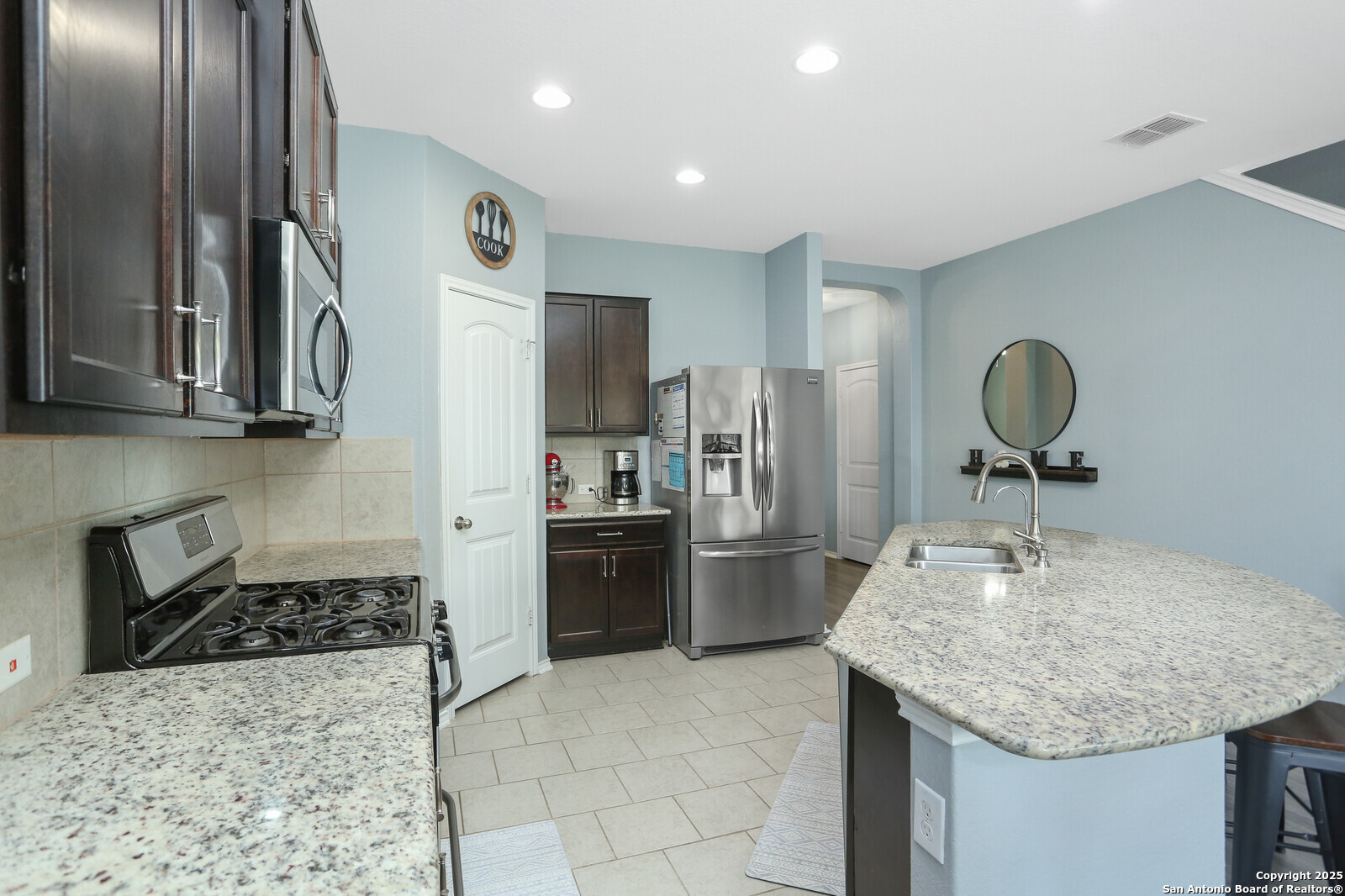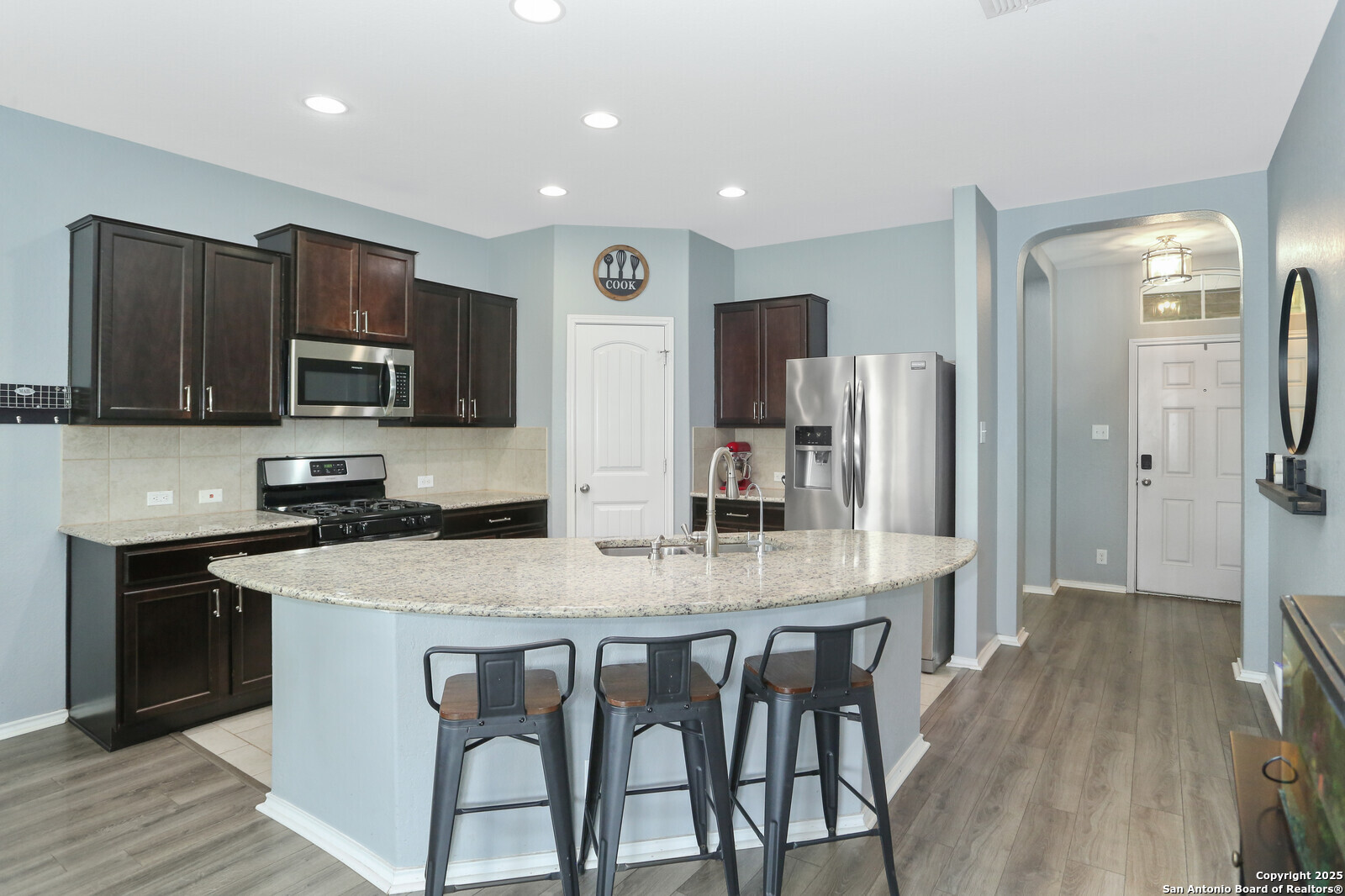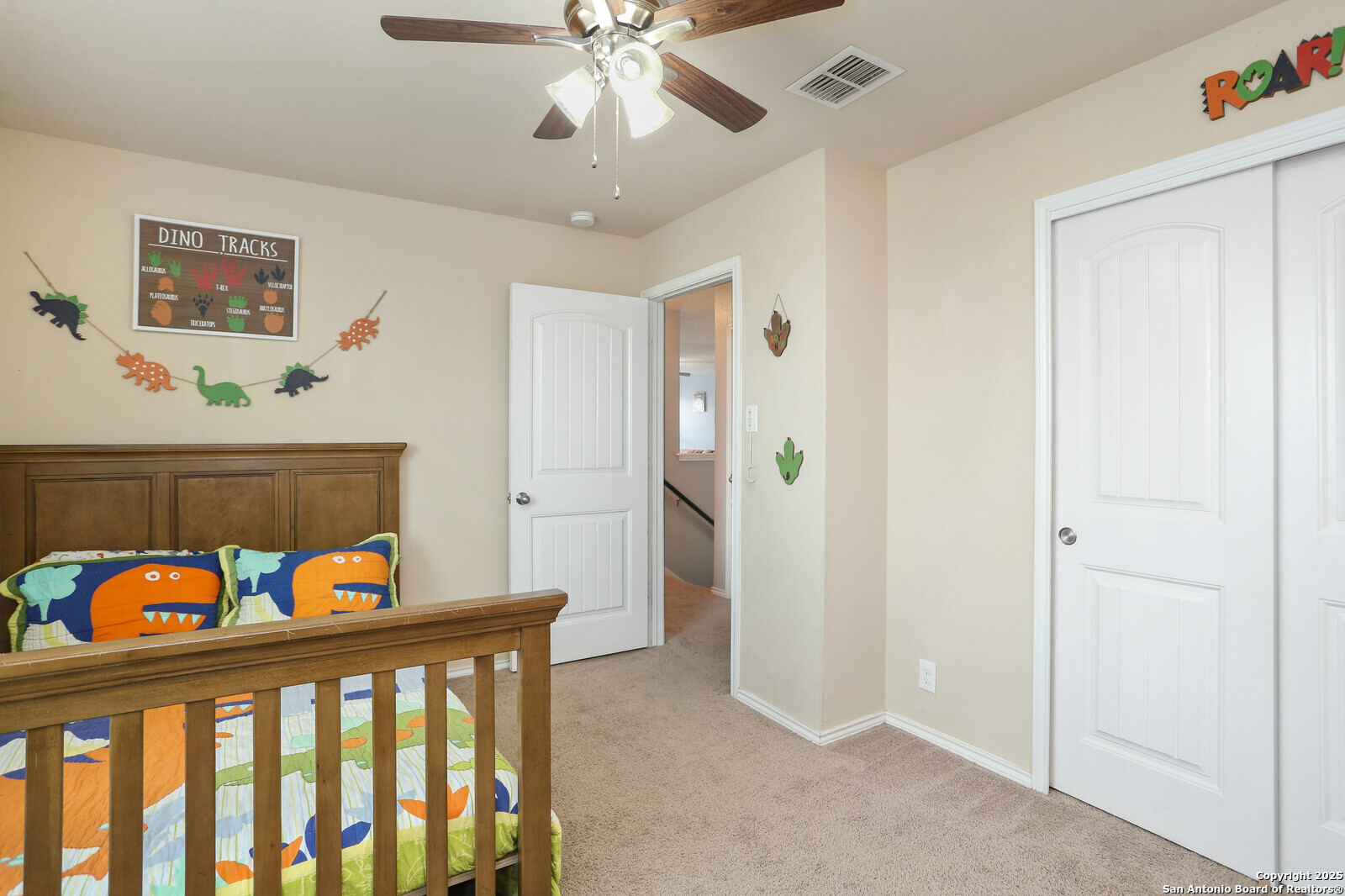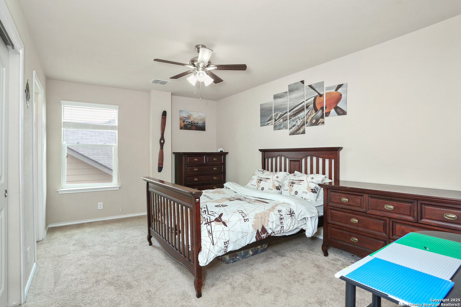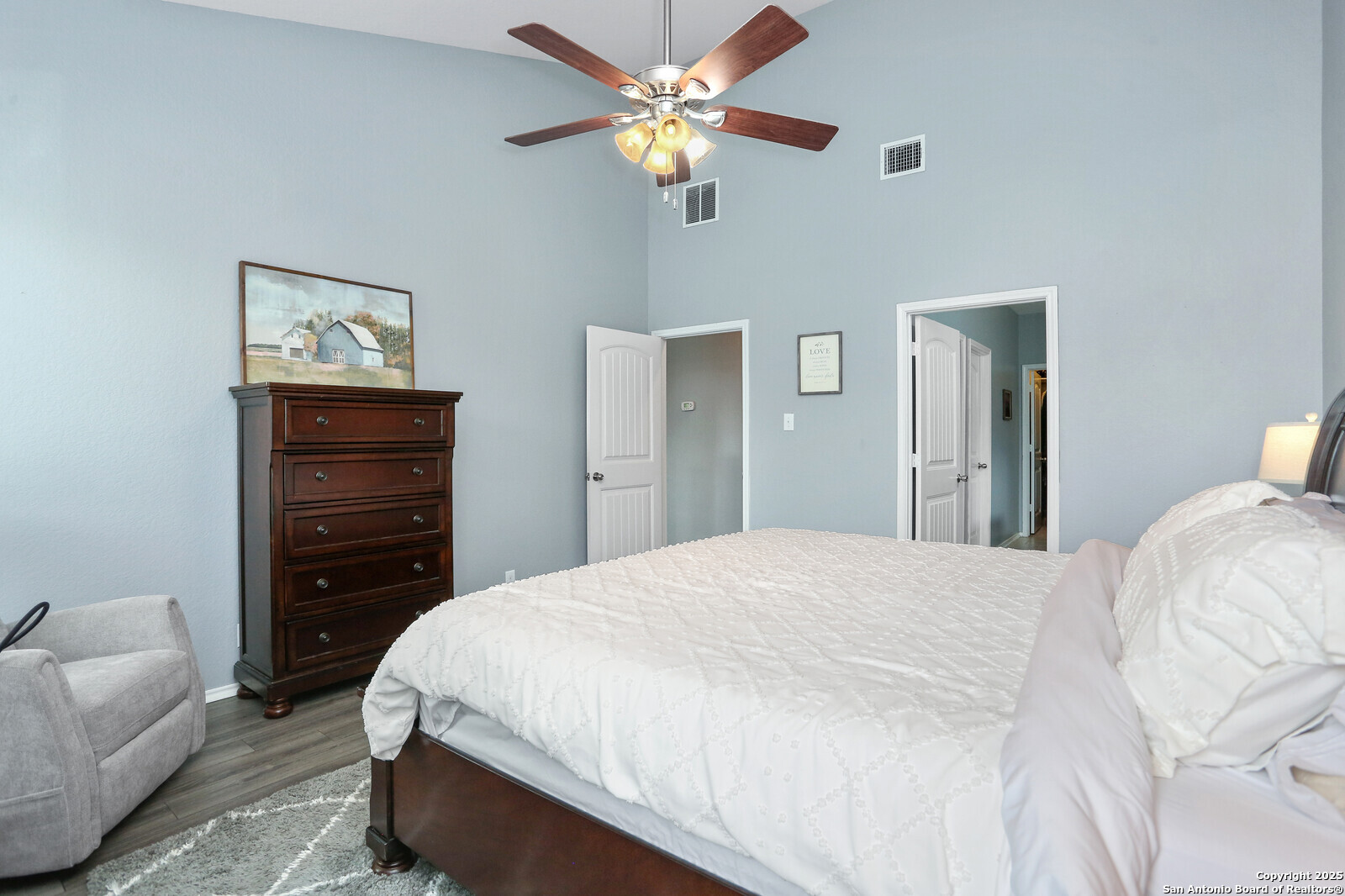 **VA Assumable at 2.25%**Discover this rare and beautifully designed 5-bedroom, 3.5-bath home in the highly desirable Redbird Ranch community! This spacious floor plan offers flexibility and comfort for modern living, starting with a formal dining area and a bright, eat-in kitchen-perfect for everyday meals or entertaining guests. The kitchen is equipped with granite countertops, a gas range, ample cabinetry, and a pantry for extra storage. Soaring ceilings in the living room create a light and airy feel, while a convenient half bath is located downstairs for guests. The primary suite is also on the main level and features a luxurious bath with double vanities, a separate soaking tub and shower, and two walk-in closets. Upstairs, you'll find a large loft, an additional full bath, and four spacious bedrooms-one with its own private bath, ideal for multigenerational living or guest accommodations. One oversized bedroom is perfect as a home theater, playroom, or flex space and includes its own walk-in closet. Enjoy outdoor living with an extended back patio, complete with furniture -great for relaxing or entertaining-all set on a premium corner lot. Located within walking distance to the neighborhood elementary school and just minutes from Lackland AFB, SeaWorld, shopping, and dining. Don't miss this unique opportunity in Redbird Ranch!