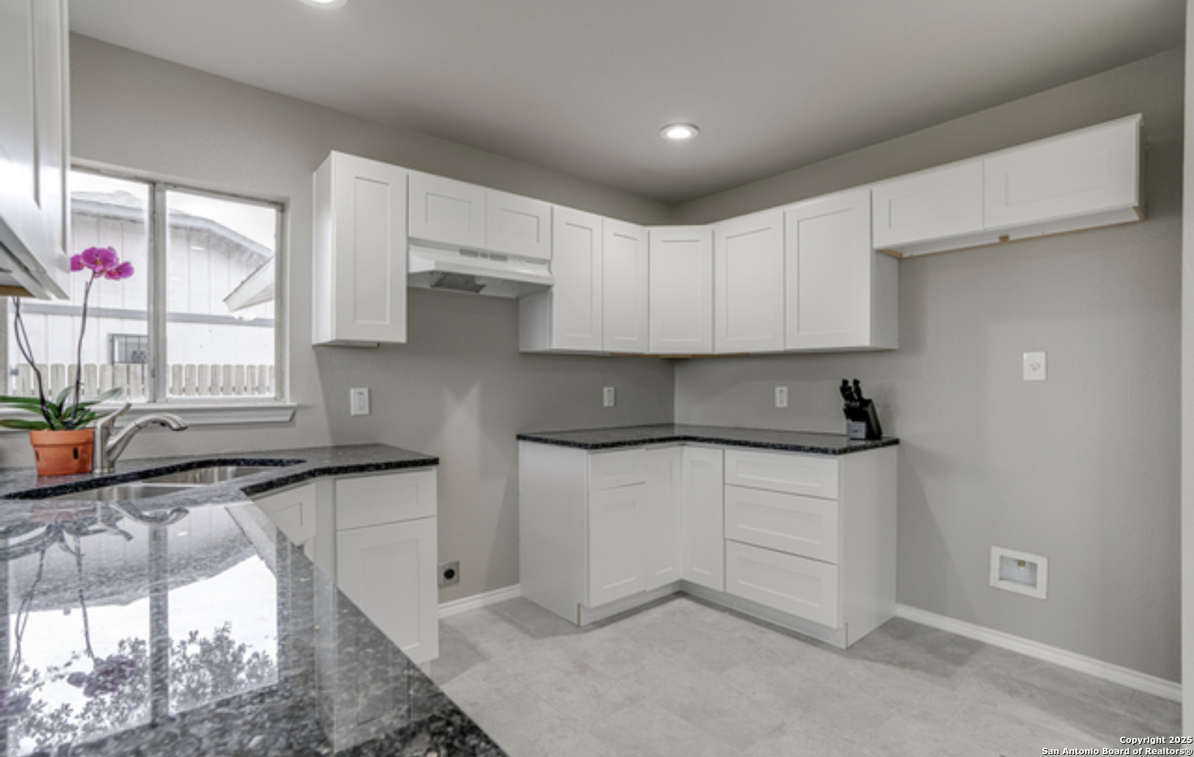 Welcome Home! This updated 3-bedroom home in the Lakeside subdivision blends comfort, style, and a prime location. Thoroughly renovated in 2020, it features fresh paint and new flooring throughout, giving the home a bright, modern feel. The kitchen offers granite countertops, soft-close cabinetry, a stainless steel sink, and a dishwasher, perfect for both daily living and entertaining. Upstairs, all bedrooms include spacious closets and updated bathrooms designed with comfort in mind. The large backyard with plenty of shade is ideal for gatherings or simply relaxing outdoors. Conveniently located just minutes from Walmart and Loop 410, only 16 minutes to downtown San Antonio, 15 minutes to Fort Sam Houston, and 30 minutes to Randolph Air Force Base, this home puts everything within easy reach. Move-in ready November 10, 2025. Schedule your showing today!