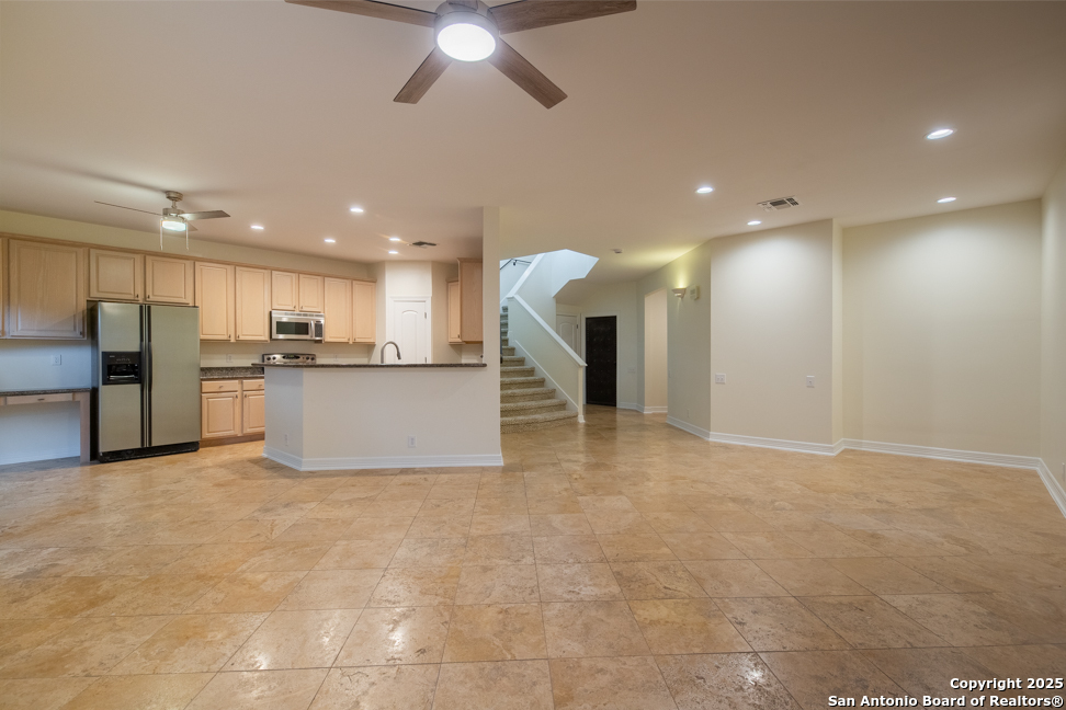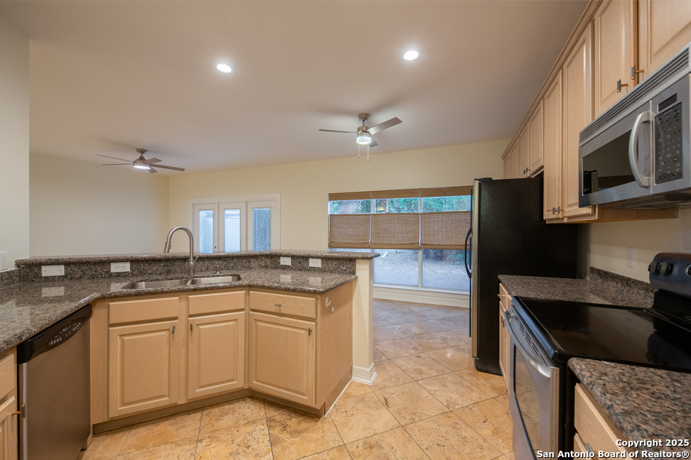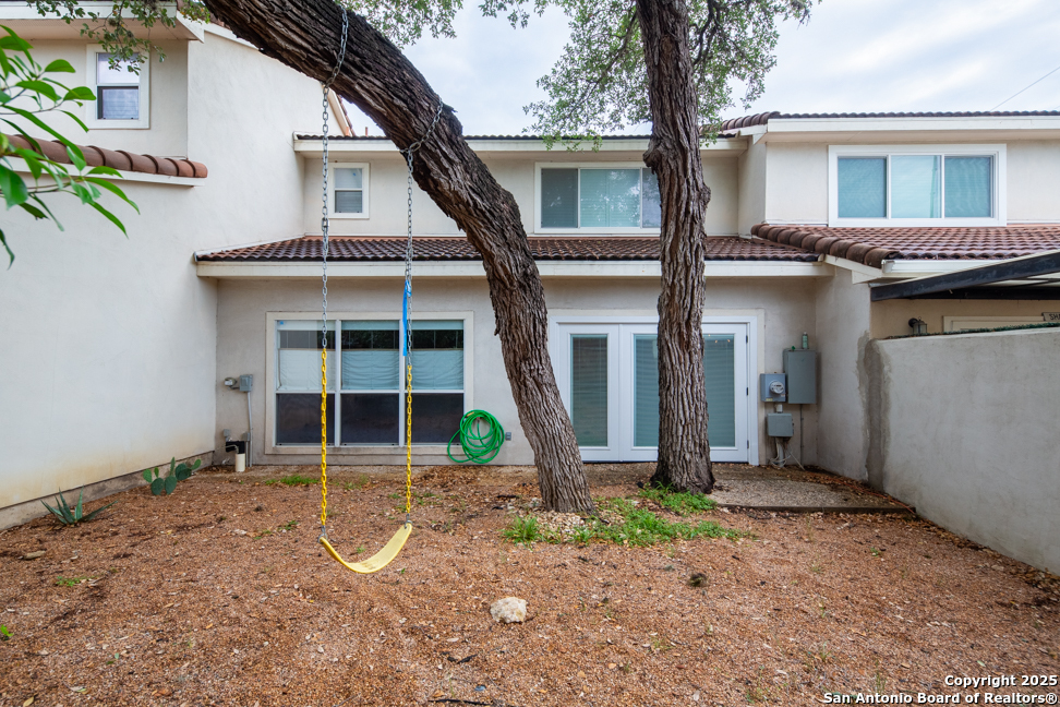 Live the Sonterra Lifestyle! Lease this stunning 3-bedroom, 2.5-bath townhome in the gated, guard-secured Sonterra Villas-just steps from the prestigious Sonterra Golf Club! This move-in ready beauty boasts a bright, open floor plan with elegant ceramic tile floors, charming French doors, and a chef's kitchen featuring granite countertops, stainless steel appliances, and light oak cabinets. Upstairs, the spacious primary suite offers pure relaxation with a garden tub, separate shower, and double vanities. Freshly painted with a brand-new AC (2024) & 10-year warranty-comfort is guaranteed. Enjoy a private backyard perfect for summer BBQs, plus easy access to shopping, dining, and golf right outside your door. Prime location. Premium lifestyle. Available now!