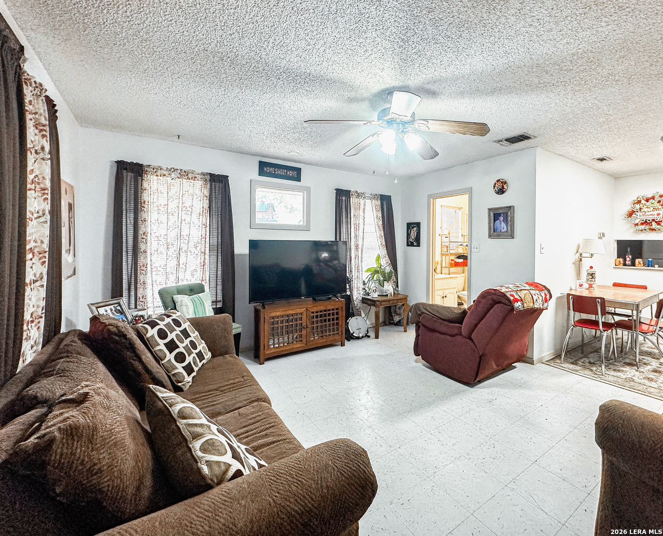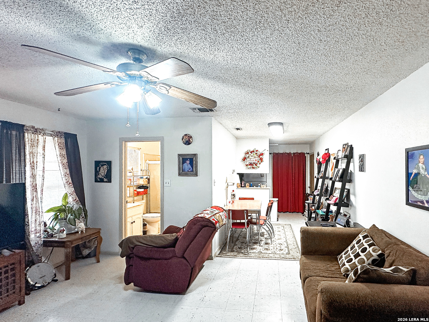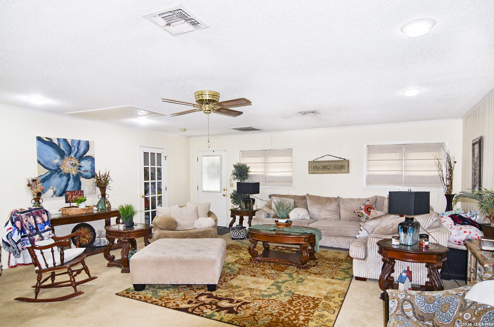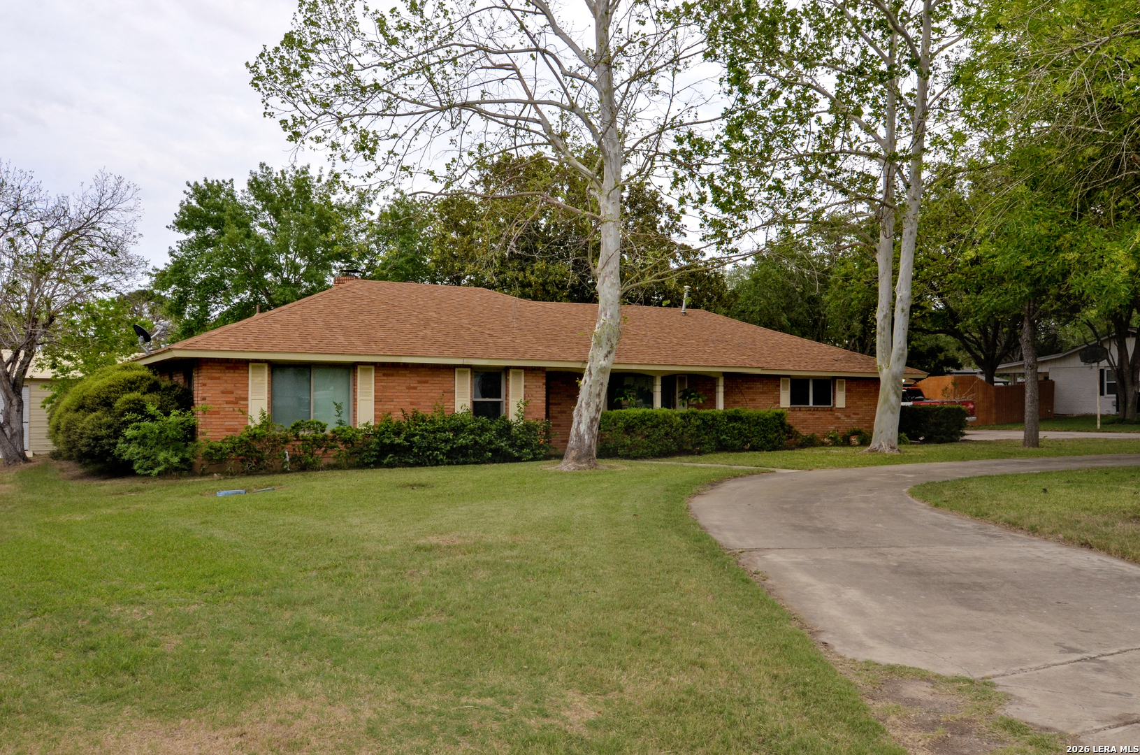 Floresville Estate with Guest House & Workshop. Versatility meets convenience on this lush 0.5-acre property. This expansive estate features a main residence, a fully independent guest apartment and 2 outer building for storage. Property also has two driveways the main one located on F Street with a separate one in the back off of Cottonwood. Main Residence (2,645 sqft): The primary home centers around a main living area off of the kitchen. Kitchen has a breakfast nook and eat-in bar. Flexibility is key: the oversized den includes dedicated office space, while the formal dining and sitting areas adapt to your lifestyle. The home features 3 bedrooms, 2.5 bathrooms, and abundant storage throughout. Practicality is built-in with a spacious laundry/mudroom and half bath located just off the back patio. Independent Guest Apartment (570 sqft): This self-contained 1-bedroom 1 bath unit includes a full kitchen, living area, laundry room, and 40ft covered porch with separate driveway located at the rear of the property off Cottonwood. Exterior & Mechanicals: Workshop: 16x20 metal building + additional wood storage shed. Landscaping: Mature Live Oak, Magnolia and Fig trees, a circle drive, and a deep backyard that extends beyond the chainlink fence. New HVAC