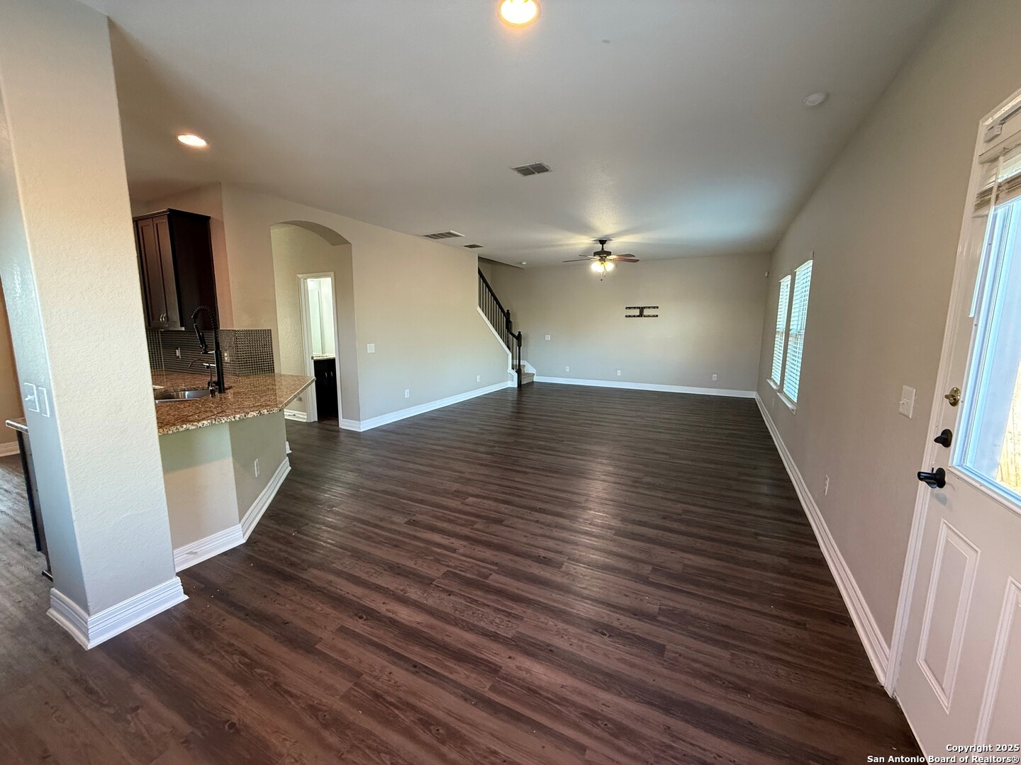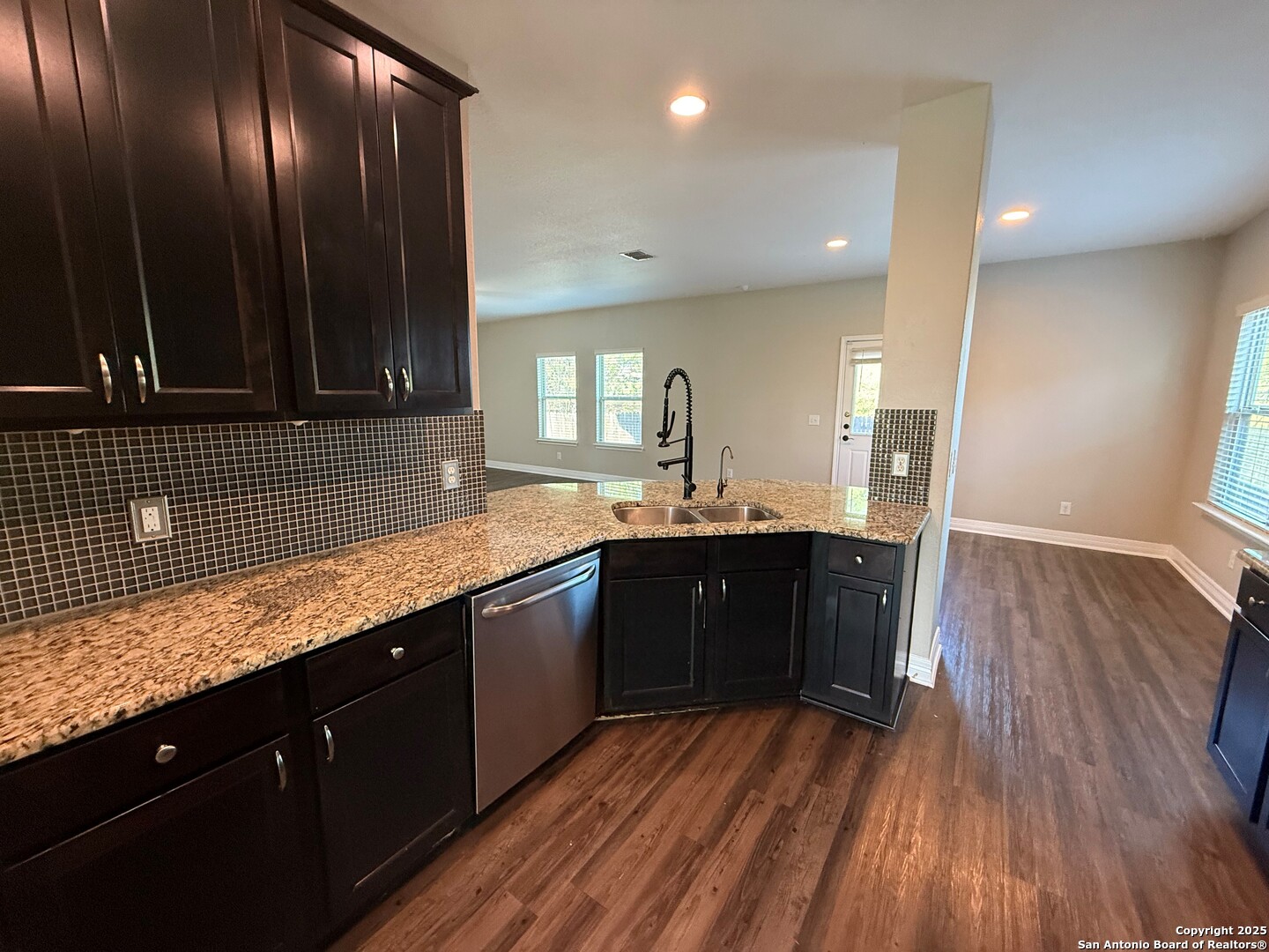 This spacious two-story home offers 3 bedrooms, 2.5 bathrooms, and a flexible layout designed for modern living. Step into the open-concept main level featuring rich wood-style flooring, a large living area, and a stylish kitchen with granite countertops, tile backsplash, gas cooking, and stainless steel appliances. Upstairs, enjoy a second living space/loft, perfect for a game room or home office. Retreat to the oversized primary suite with tray ceiling, walk-in closet, and a spa-like en-suite bathroom with dual vanities and a large tiled shower with built-in bench. Additional highlights include updated lighting, a fully fenced backyard with patio space, and a two-car garage. Ideally located with quick access to I-35, shopping, schools, and restaurants. This home offers comfort, style, and convenience all in one!